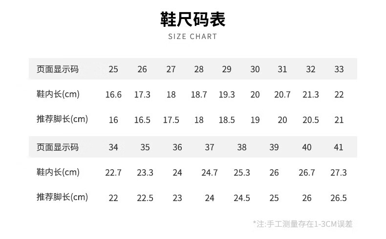 China (cm) 36 - 37 38 - 39 40 - 42 43 - 44 45 - 47