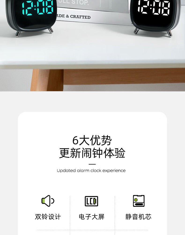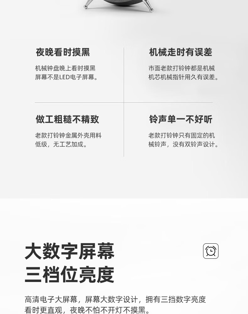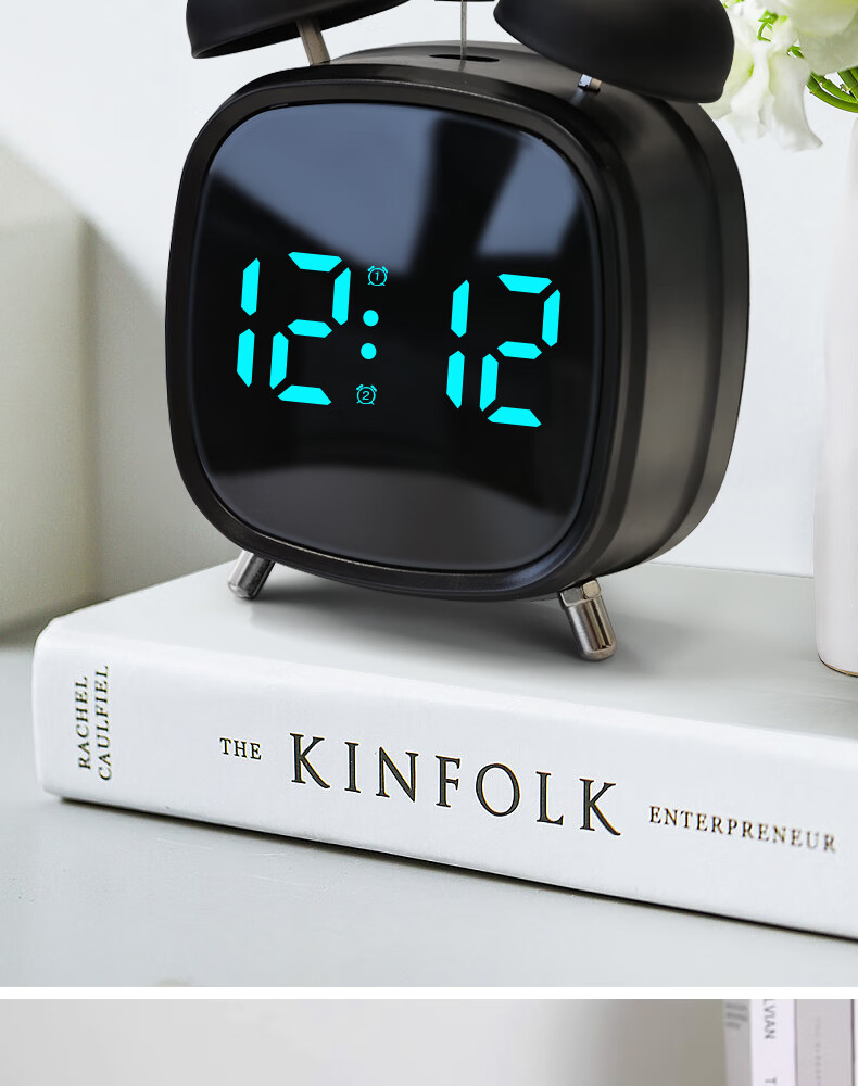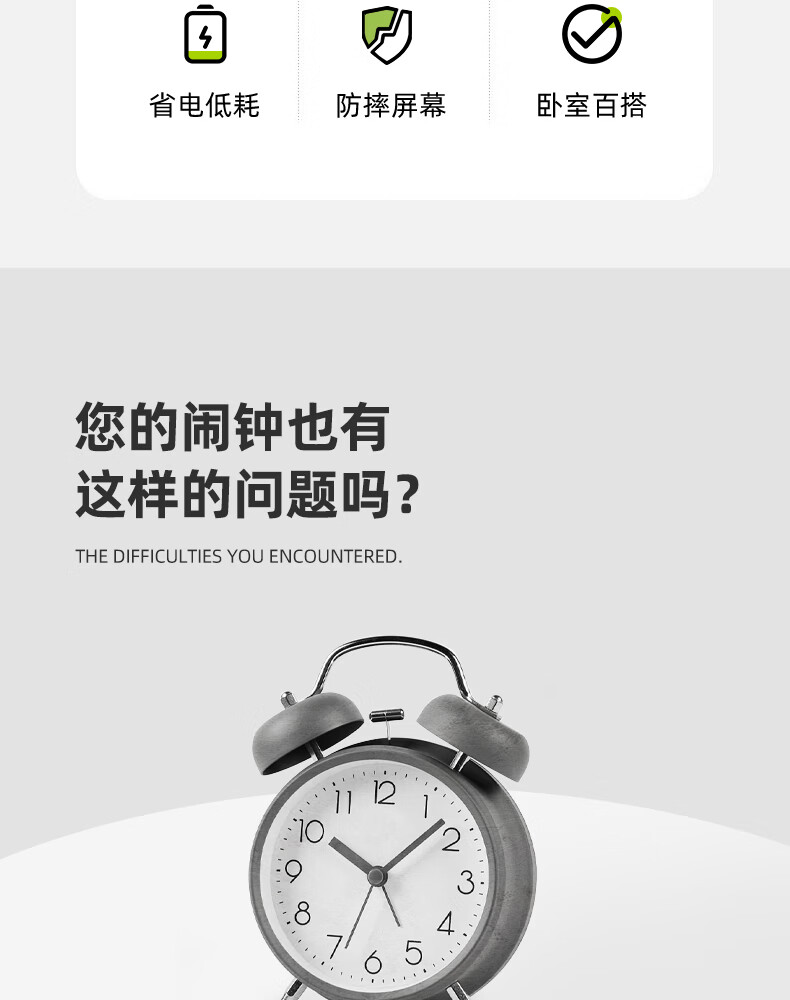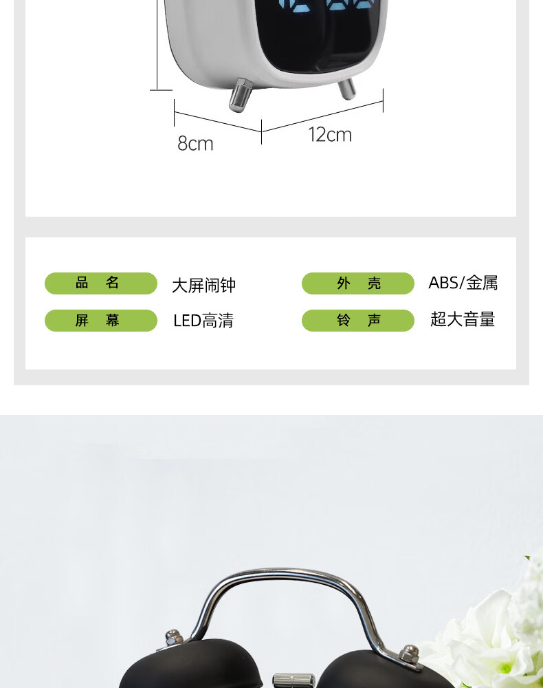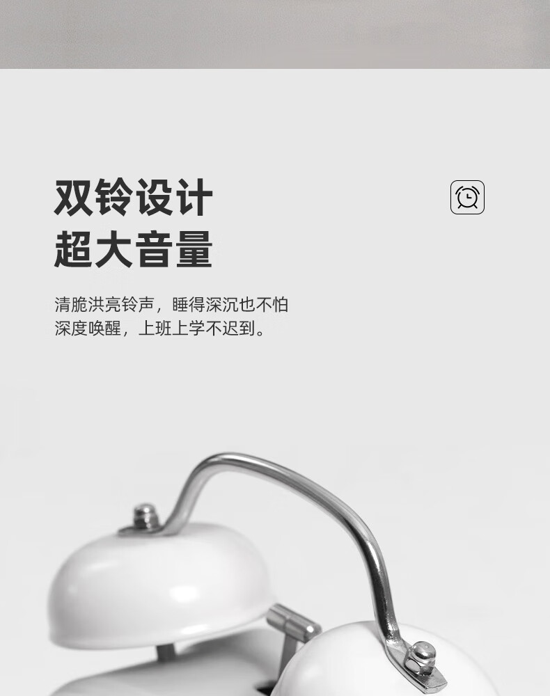 Timess alarm clock powerfully wakes up students, special wake-up artifact, LED electronic display, mechanical bell, super loud sound alarm clock, pearl white-white letters, voice-activated wake-up + 3 levels of brightness