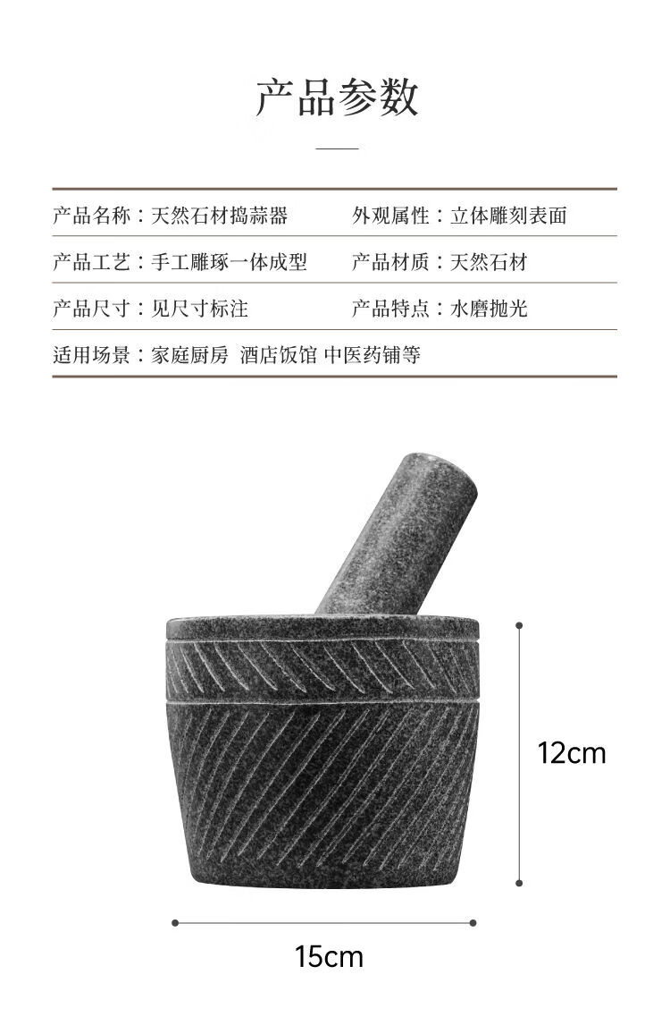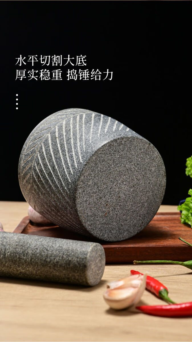 Fantasy stone stone mortar grinder large garlic press pot medicine jar garlic press carving diameter 25 cm hand-carved with wooden hammer