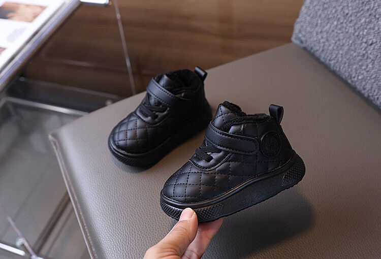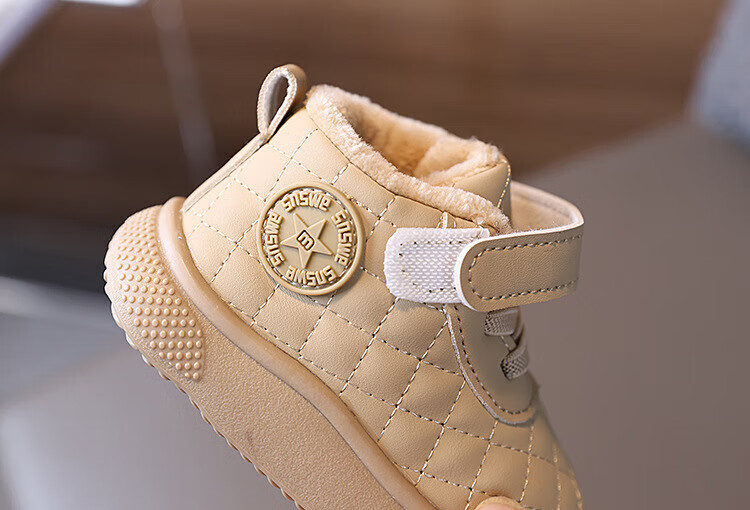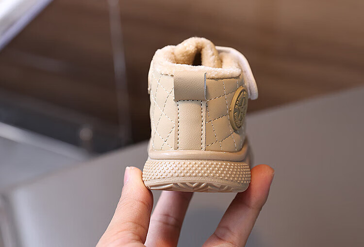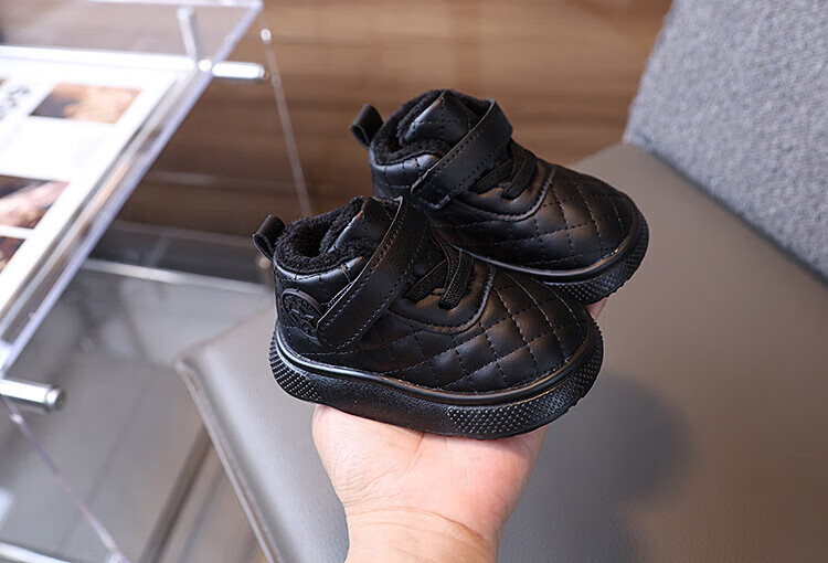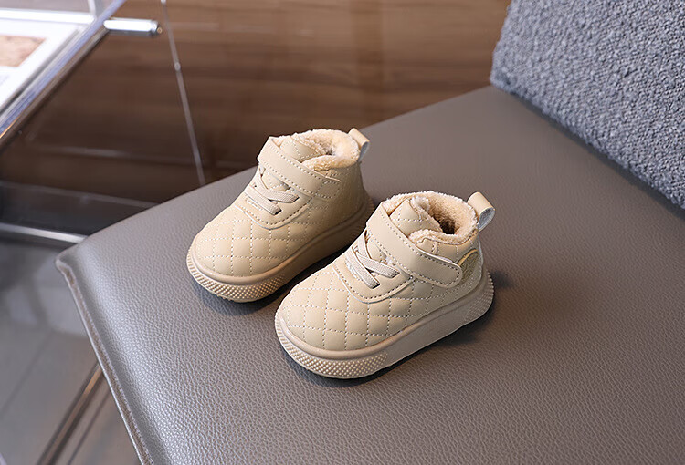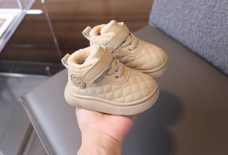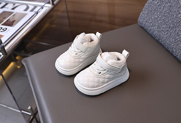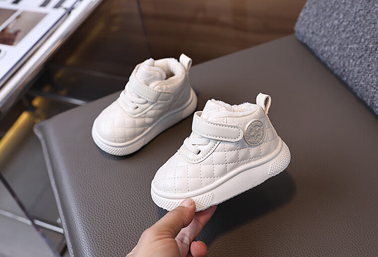 BAOZOUXIE autumn and winter high-top soft-soled non-slip toddler shoes for boys and girls 1-3 years old plus velvet and thickened warm cotton shoes bread shoes white 16/11.5 inner length