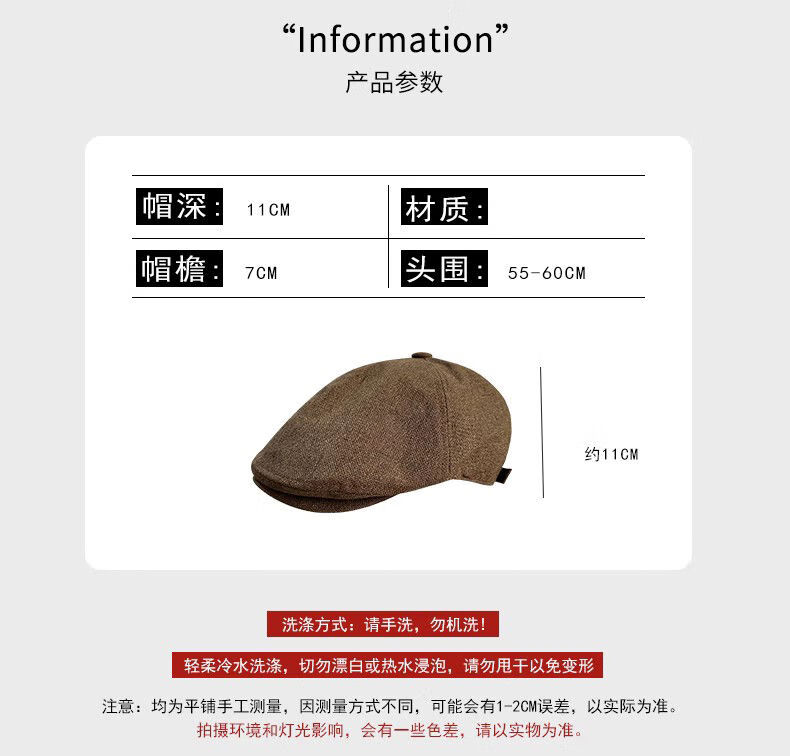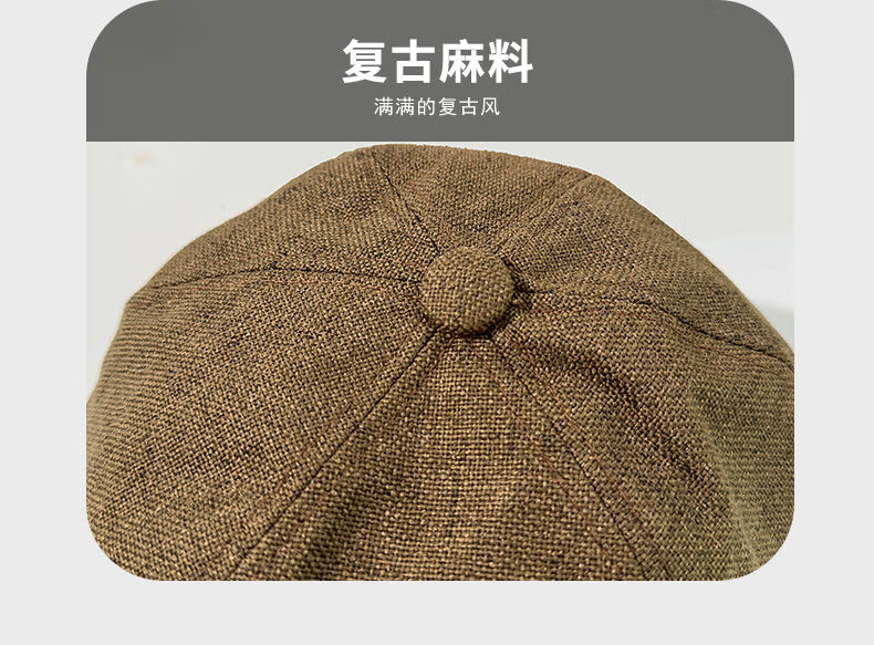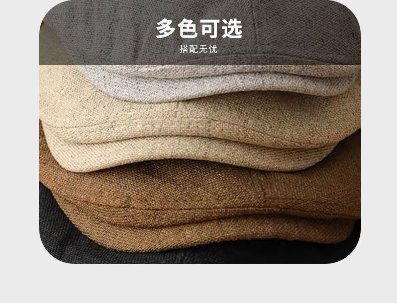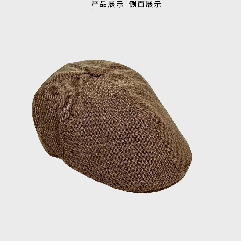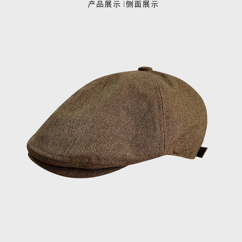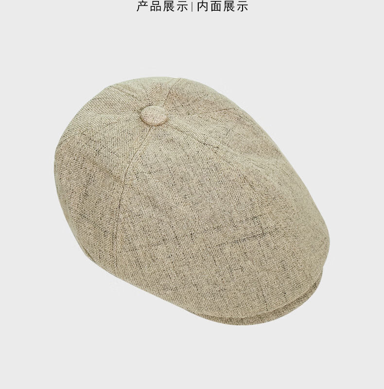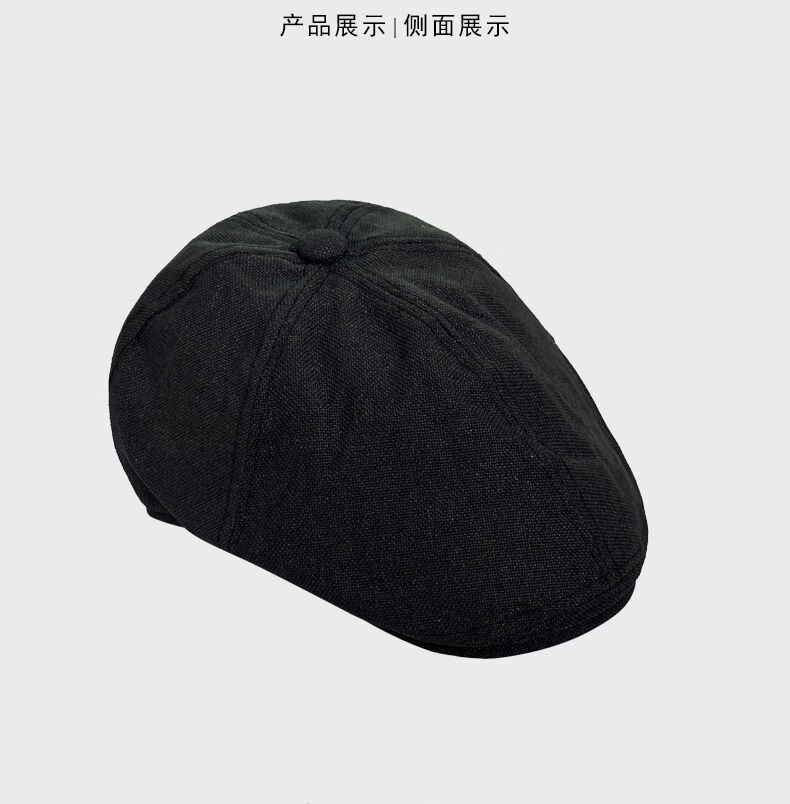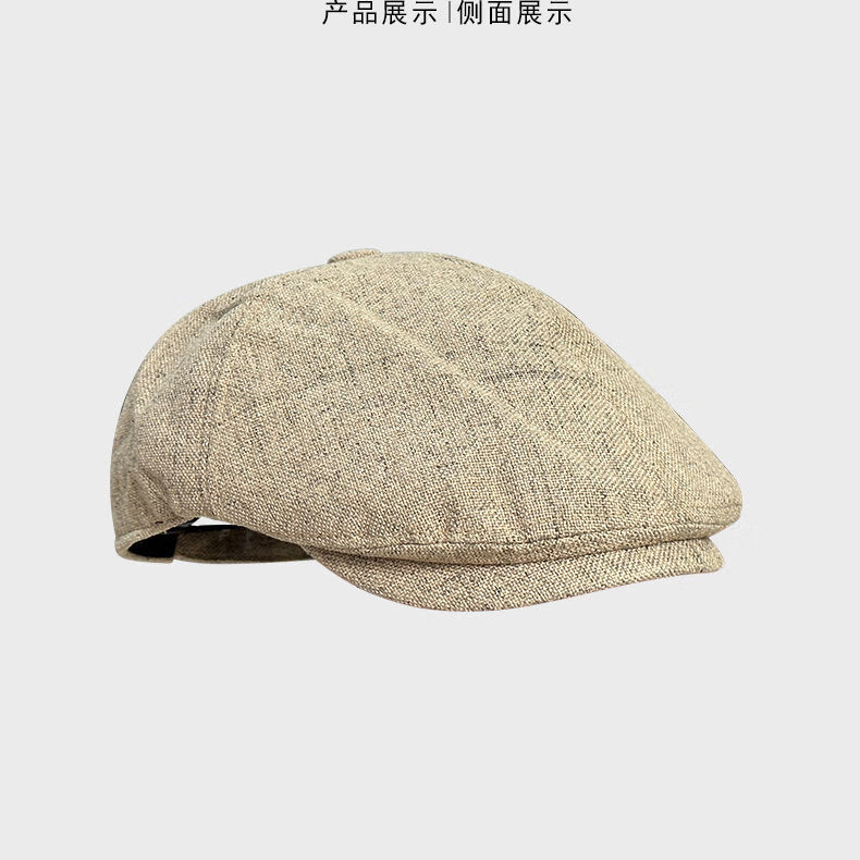 Retro progressive hat for women with large head circumference, beret, square and round face, small cotton and linen, Japanese style literary reverse-wearing peaked cap for men, off-white, one size fits all, adjustable