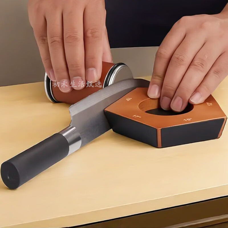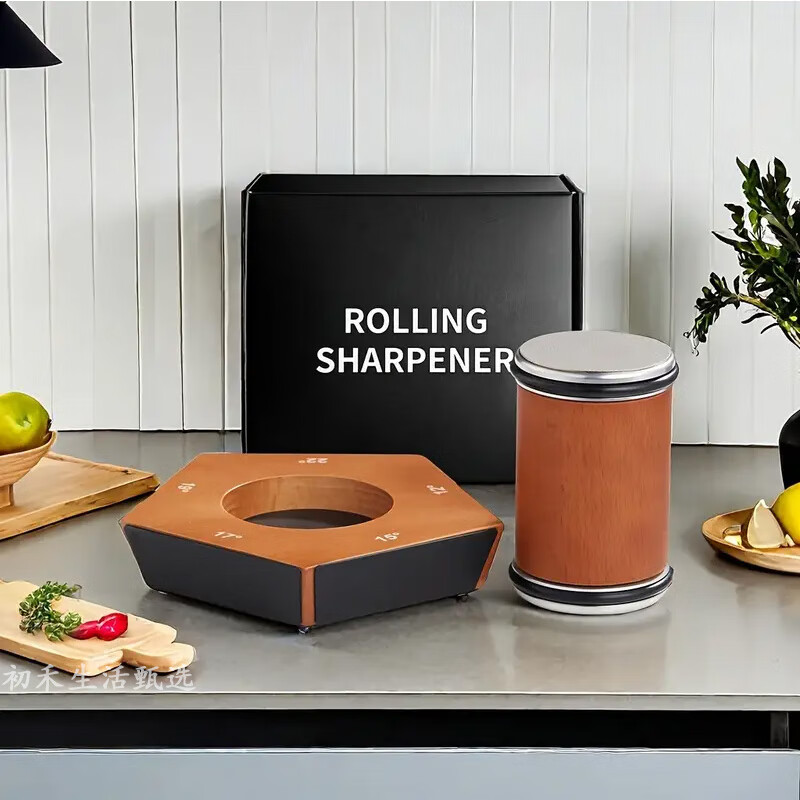 Complete angle-adjustable roller sharpener, fixed-angle artifact, multifunctional household quick knife sharpener, kitchen knife scissors, whetstone, roller sharpener-wood grain gray leather-diamond*2