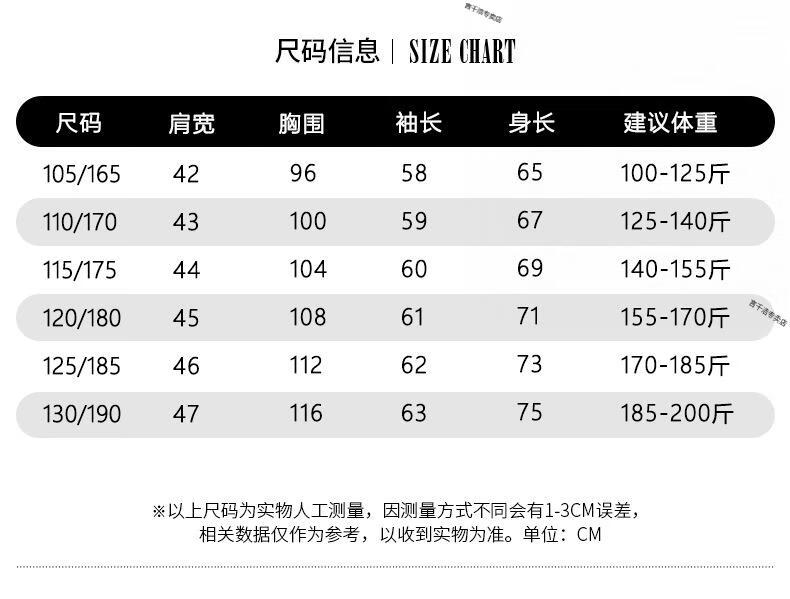 China (cm) 165 / 88-90 170 / 96-98 175 / 108-110 180 / 118-122 185 / 126-130