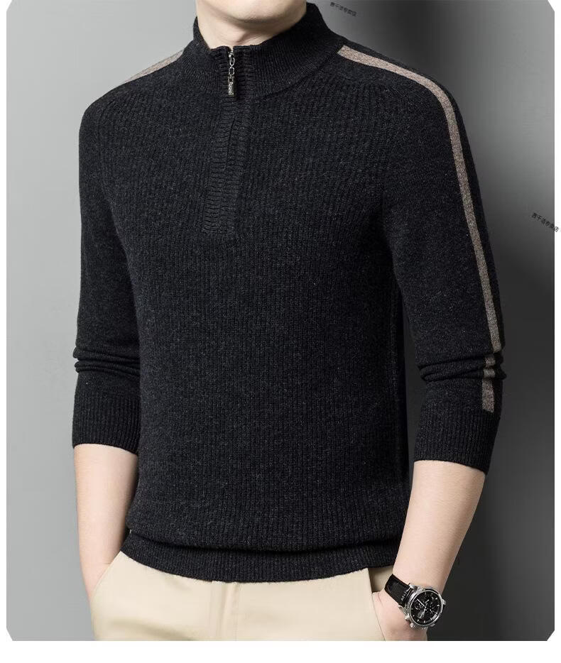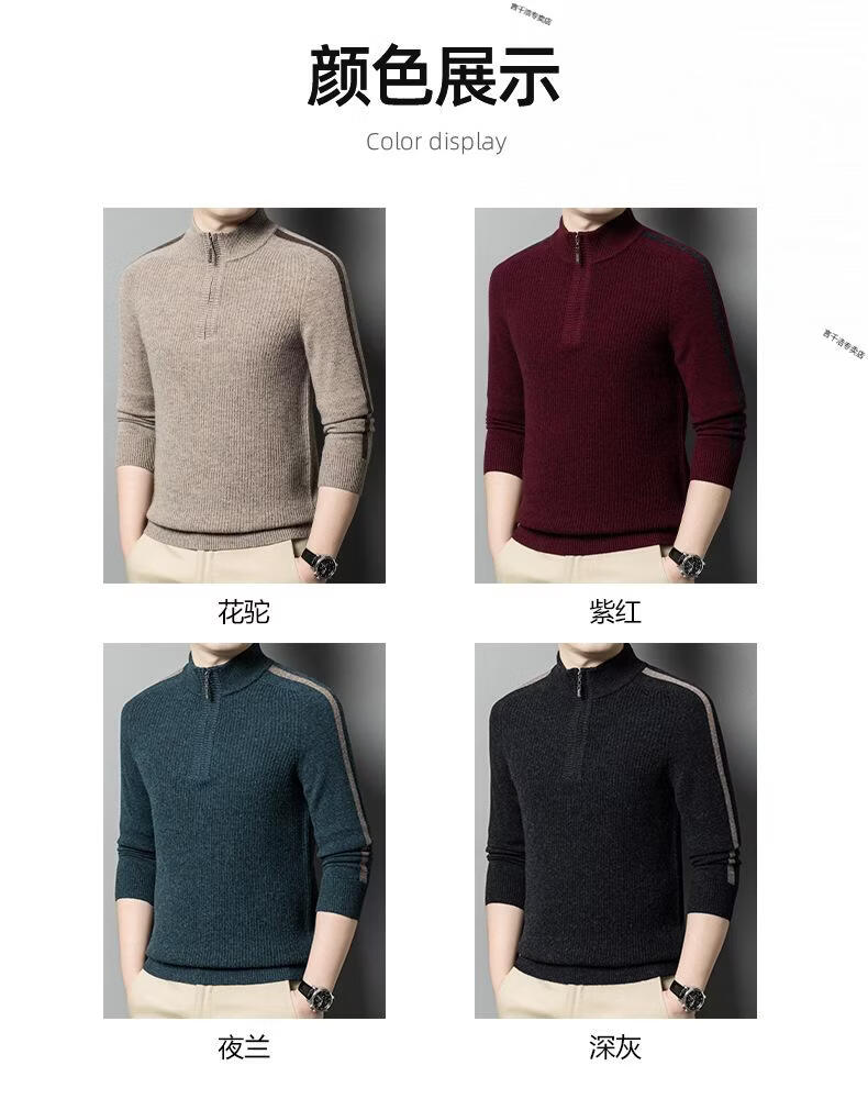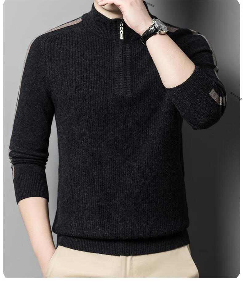 KBXNG Jinba Business Men's Autumn and Winter New Pullover Slim Sweater Men's 450g Wool Sweater Round Neck Guaranteed Business Men's Clothing Night Blue S 165