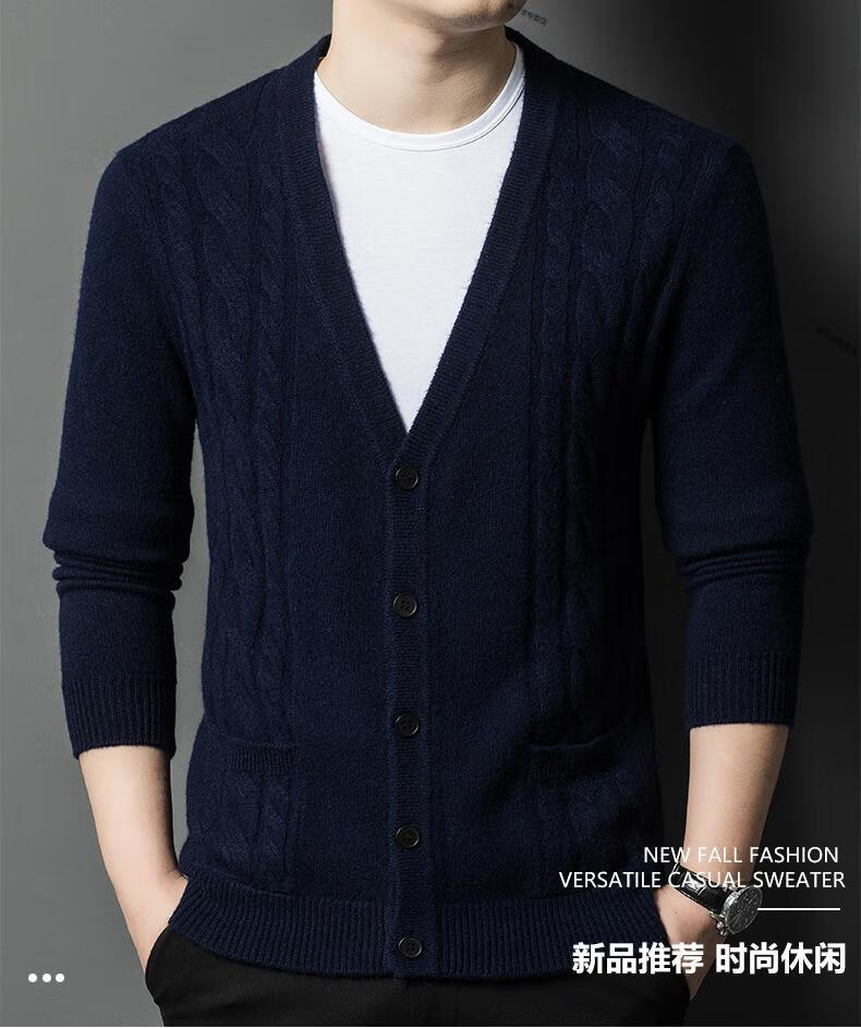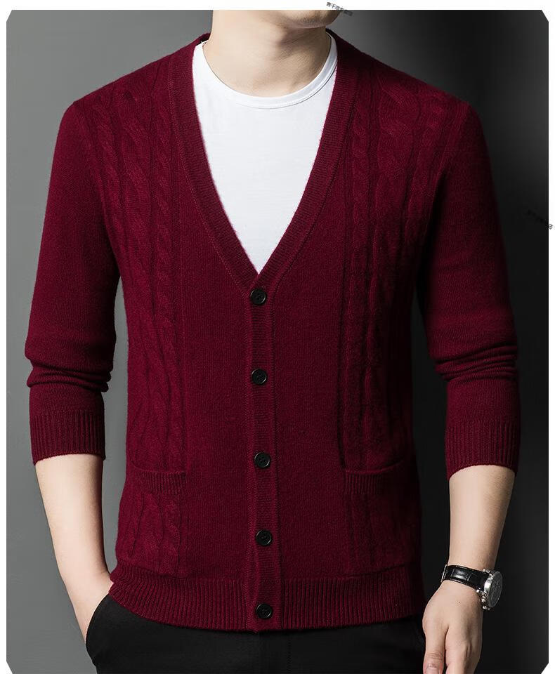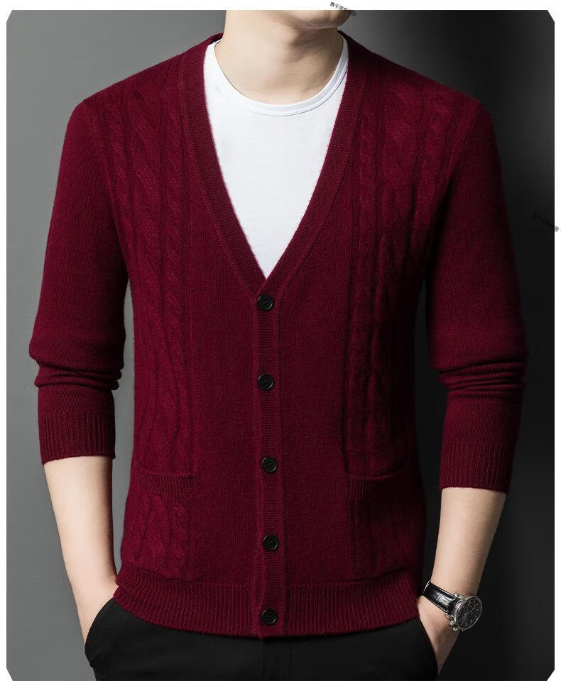 KBXNG Jinba Business Men's Wear 460g Wool Cardigan 2025 Autumn and Winter Men's Sweater Autumn and Winter Solid Color Business Men's Wear Red M 170