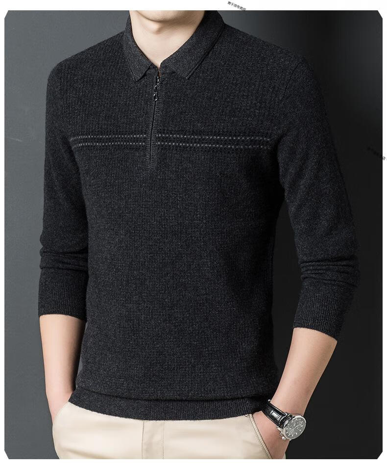 KBXNG Jinba деловая мужская новая зимняя шерстяная мужская рубашка ПОЛО с длинными рукавами теплая футболка среднего возраста с лацканами деловая мужская одежда темно-серый один размер 105