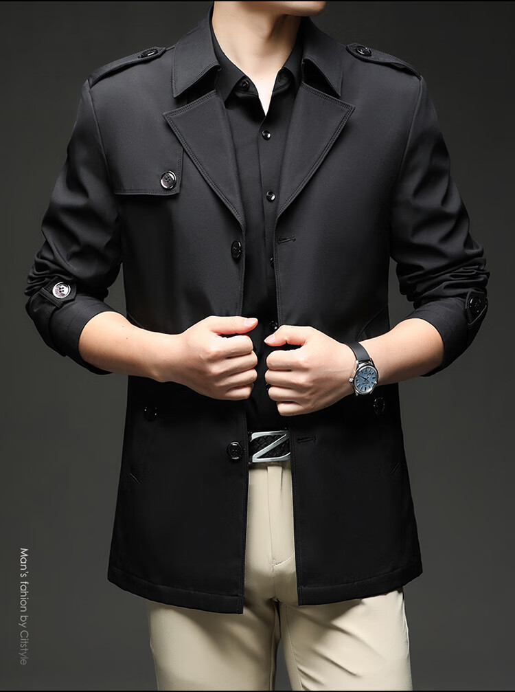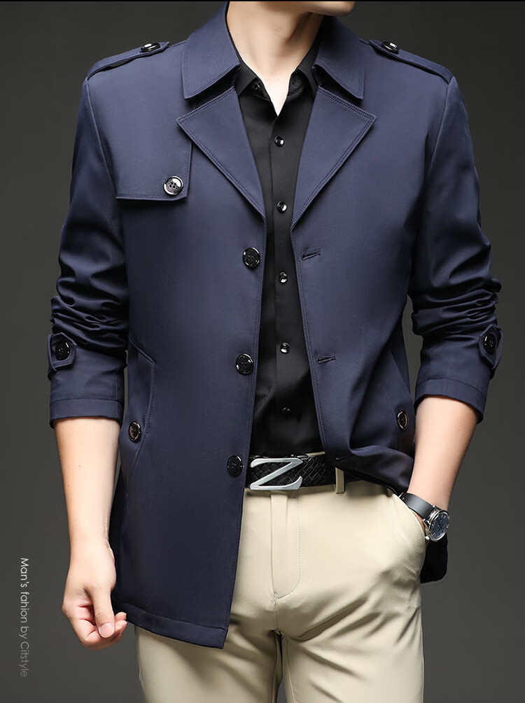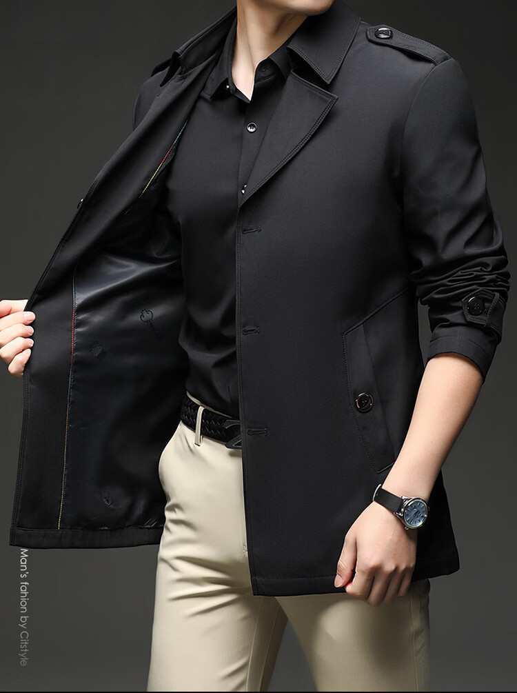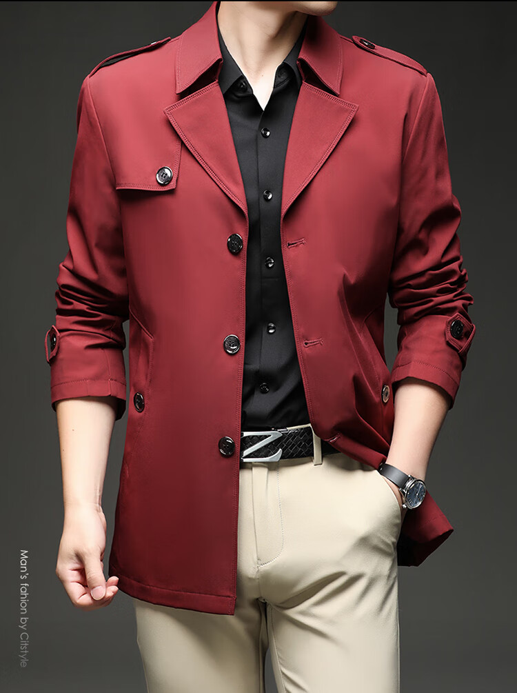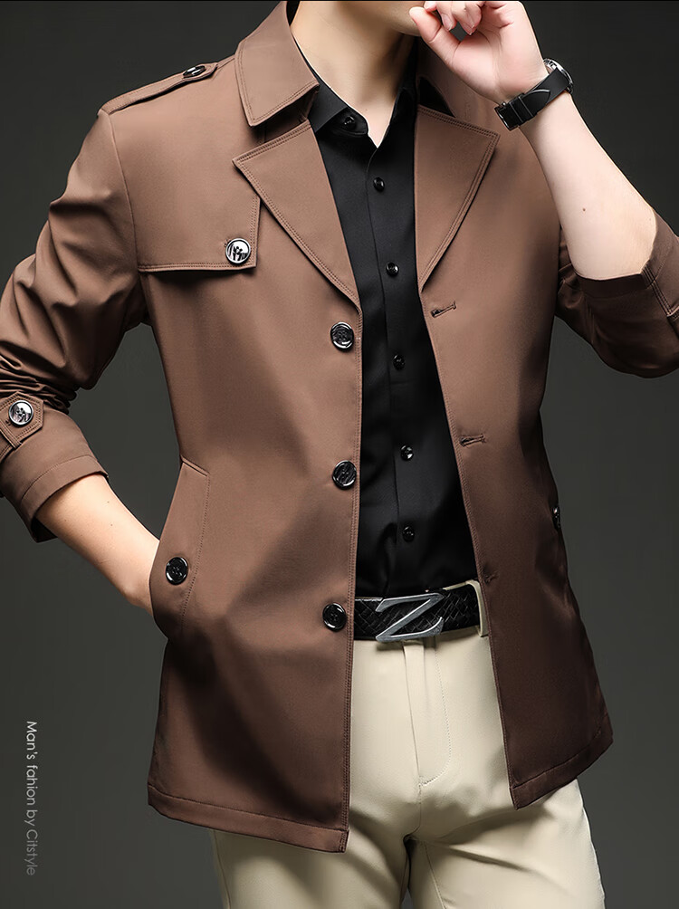 Lilang 25 ветровка нового стиля, мужская короткая весенне-осенняя бархатная куртка в британском стиле цвета хаки, деловая повседневная однобортная куртка цвета хаки для молодежи и среднего возраста, весенне-осенняя однобортная куртка M, рекомендуемый вес 90-105 Jin Jin равен 0,5 кг