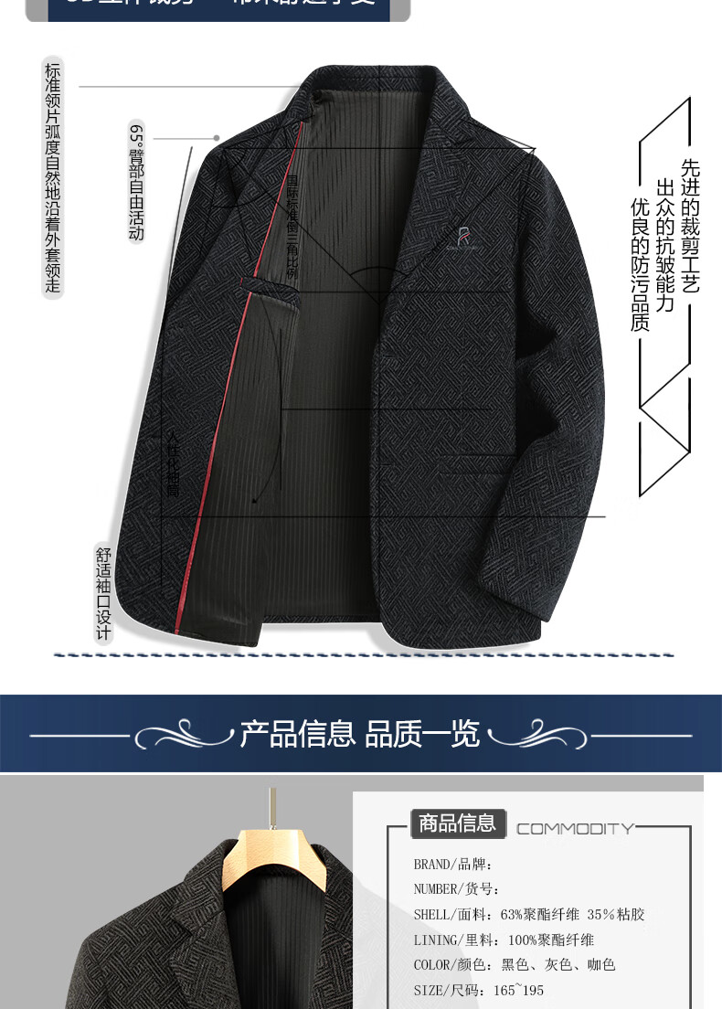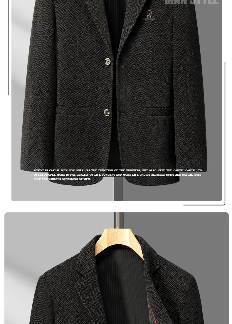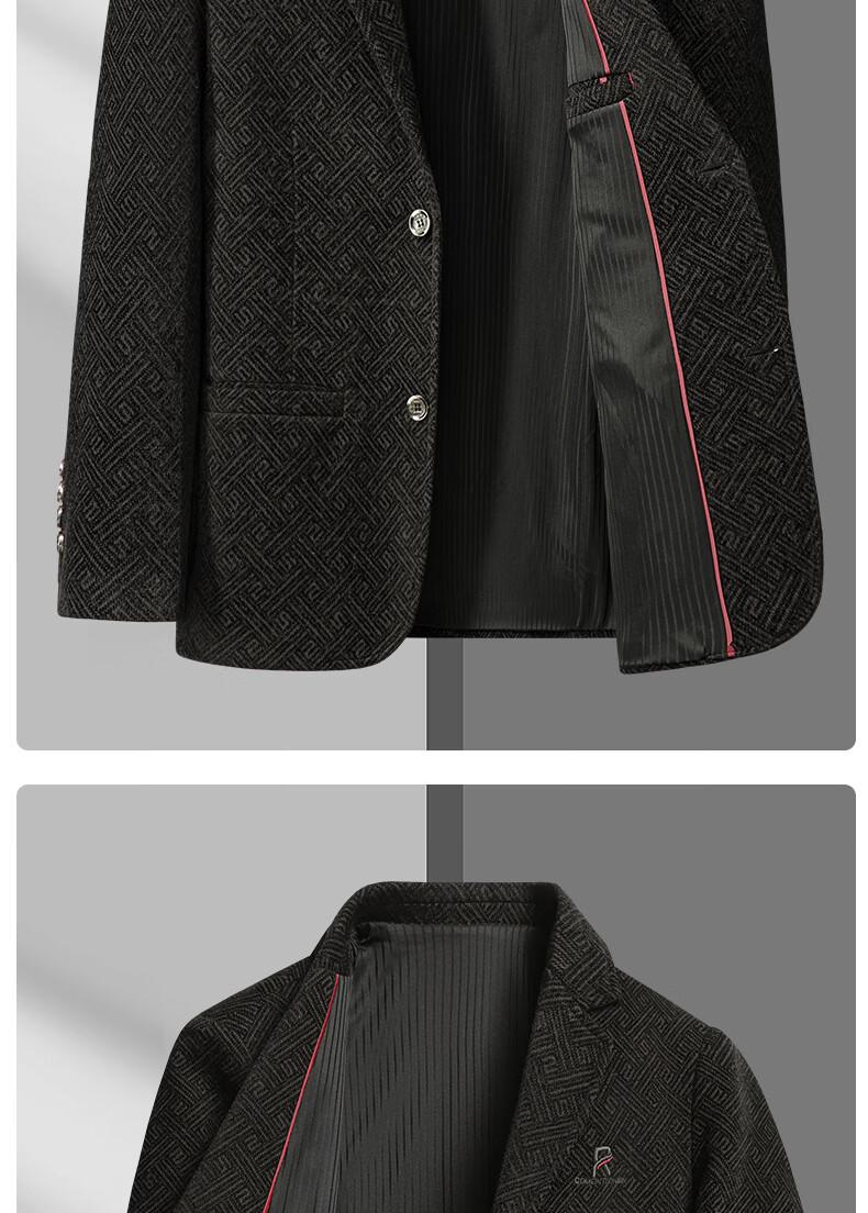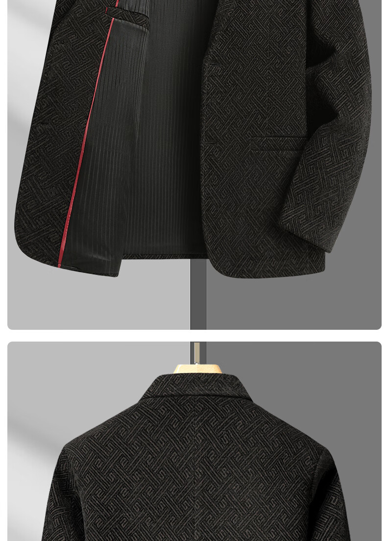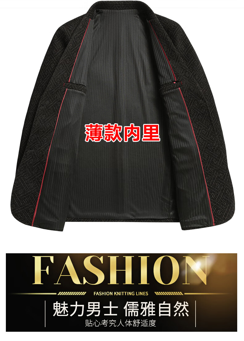 Lilang woolen small suit dad autumn woolen coat middle-aged men spring tops middle-aged and elderly casual suits men plus velvet brown + sweater 2XL 185/100A recommended 138-153Jin Jin equals 0.5 kg