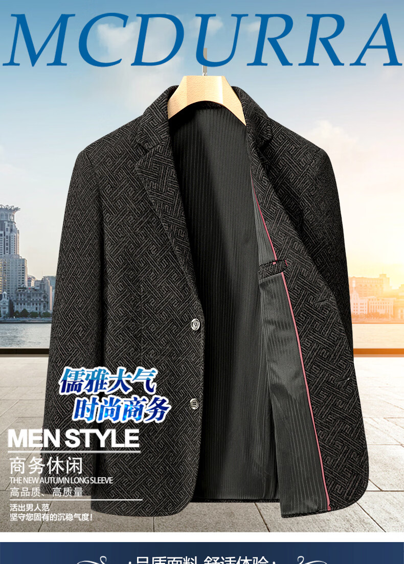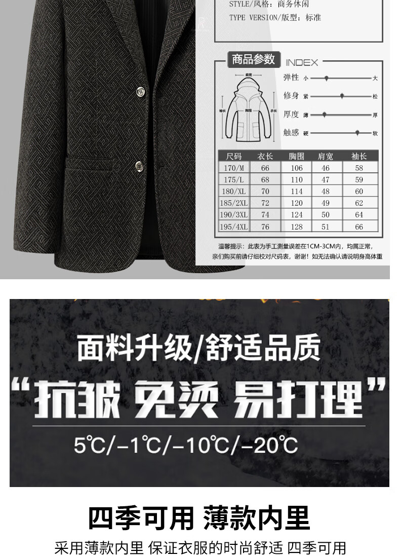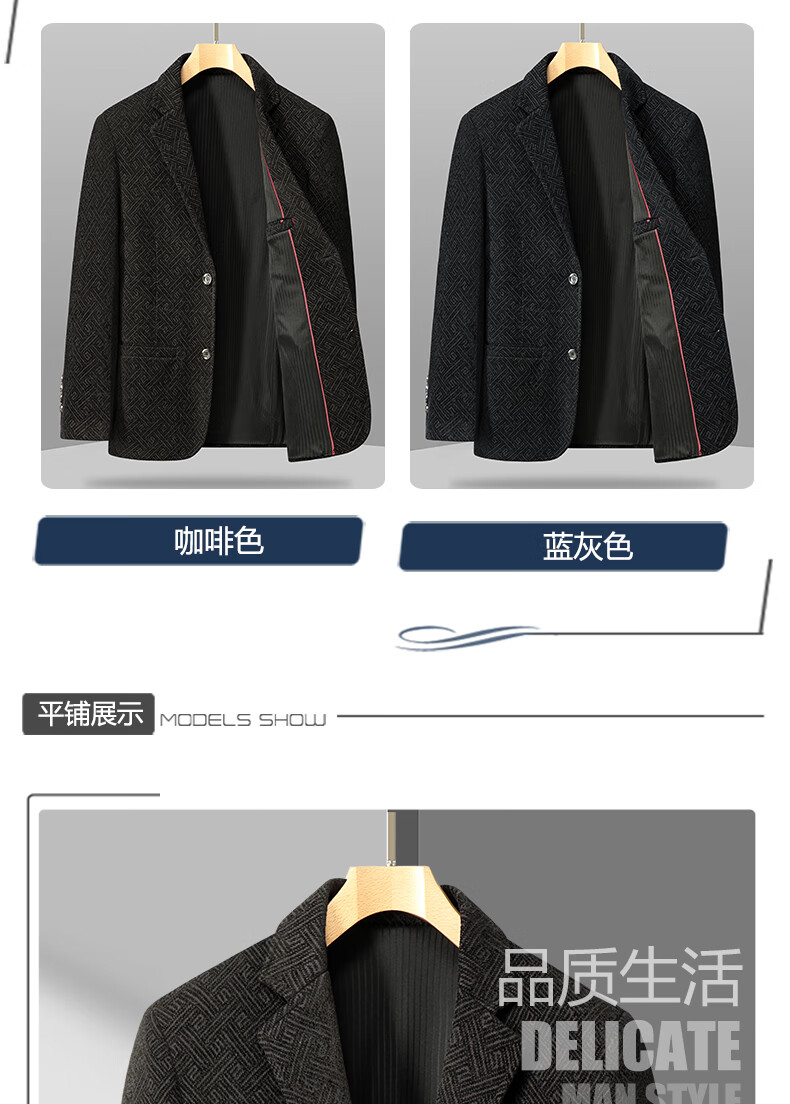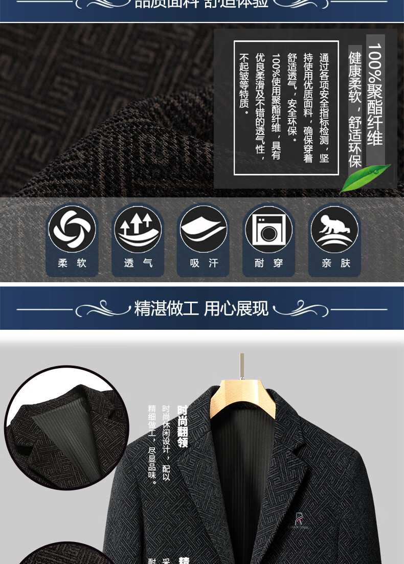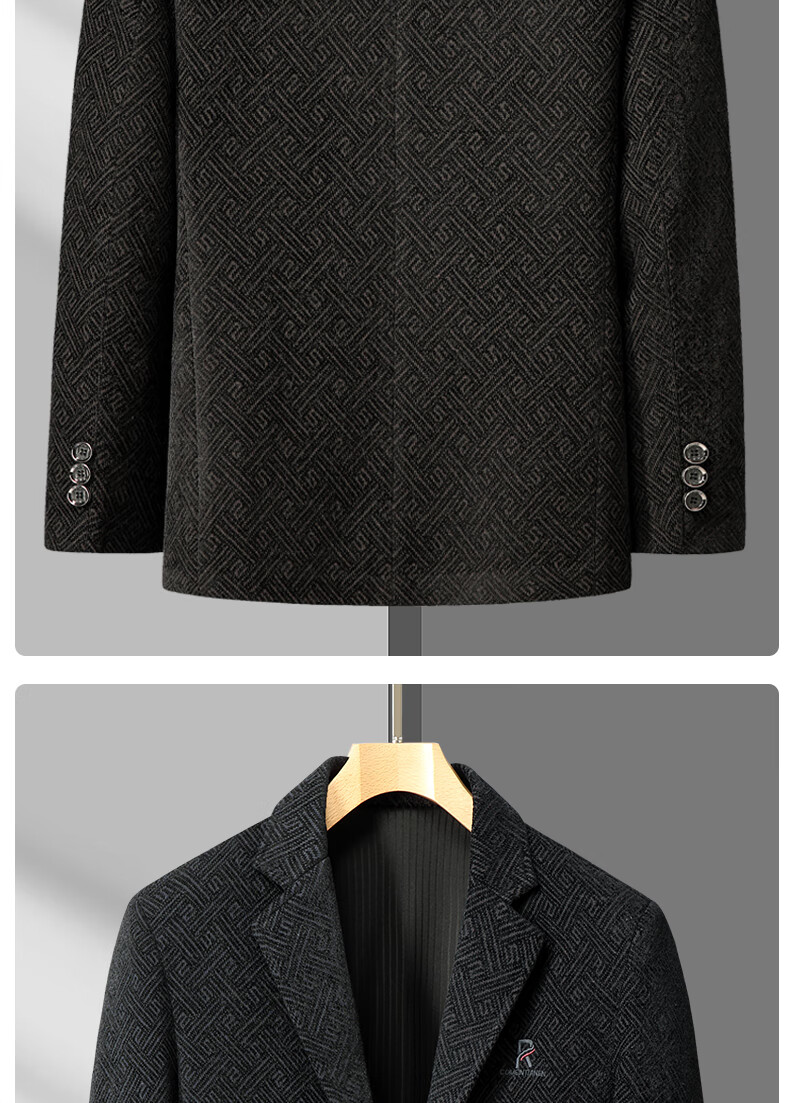 Lilang woolen small suit dad autumn woolen coat middle-aged men spring tops middle-aged and elderly casual suits men plus velvet brown + sweater 2XL 185/100A recommended 138-153Jin Jin equals 0.5 kg
