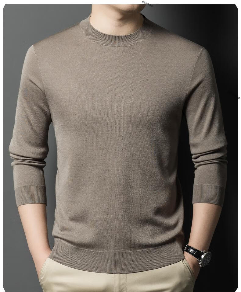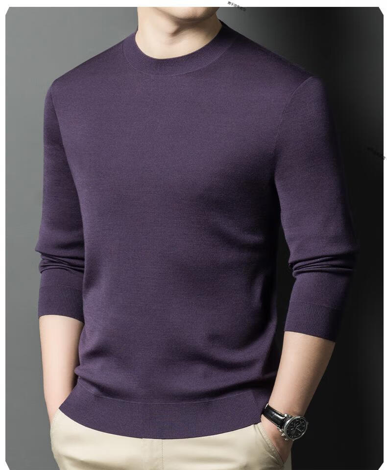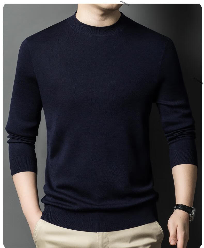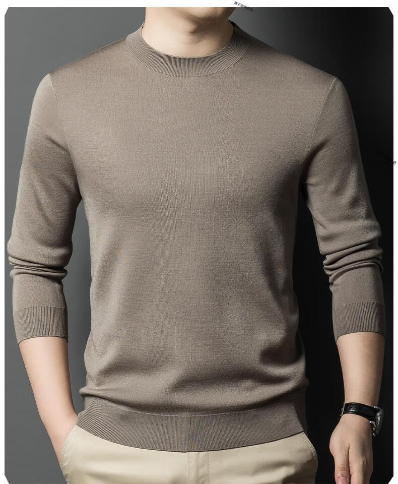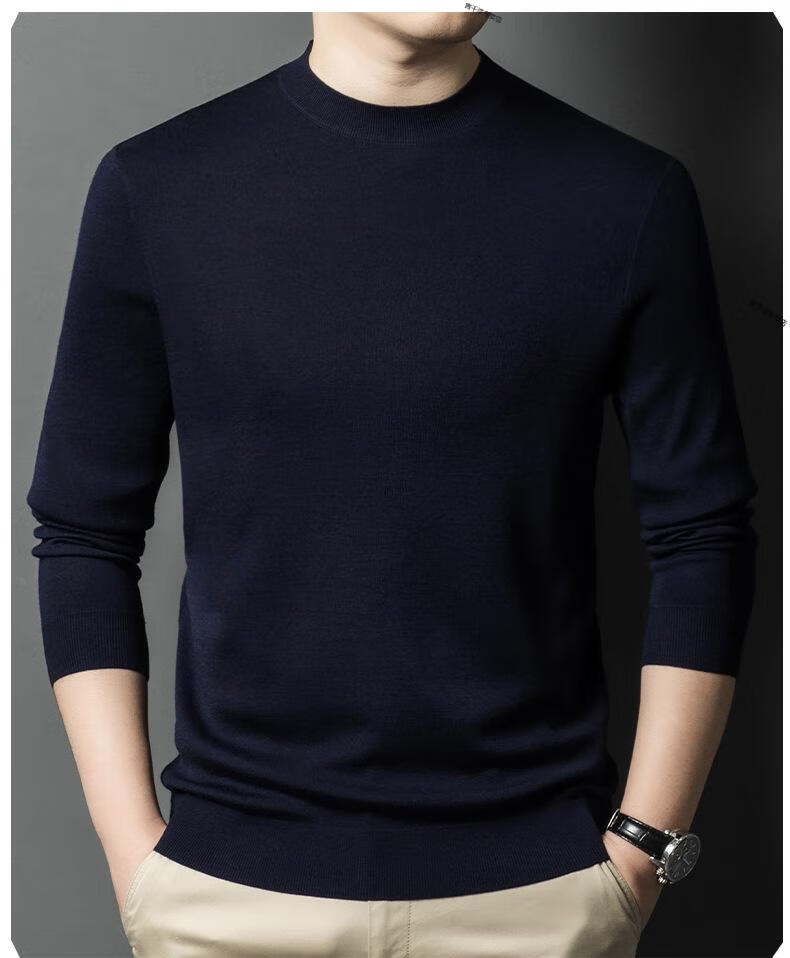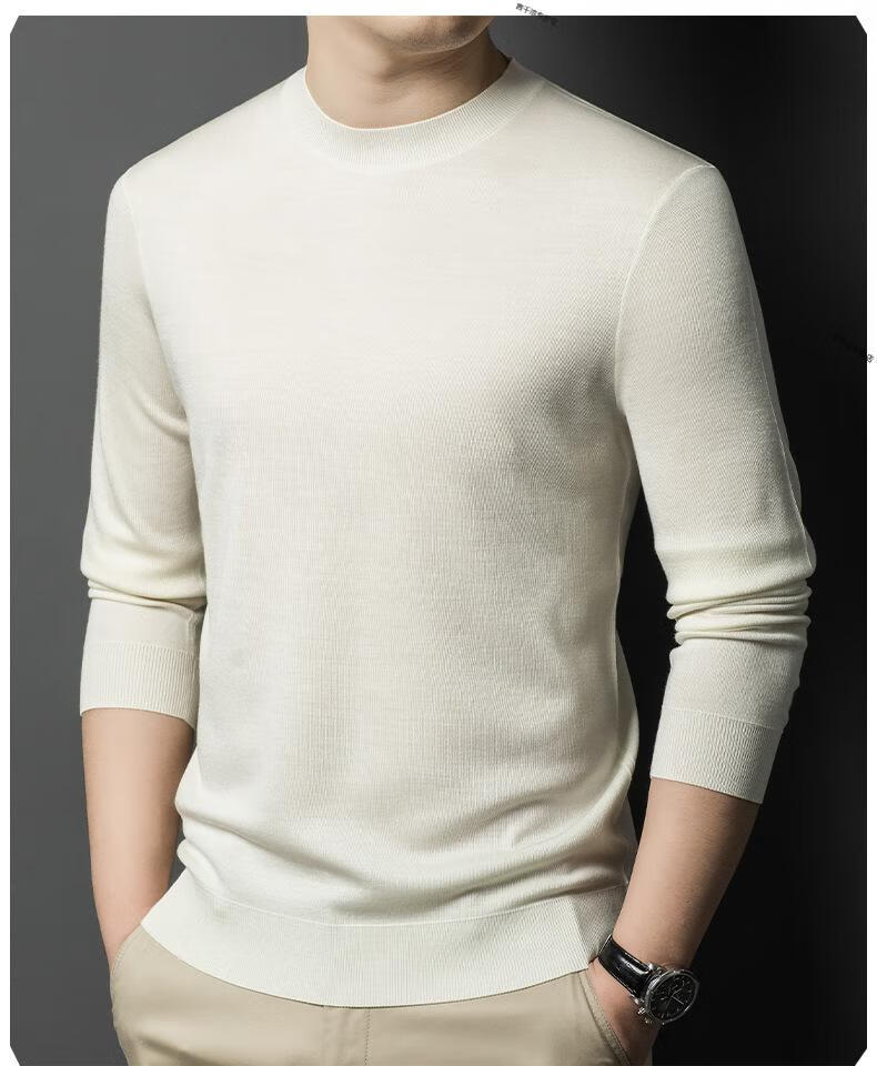 KBXNG Jinba business men's flat worsted wool sweater round neck pullover autumn and winter long-sleeved men's bottoming shirt casual business men white one size 110