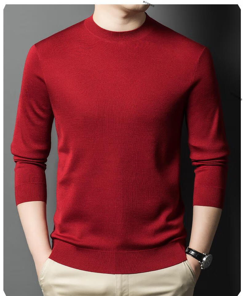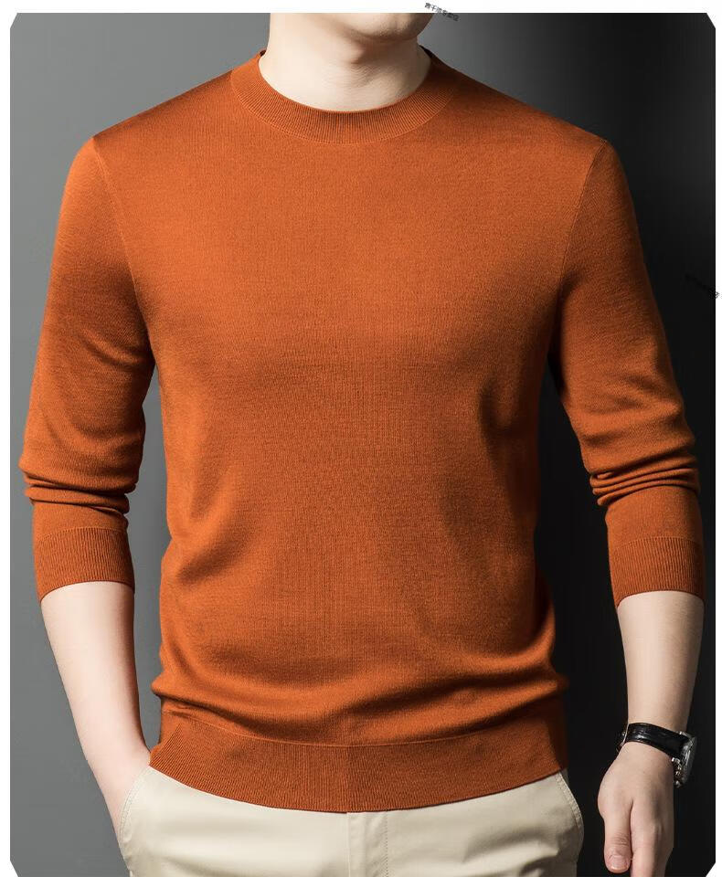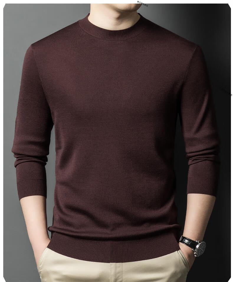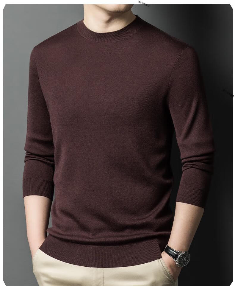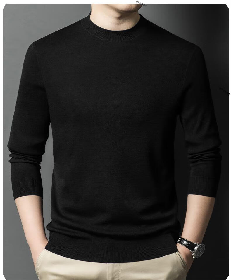 KBXNG Jinba business men's flat worsted wool sweater round neck pullover autumn and winter long-sleeved men's bottoming shirt casual business men white one size 110