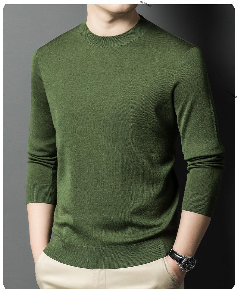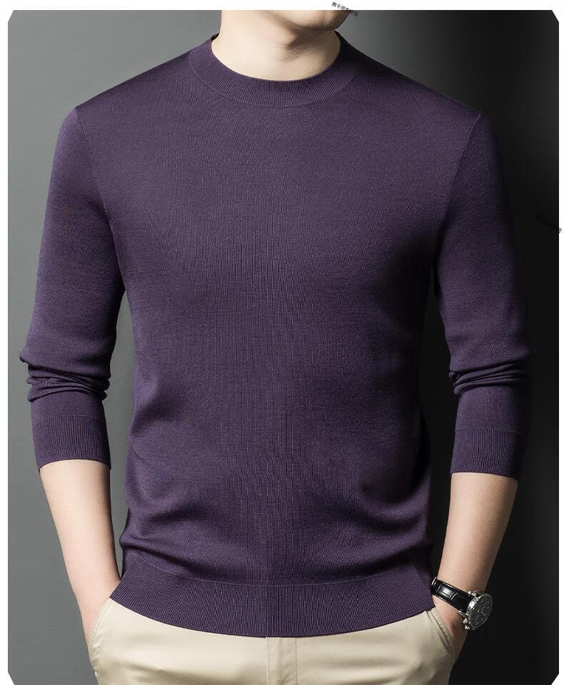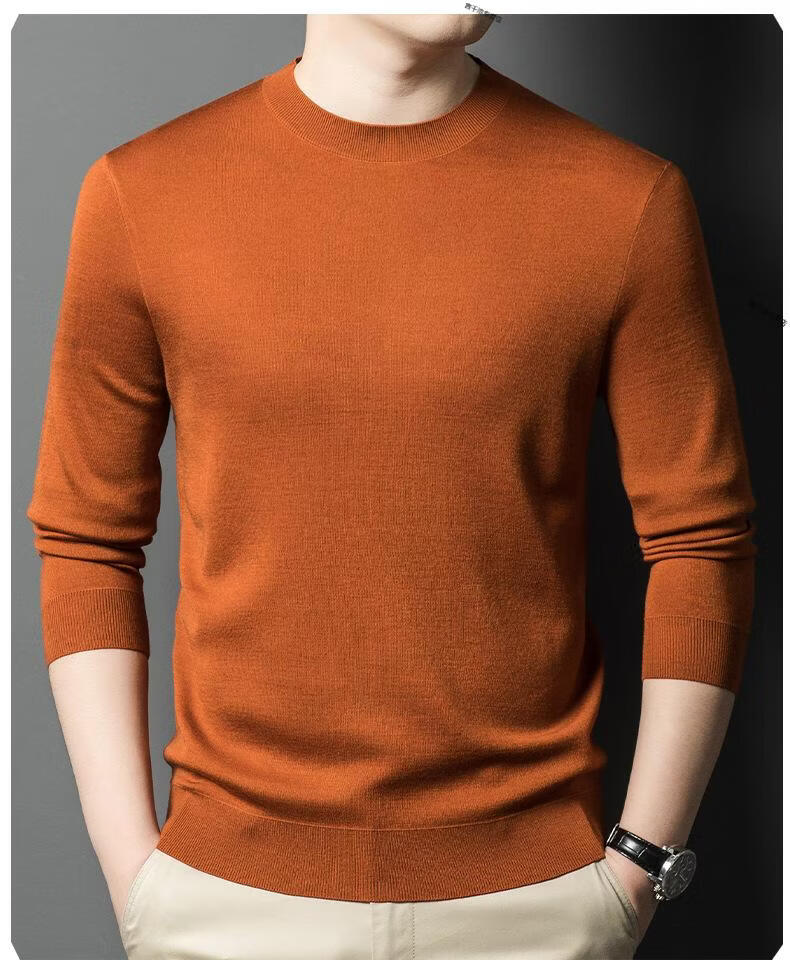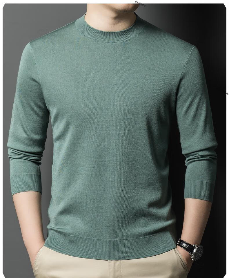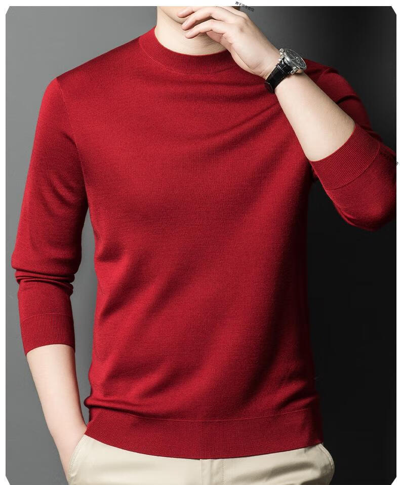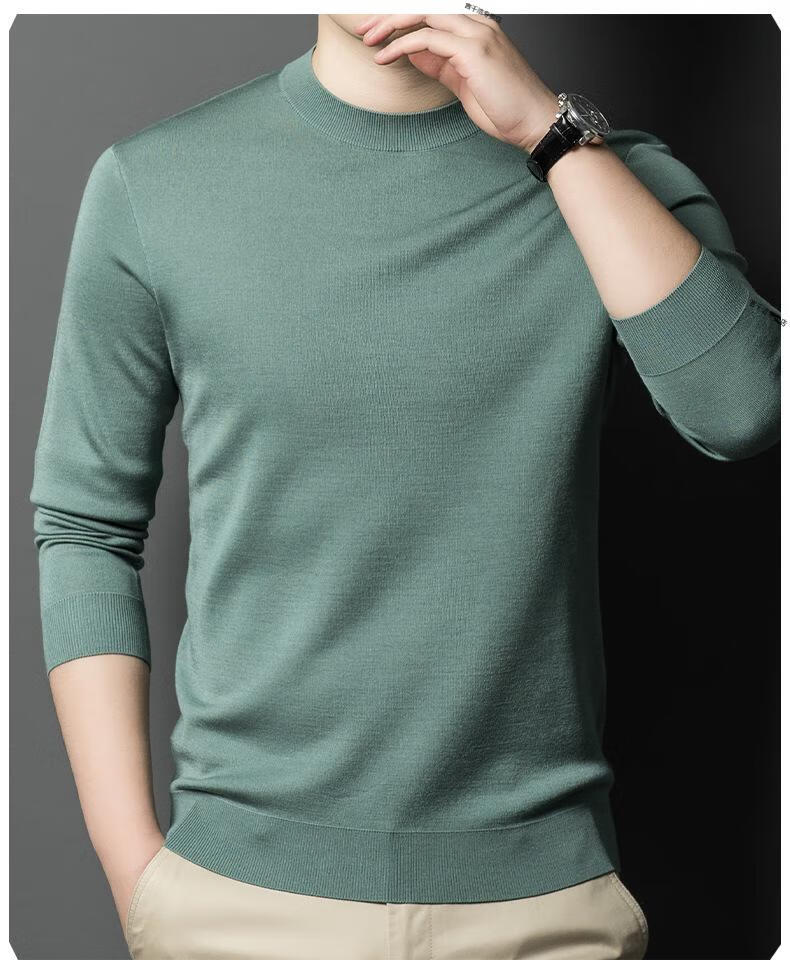 KBXNG Jinba business men's flat worsted wool sweater round neck pullover autumn and winter long-sleeved men's bottoming shirt casual business men white one size 110
