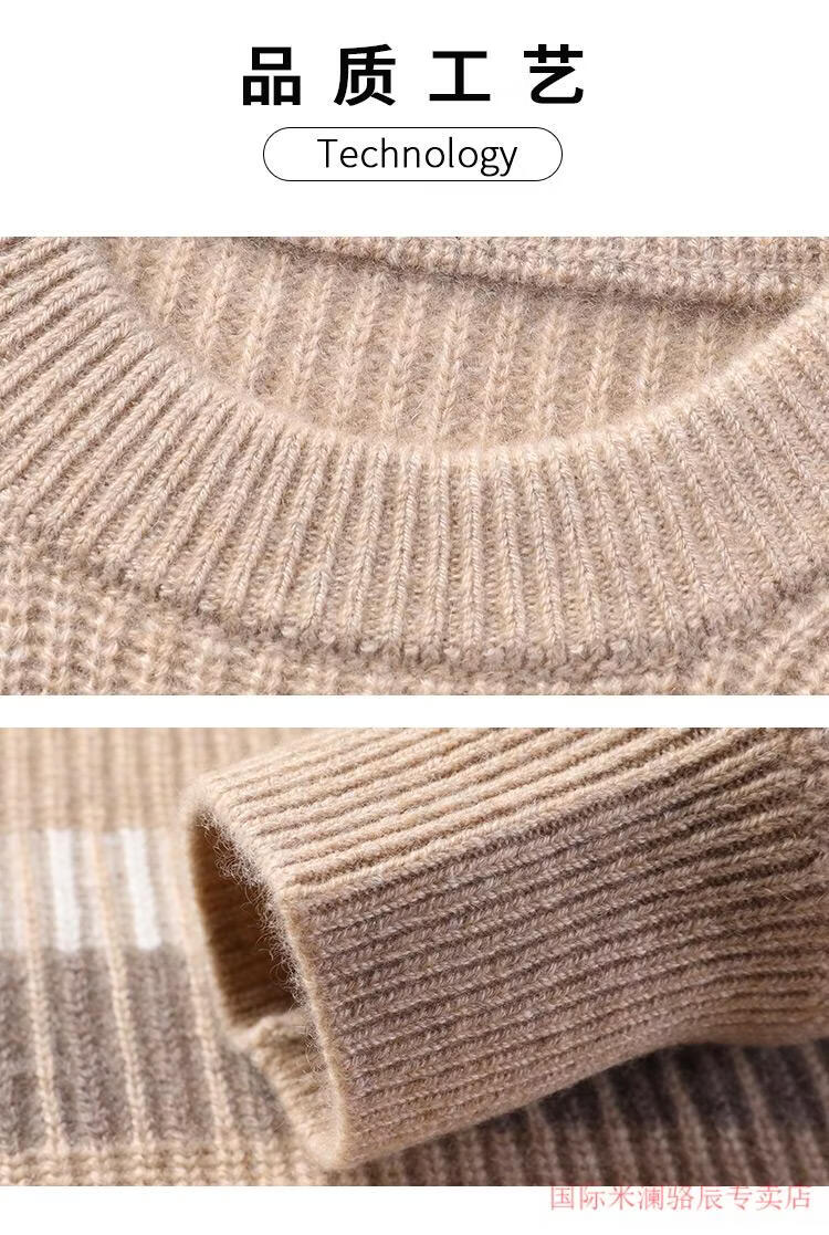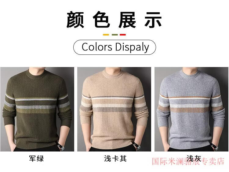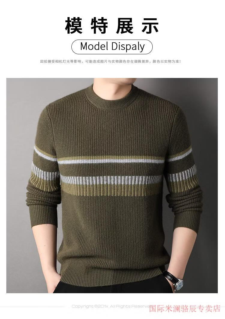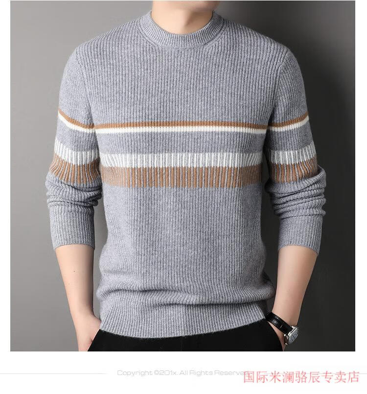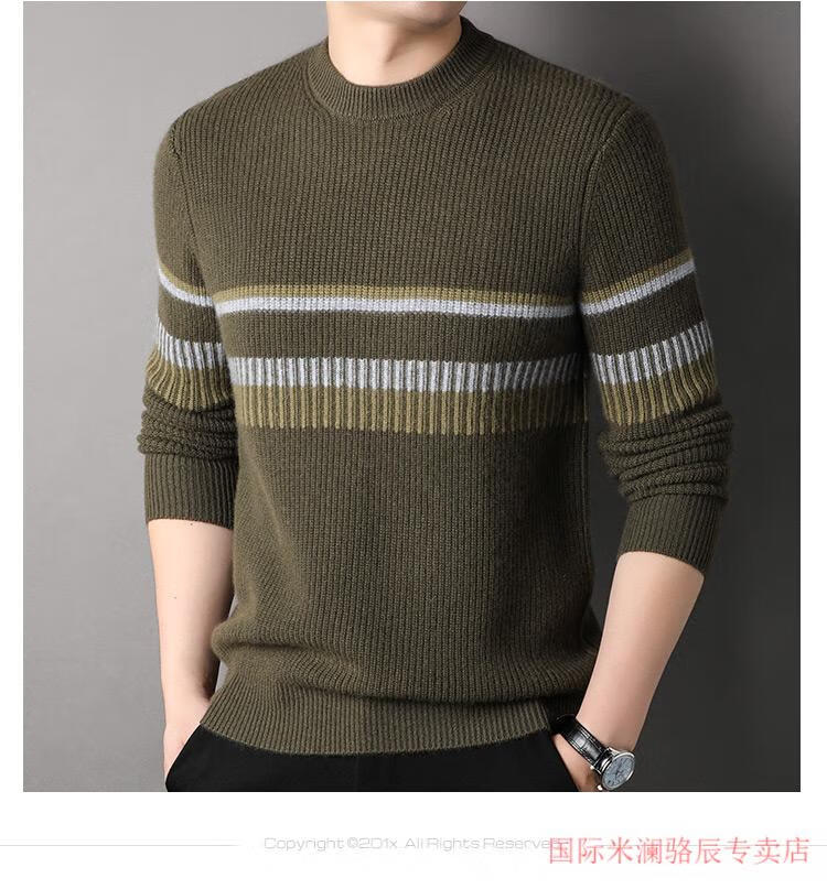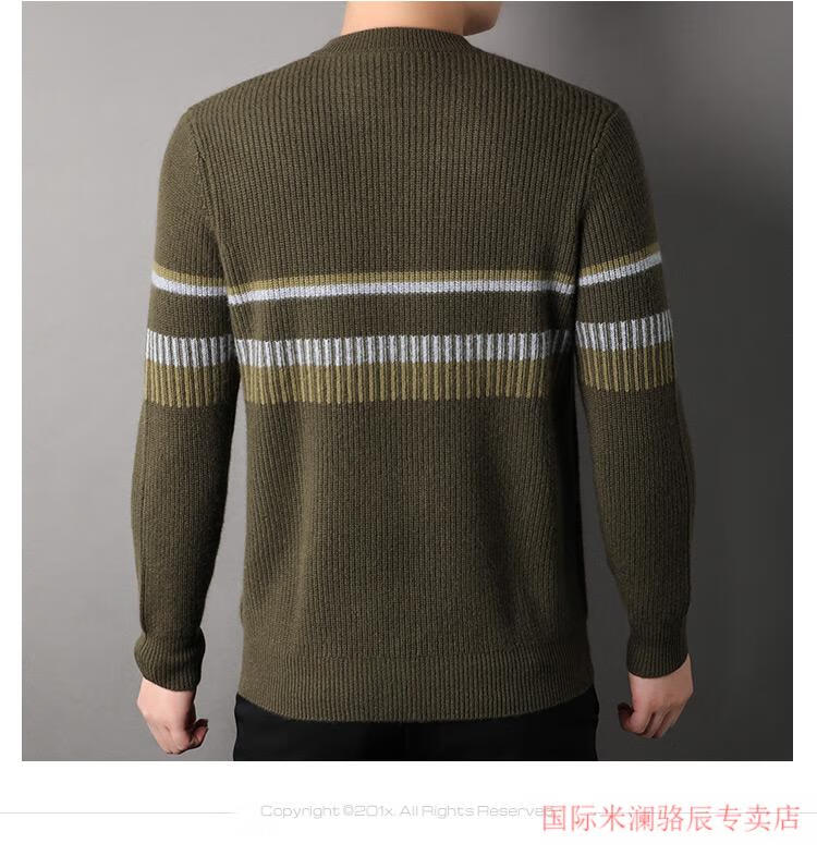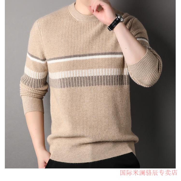 International Milan Ordos city-produced 100% pure cashmere men's round-neck striped sweater winter young and middle-aged sheep. Sweater light khaki Ordos/no pilling/super grade/cashmere XL 175 (recommended weight 140-160Jin Jin equals 0.5 kg)
