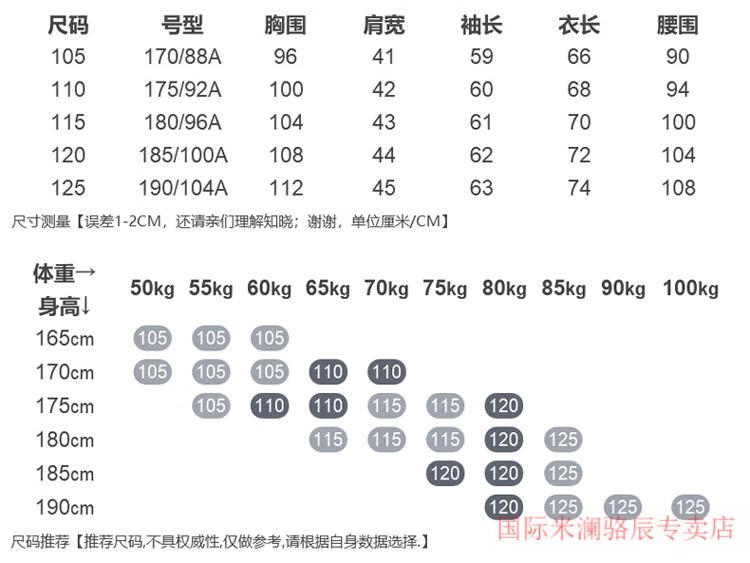 China (cm) 160-165/84-86 165-170 / 88-90 167-172 / 92-96 168-173 / 98-102 170-176 / 106-110