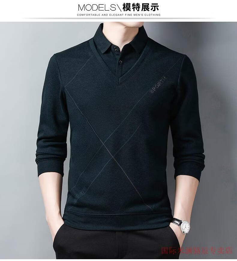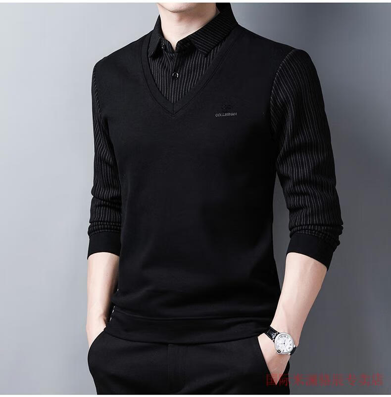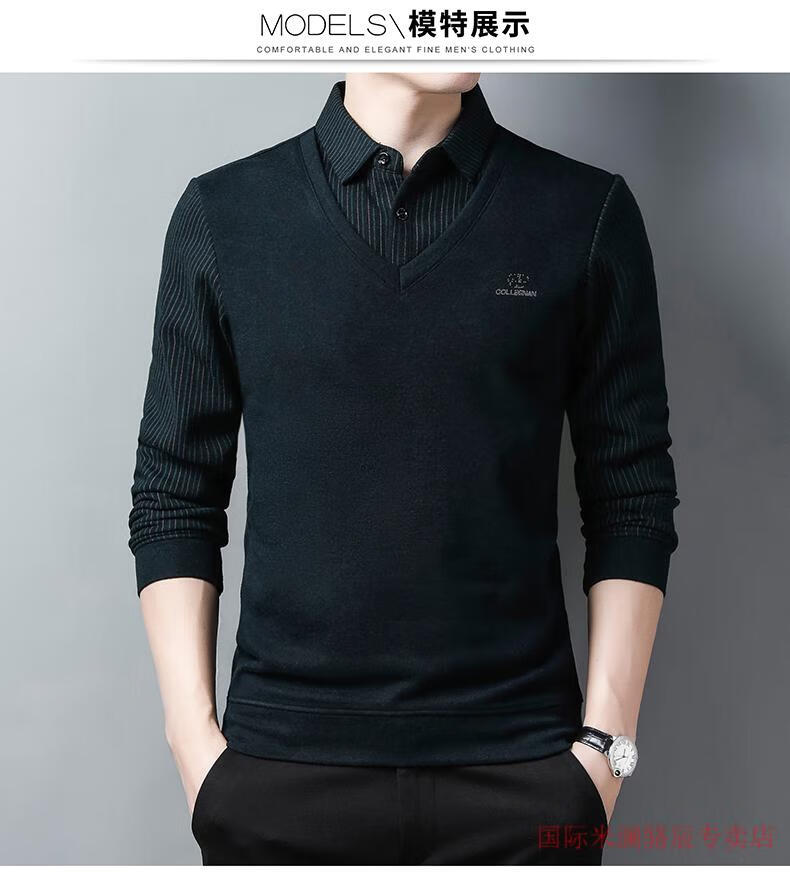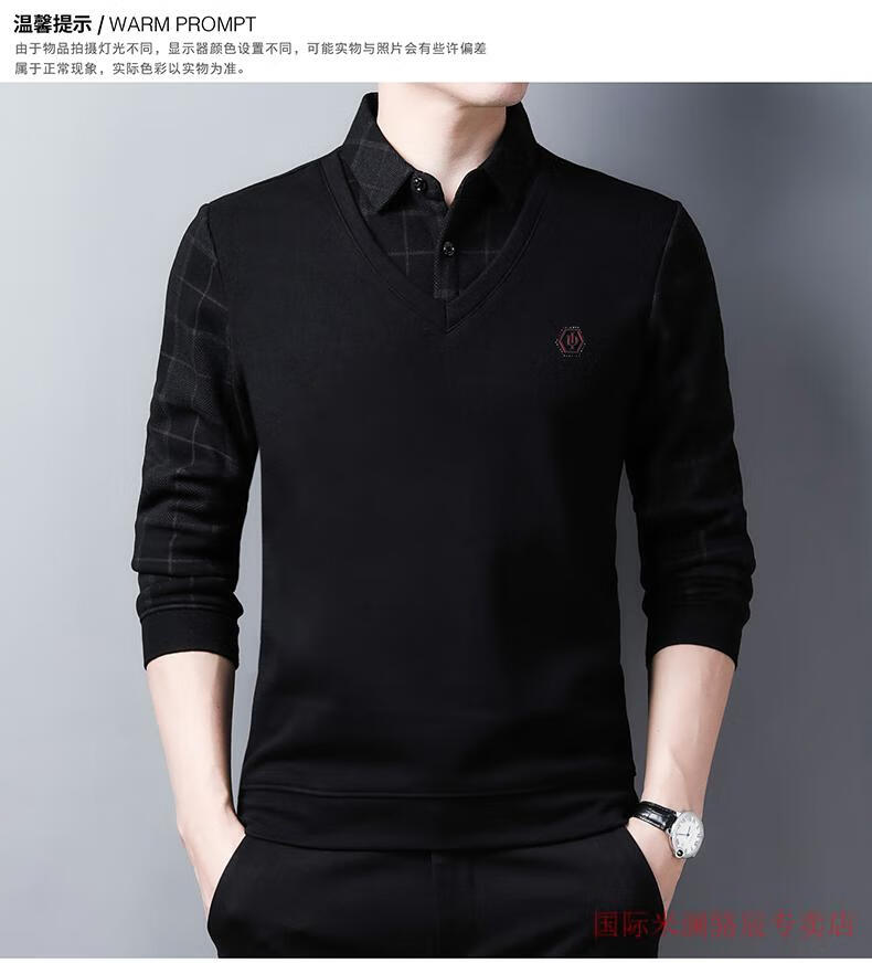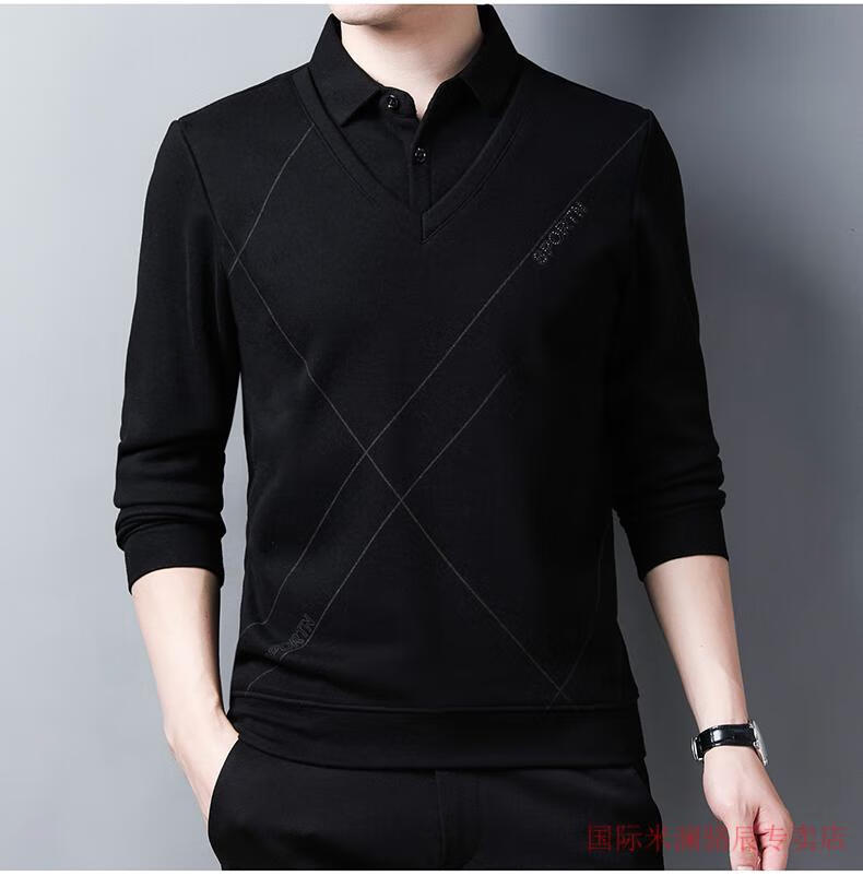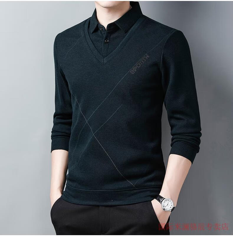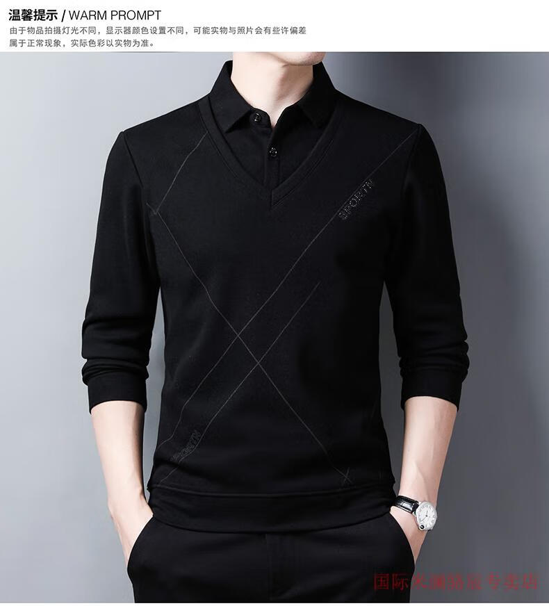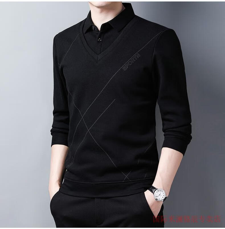 International Milan Ordos city-produced 100% pure cashmere men's fake two-piece sweater for middle-aged winter casual sheep. Sweater 9831-black Ordos/no pilling/super grade/cashmere XL 175 (recommended weight 140-160Jin Jin equals 0.5 kg)