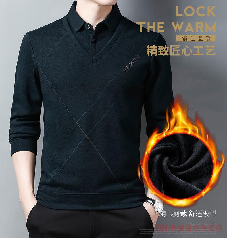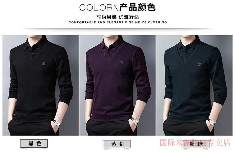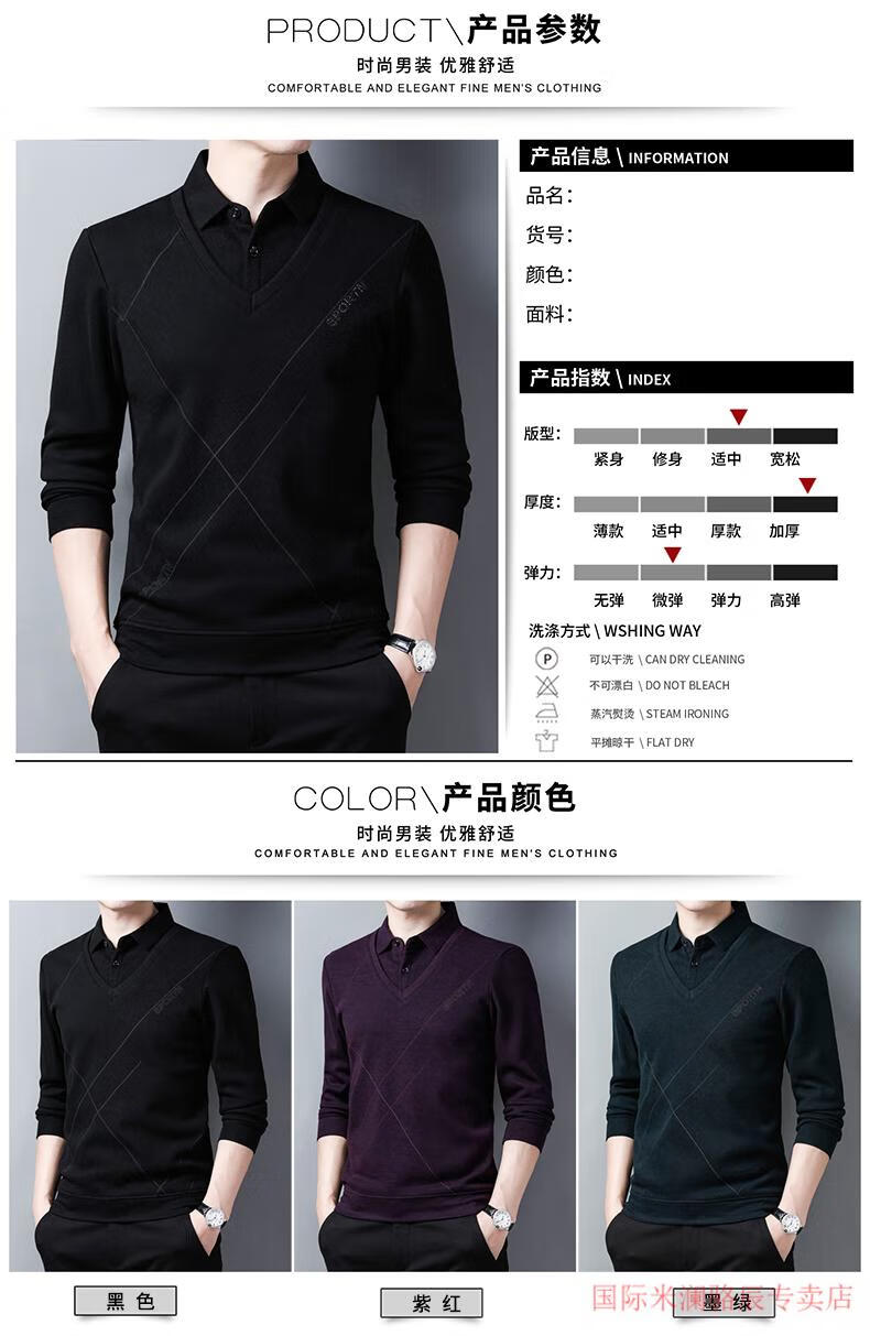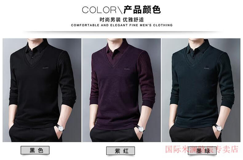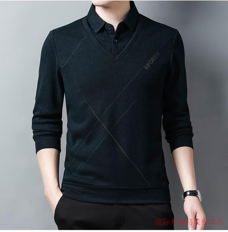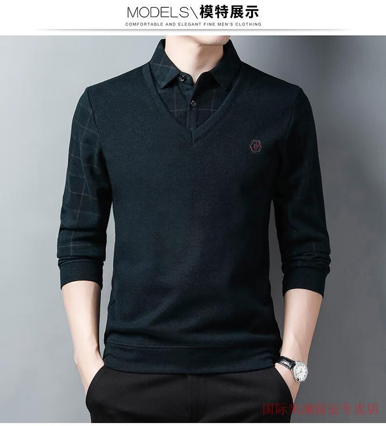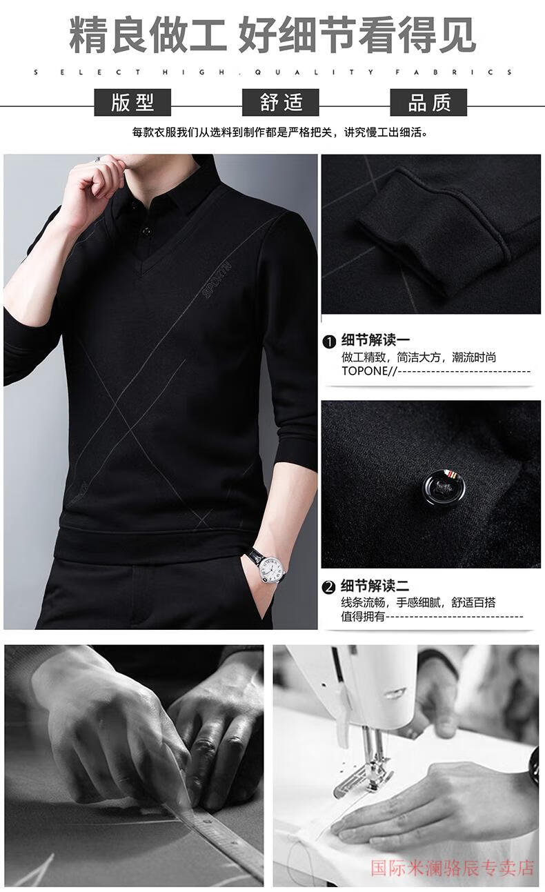International Milan Ordos city-produced 100% pure cashmere men's fake two-piece sweater for middle-aged winter casual sheep. Sweater 9831-black Ordos/no pilling/super grade/cashmere XL 175 (recommended weight 140-160Jin Jin equals 0.5 kg)