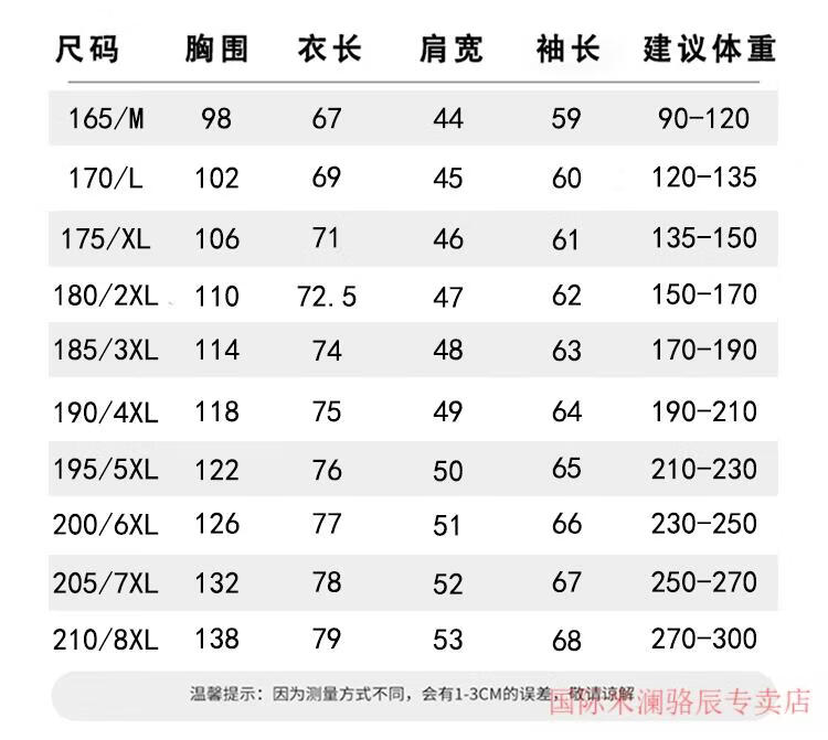 China (cm) 165 / 88-90 170 / 96-98 175 / 108-110 180 / 118-122 185 / 126-130