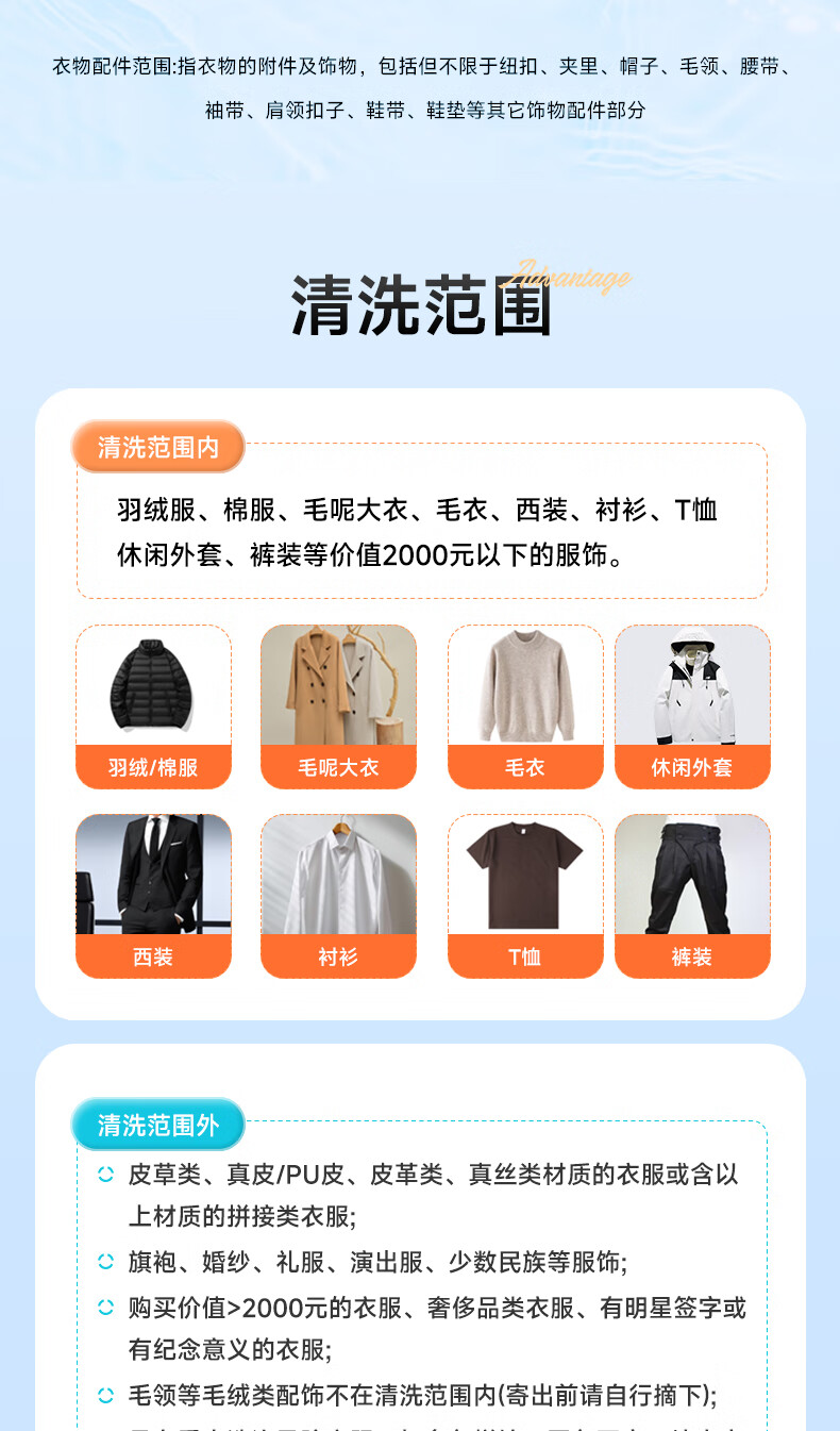 Door-to-door pick-up of laundry services Laundry service Door-to-door pick-up of dry cleaning clothes Down jackets Dry-cleaning door-to-door pick-up of cotton clothes/down jackets/shirts/jackets Dry cleaning, stain removal and ironing 3 pieces Need to contact customer service to make an appointment for pick-up