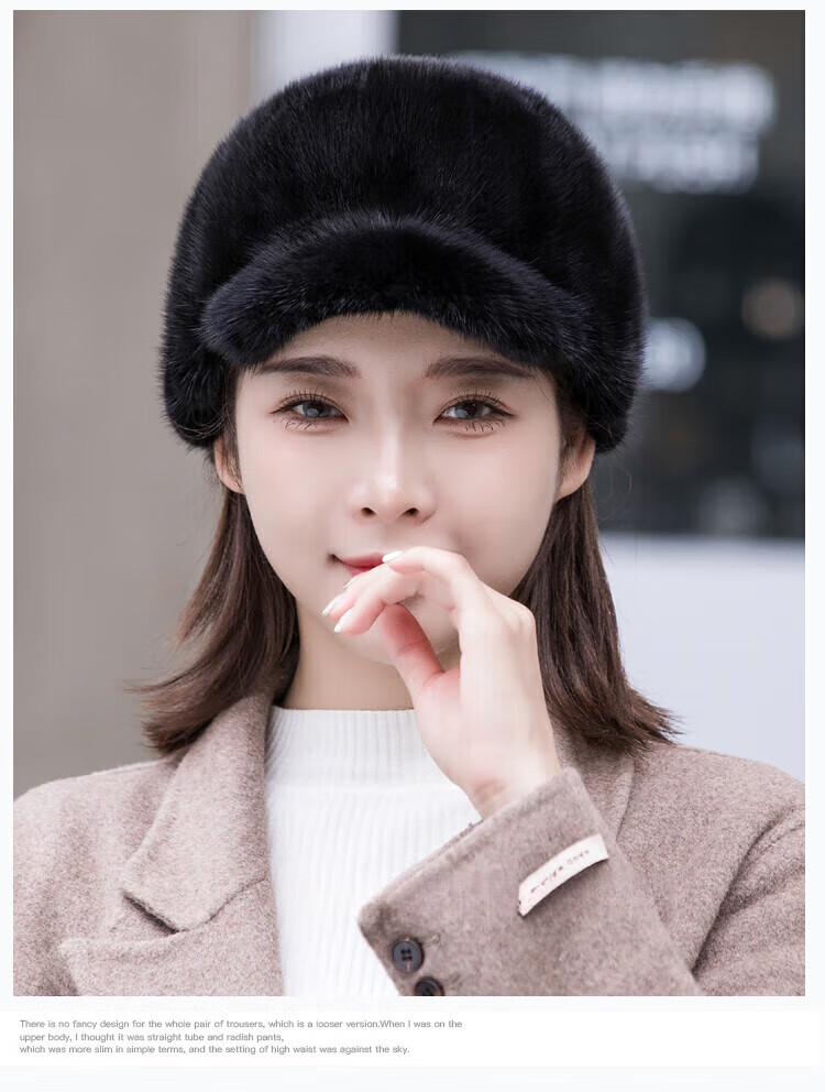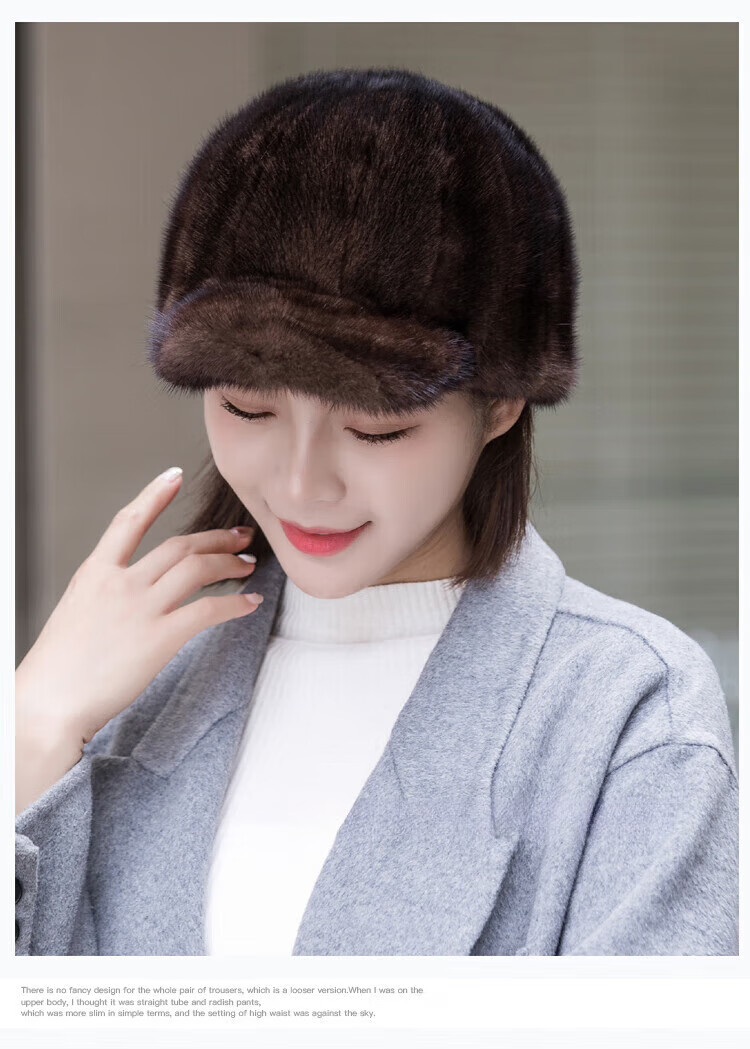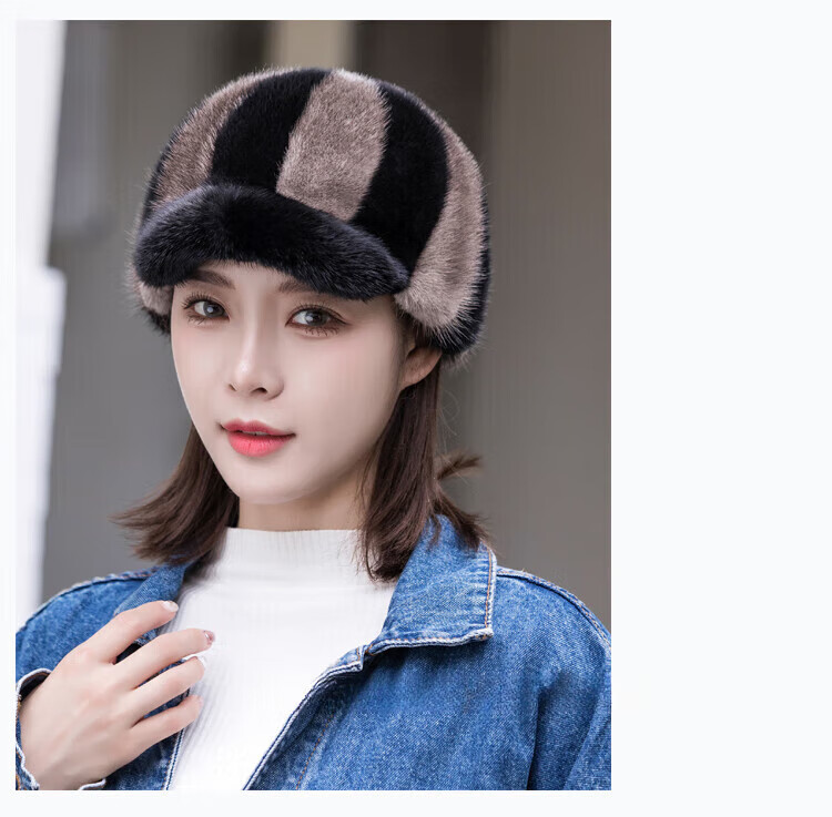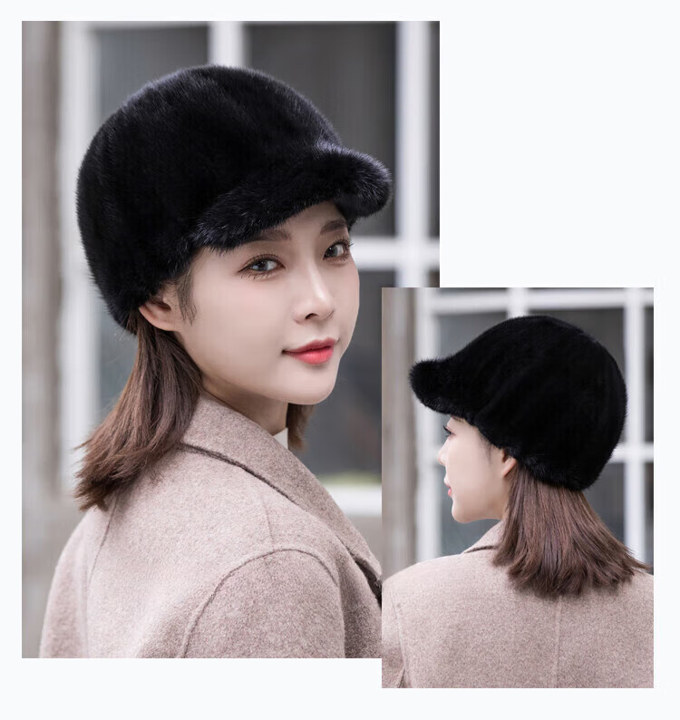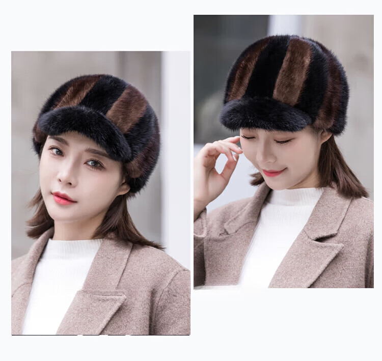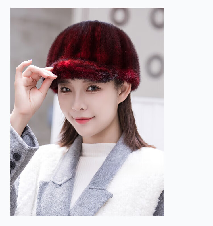 Hengyuanxiang mink hat winter windproof and warm thickened mink women's peaked cap ear protection fur Korean style mink hat burgundy M (56-58cm)