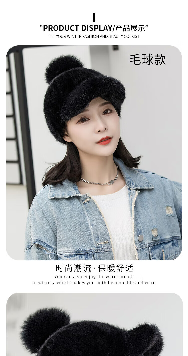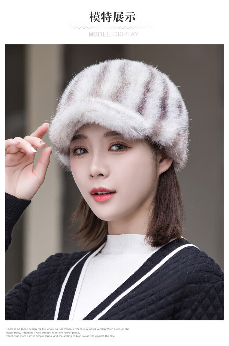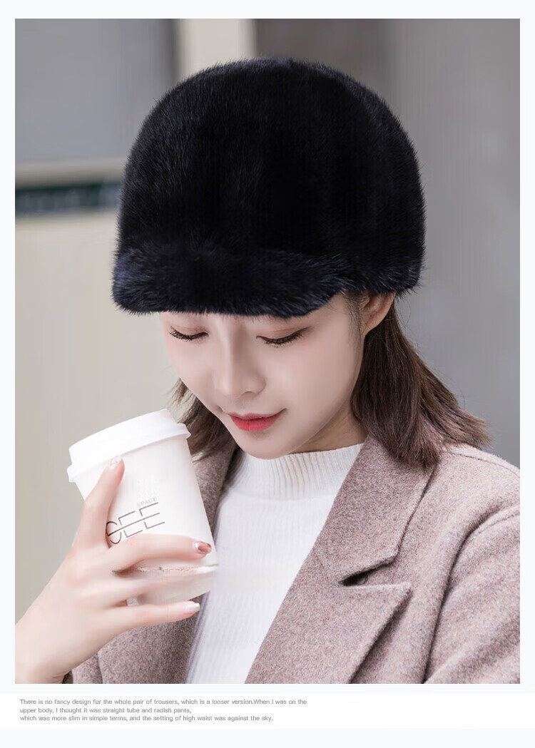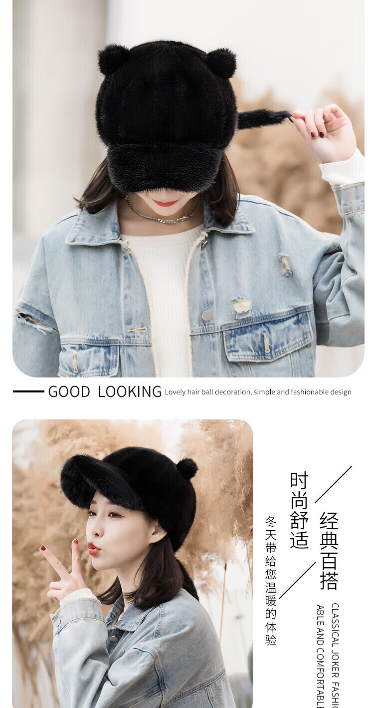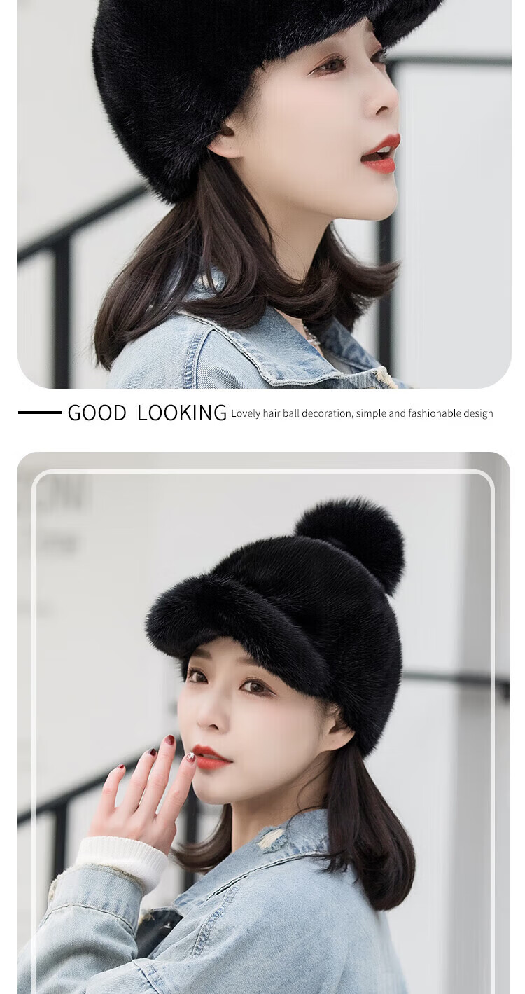 Hengyuanxiang mink hat winter windproof and warm thickened mink women's peaked cap ear protection fur Korean style mink hat burgundy M (56-58cm)