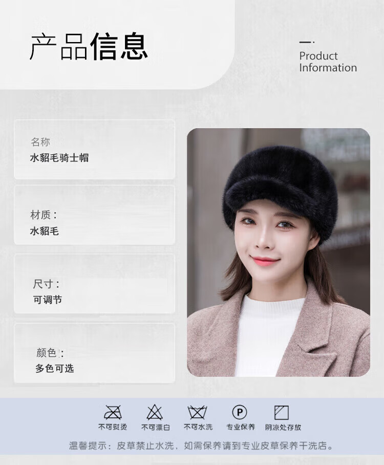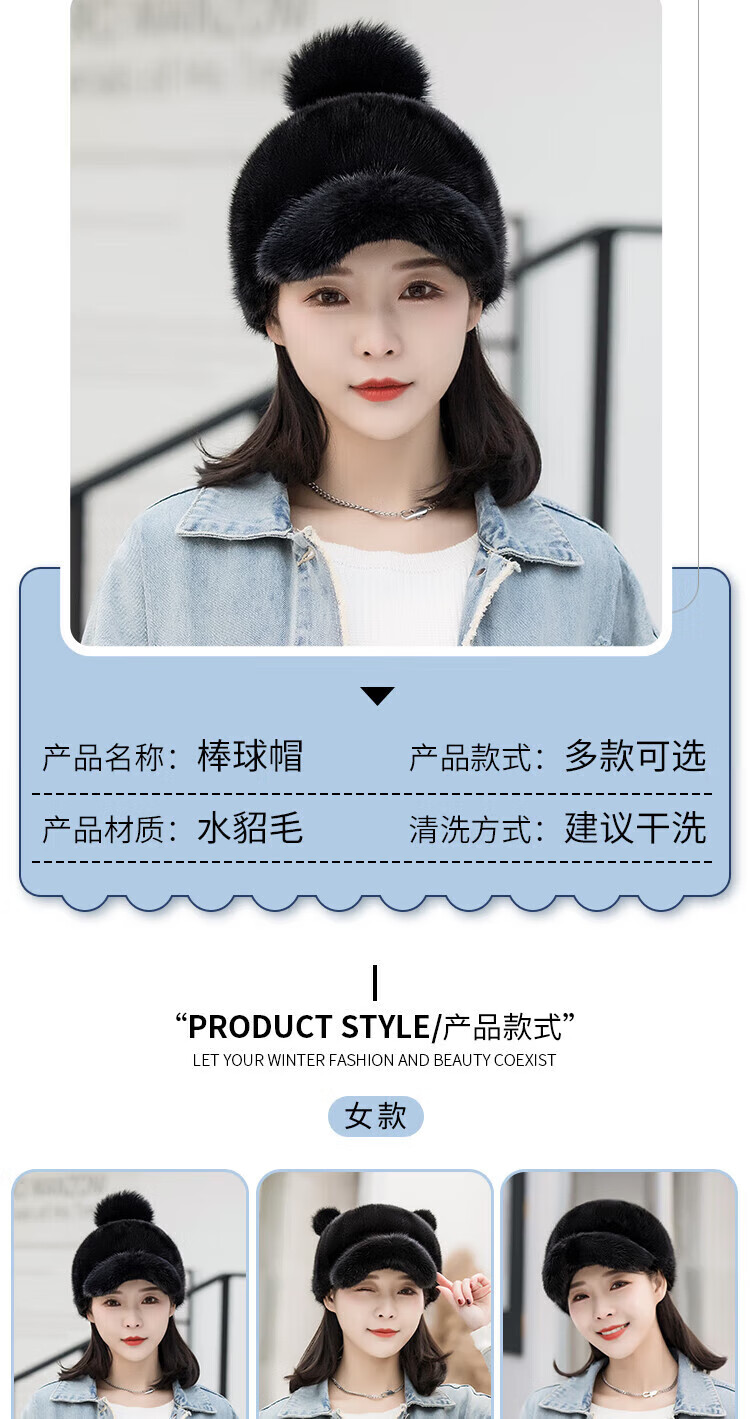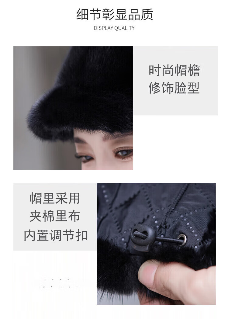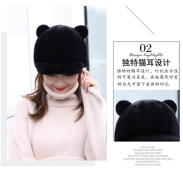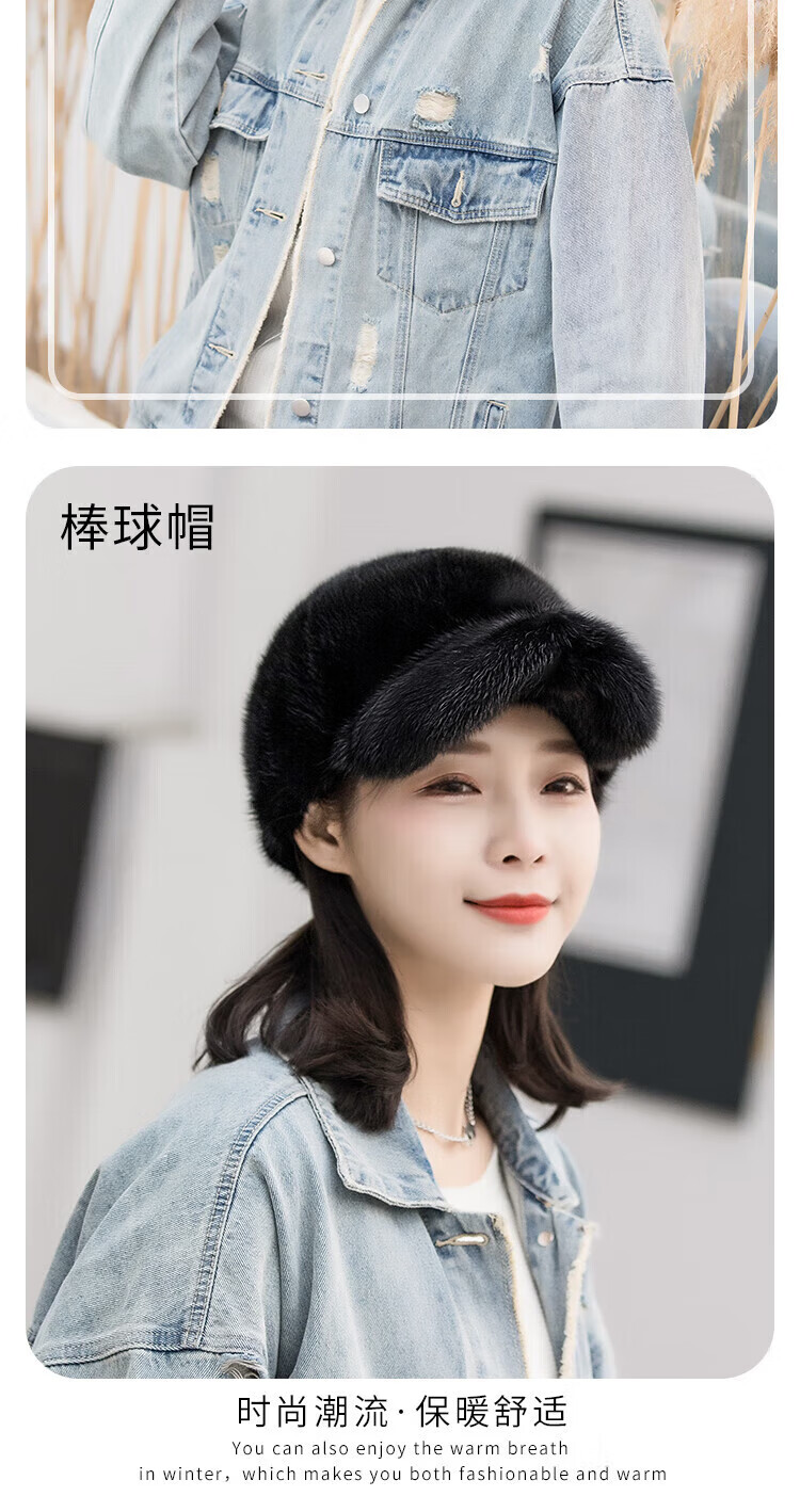 Hengyuanxiang mink hat winter windproof and warm thickened mink women's peaked cap ear protection fur Korean style mink hat burgundy M (56-58cm)