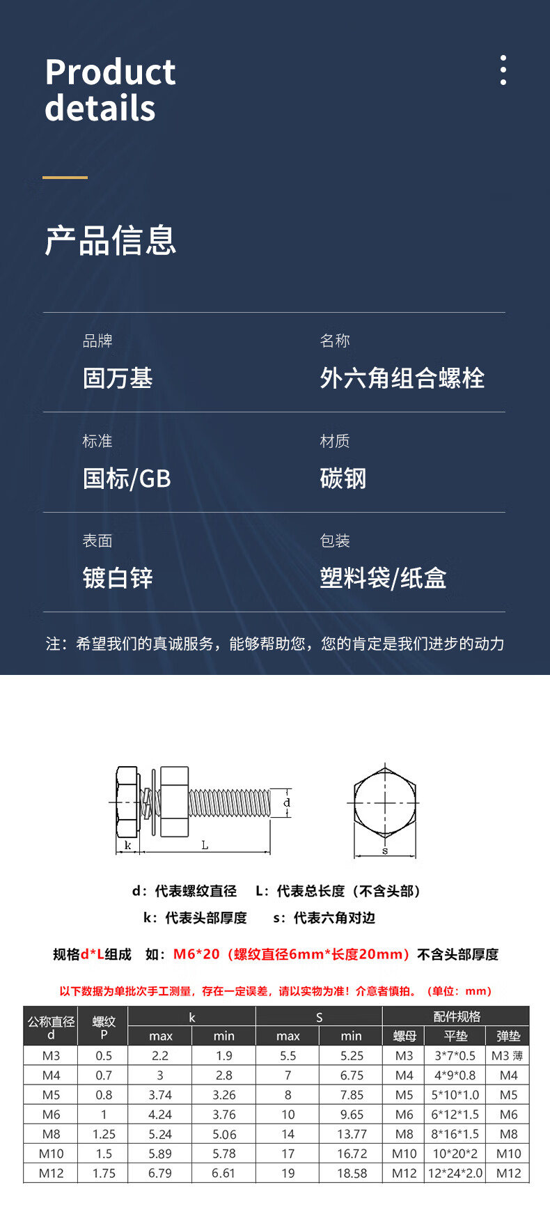 XMSJ48 grade galvanized external hexagonal screw bolt nut set combination screw screw M6*25200 set