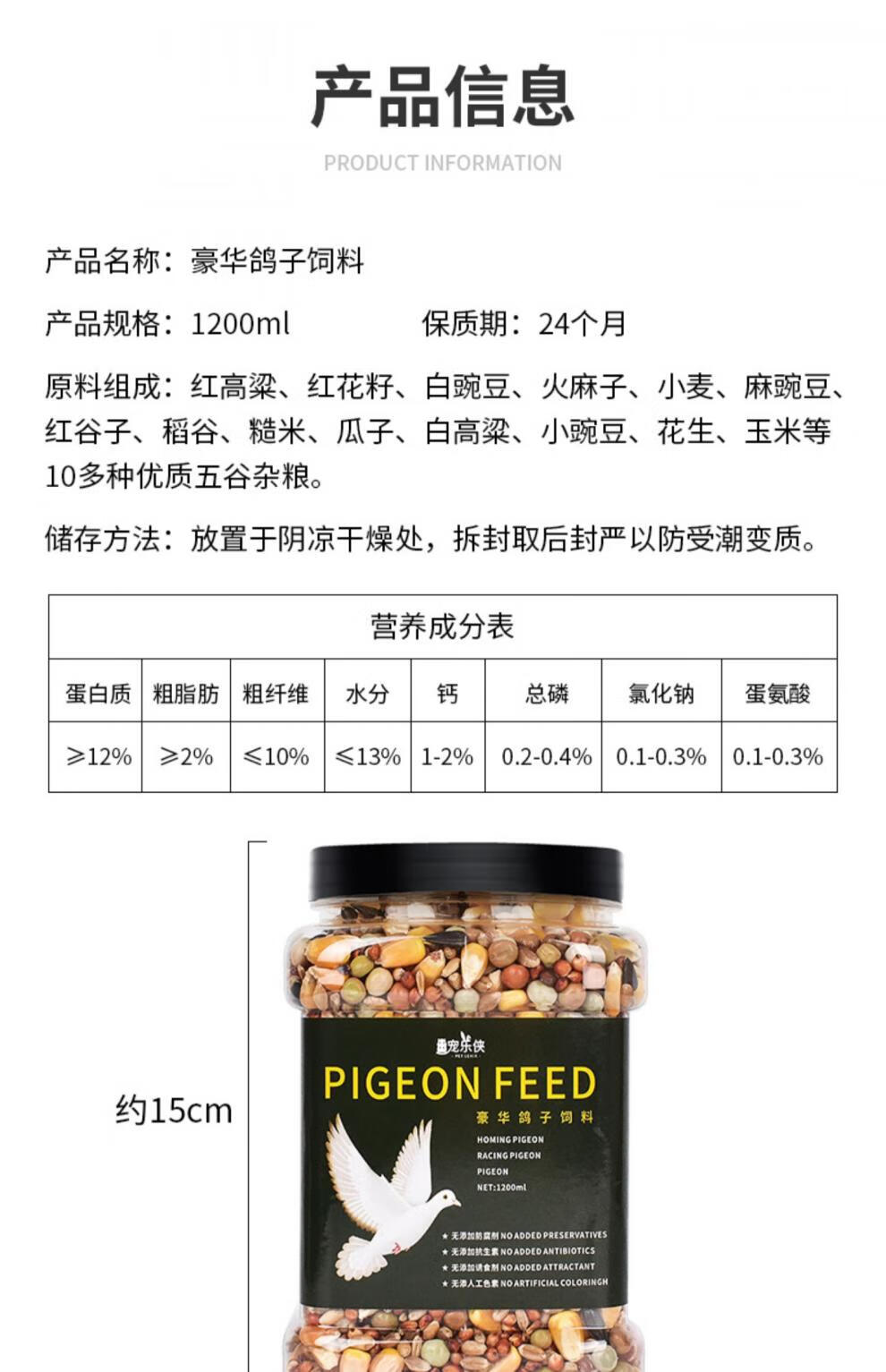 Pet Le Man nutritional pigeon food pigeon feed supplies carrier pigeon racing pigeon breeder pigeon with corn small grain pea grain bird food nutritionally balanced pigeon food 1200ml