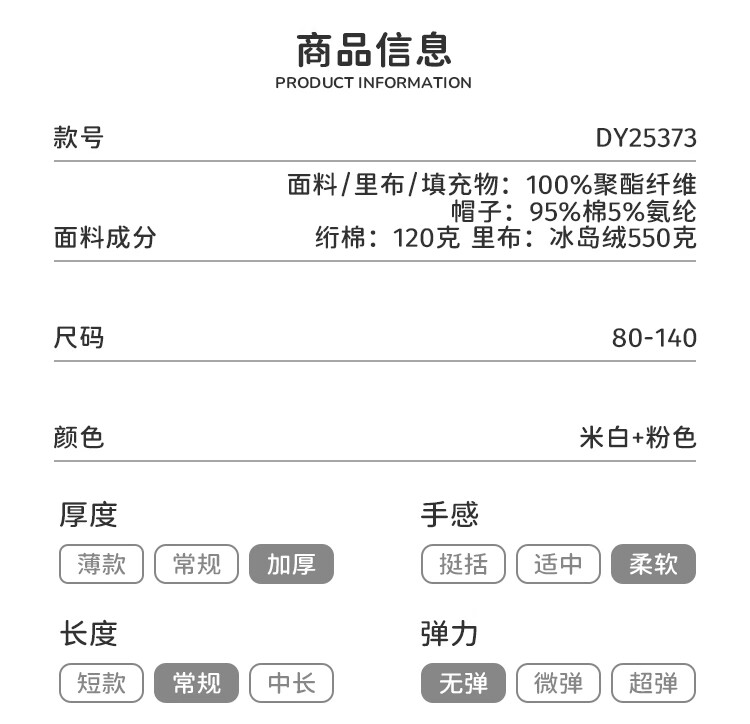 INSBOBO Girls' Cotton Clothes 2025 Winter Baby Cotton Jackets Children's Clothes New Good-looking Children's Jackets Winter Clothes Beige 80