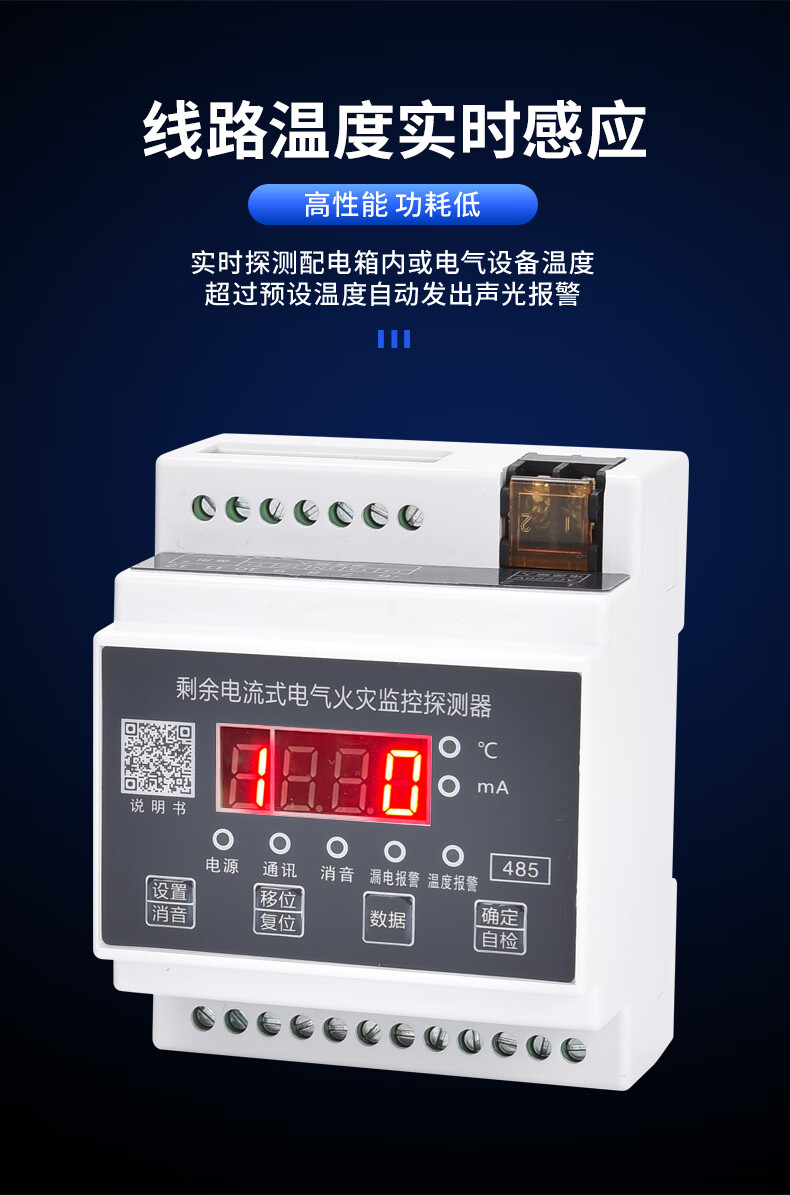Electrical fire monitoring detector, leakage fire alarm, residual current transformer, combined fire monitoring rail installation + 100A round transformer
