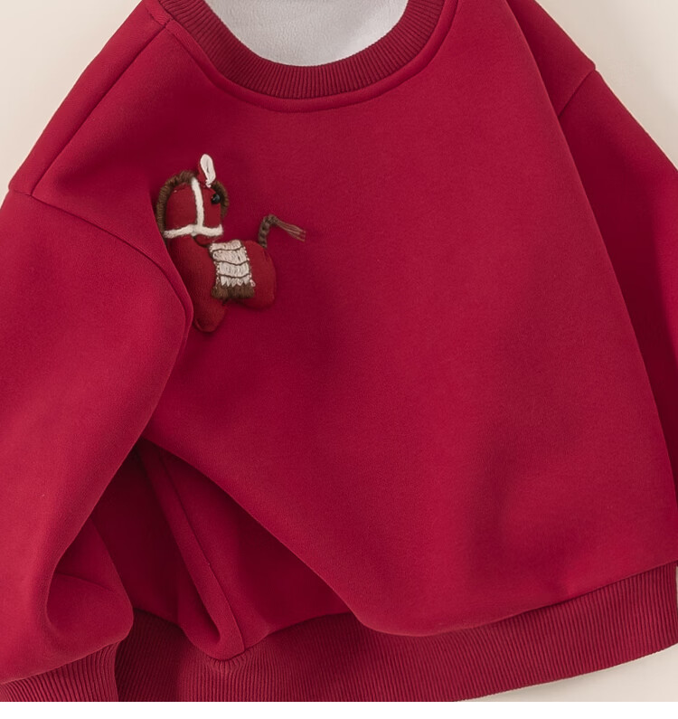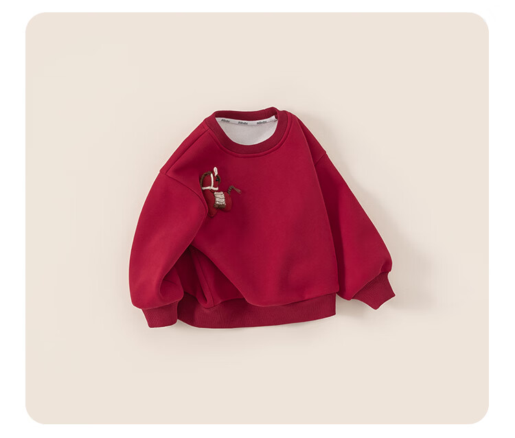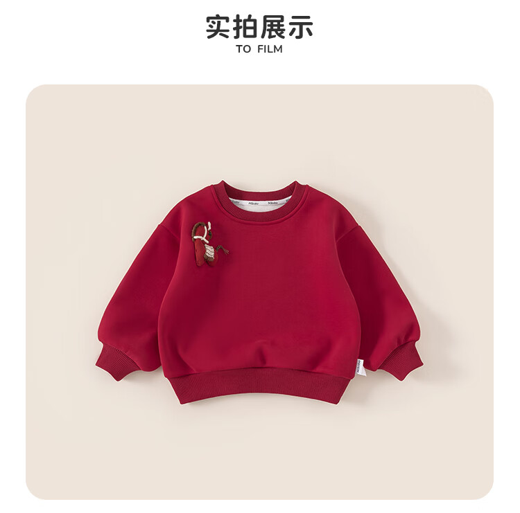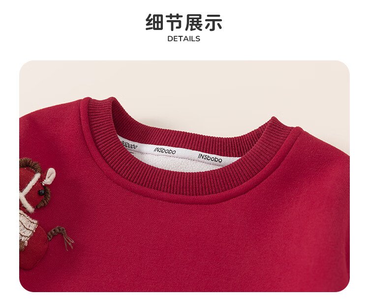 INSBOBO Children's Sweater 2025 Winter Girls New Red New Year Clothes Baby Plush Boys' Tops Red 120
