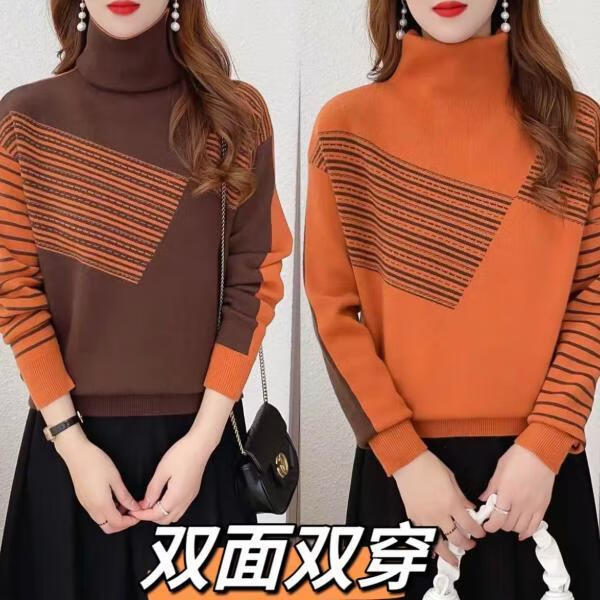 Authentic counter product, fashionable design, two-wear autumn and winter turtleneck, color-blocked, thickened inner sweater, orange brown L (recommended 120-140 Jin Jin equals 0.5 kg)