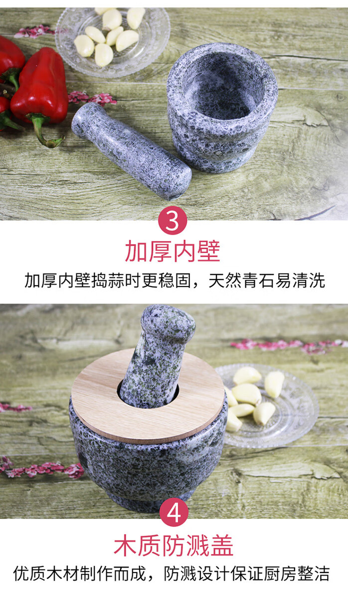 Fantasy garlic peeler, natural garlic mortar, medicine jar, household garlic pounder, stone garlic masher, garlic press, garlic grinder, medium stone mortar with lid