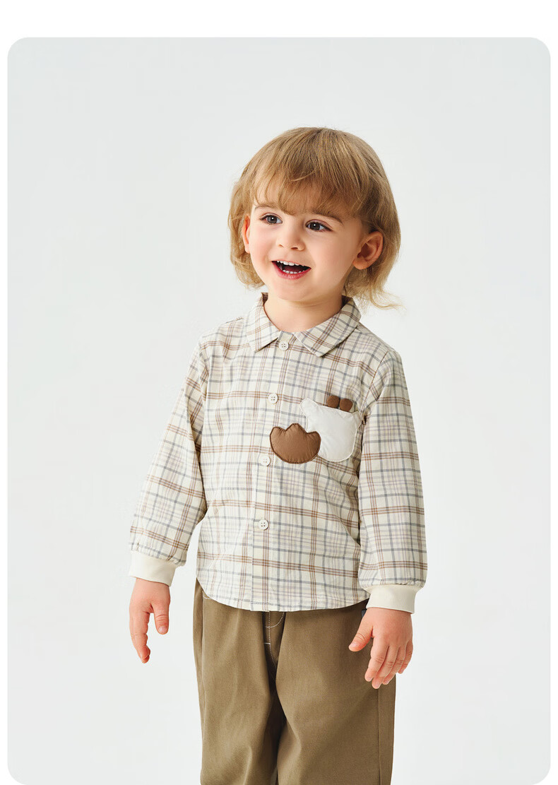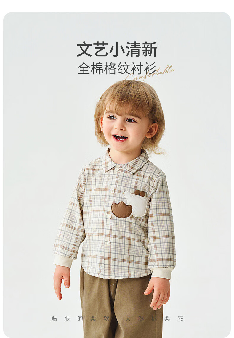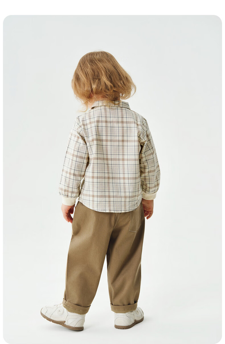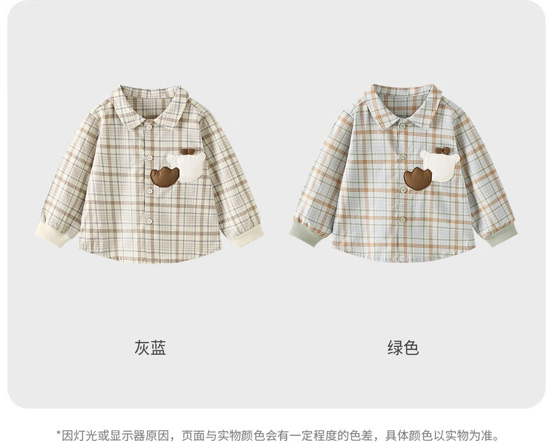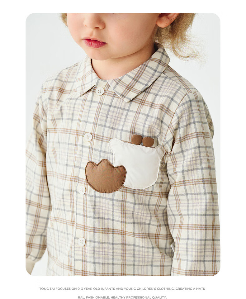 Tongtai (TONGTAI) baby boy shirt spring and autumn pure cotton children's lapel top boy casual outing cute plaid shirt green 110