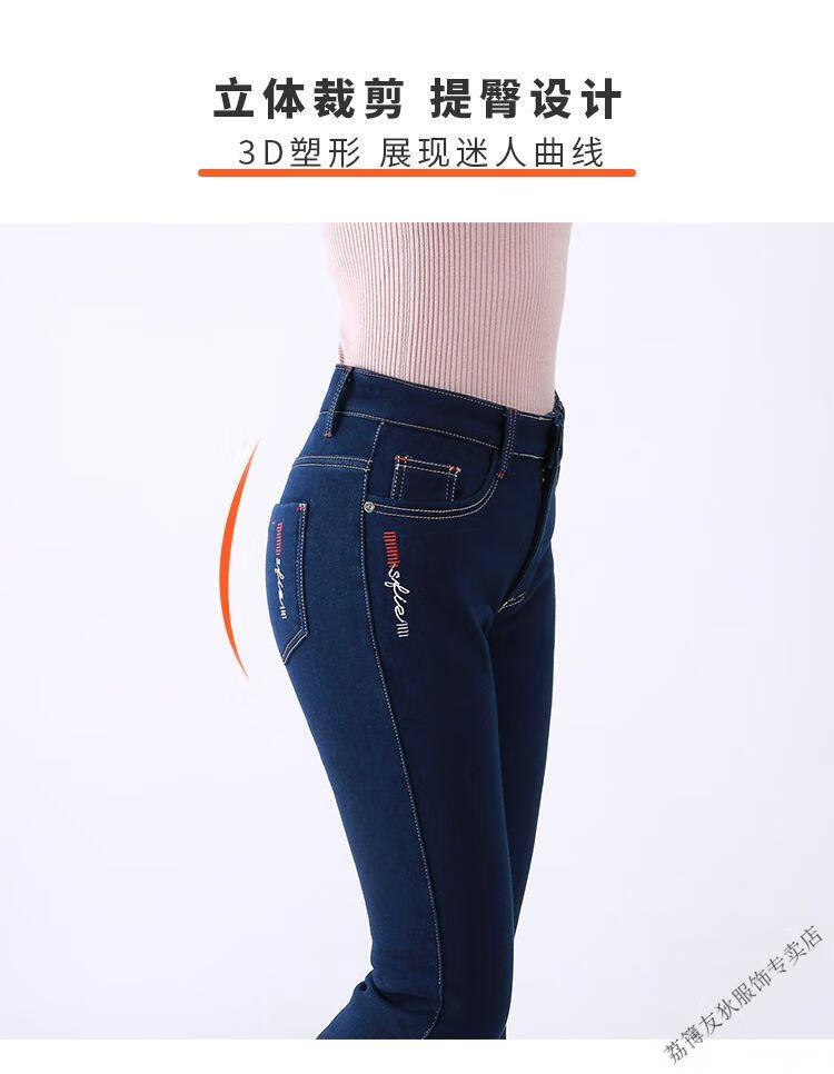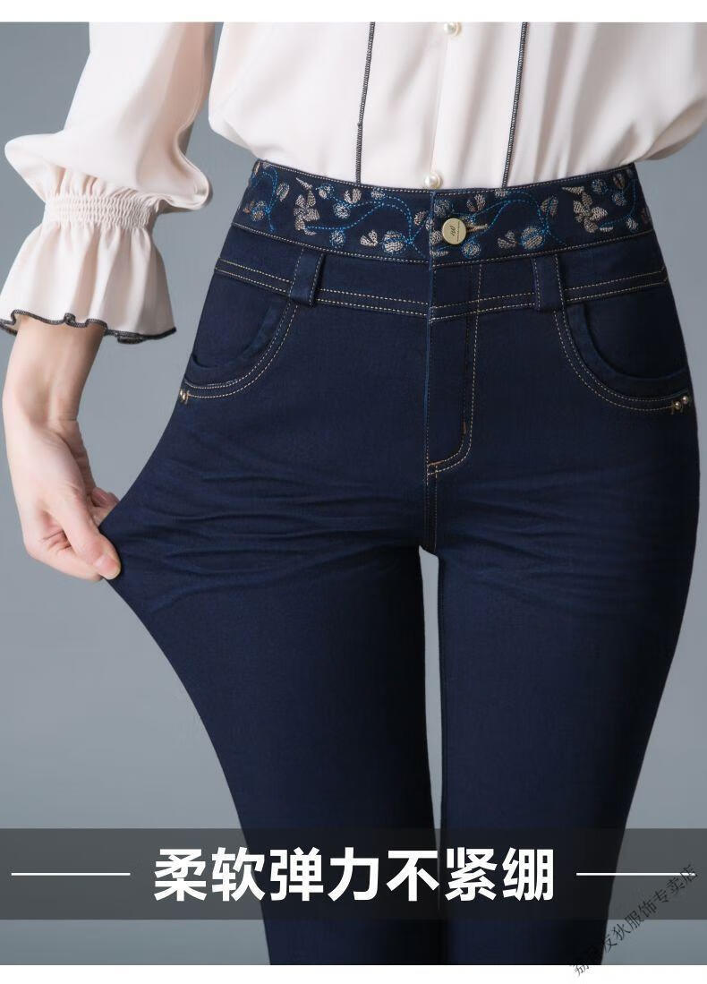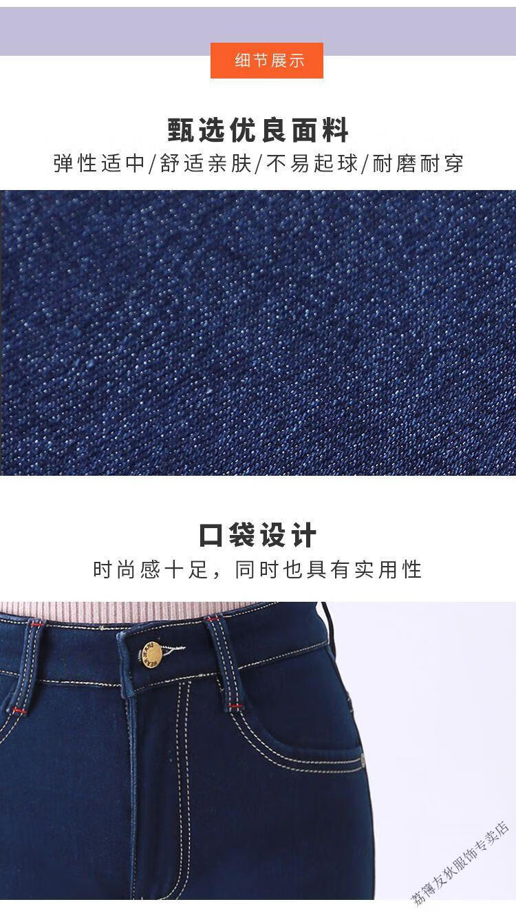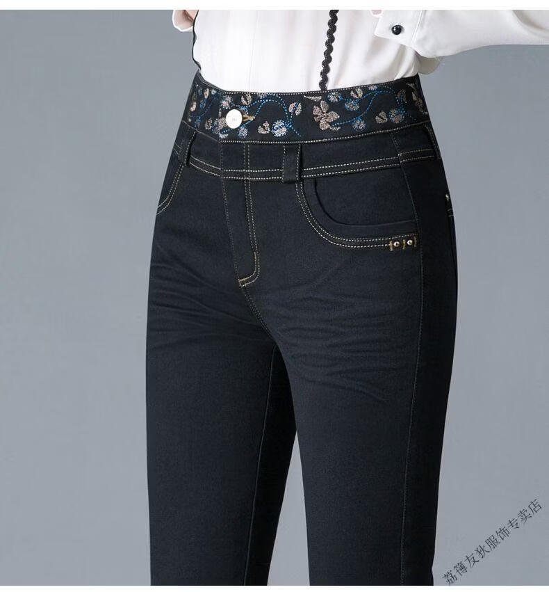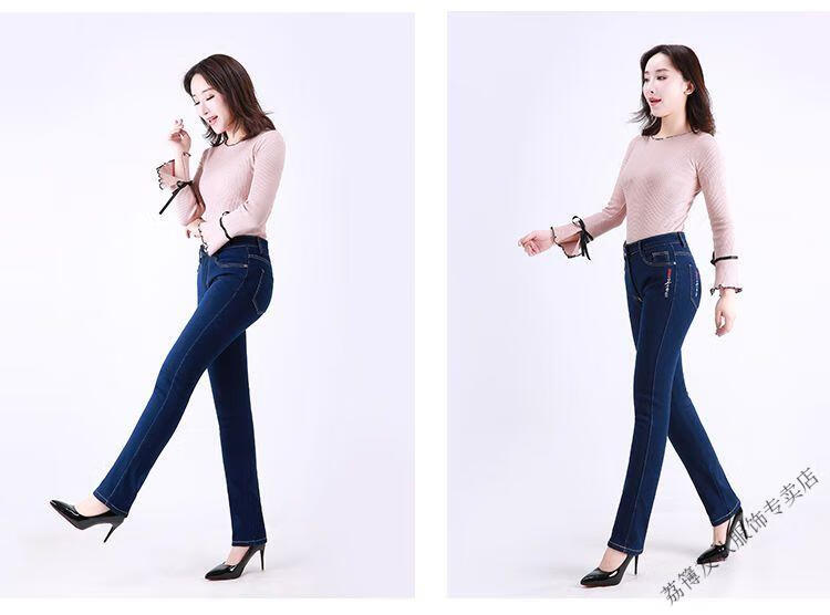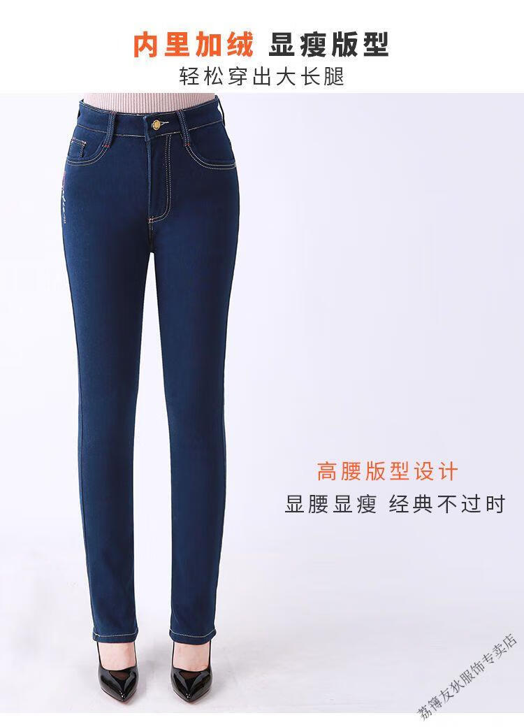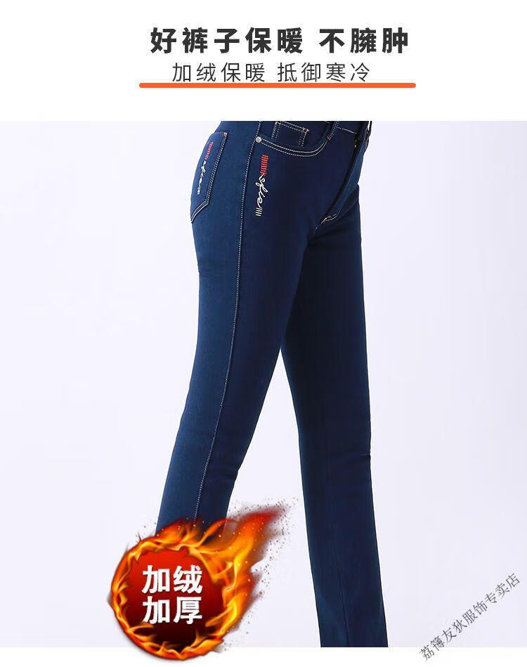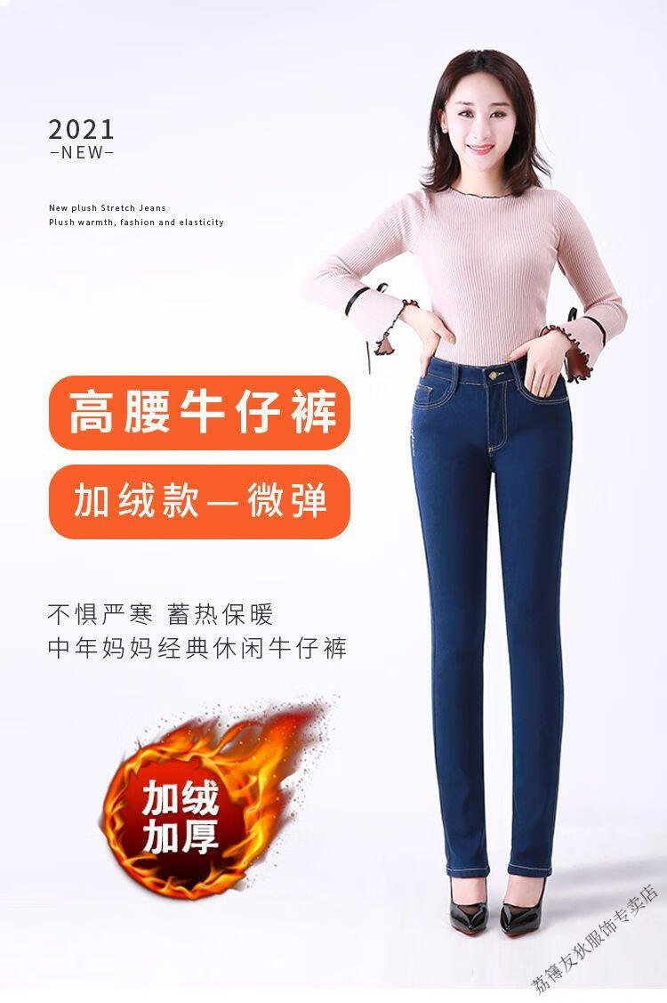 Luo Meng winter velvet jeans for women new high-waisted velvet trousers for middle-aged and elderly people straight leg warm women's trousers thickened velvet A201 style dark blue 27 pants waist 2 feet