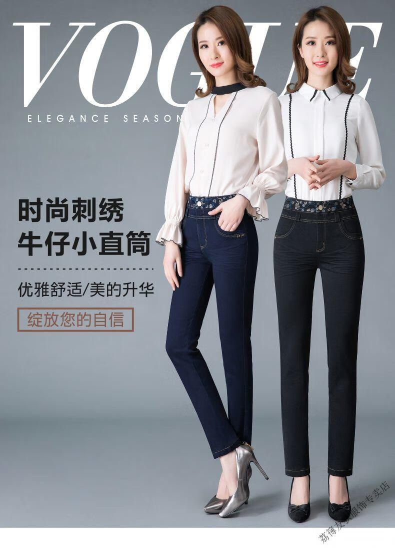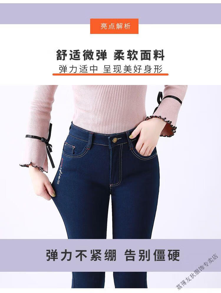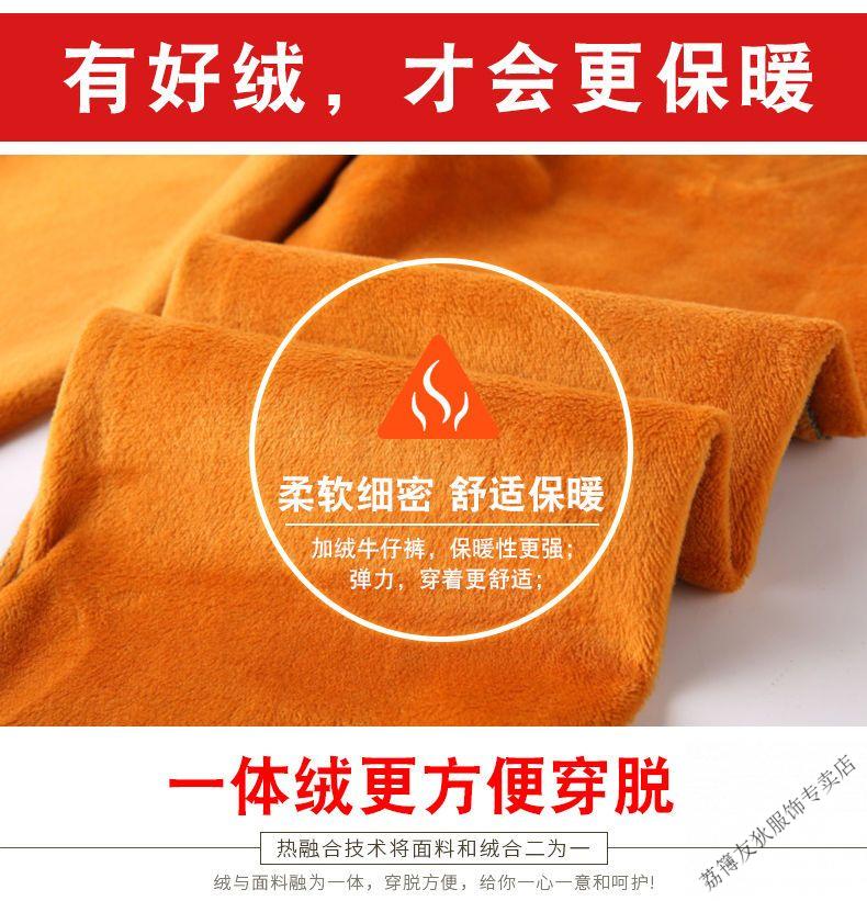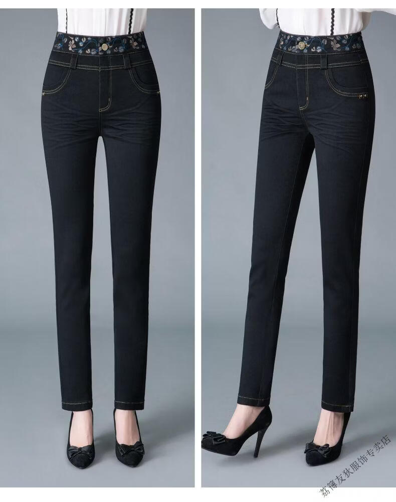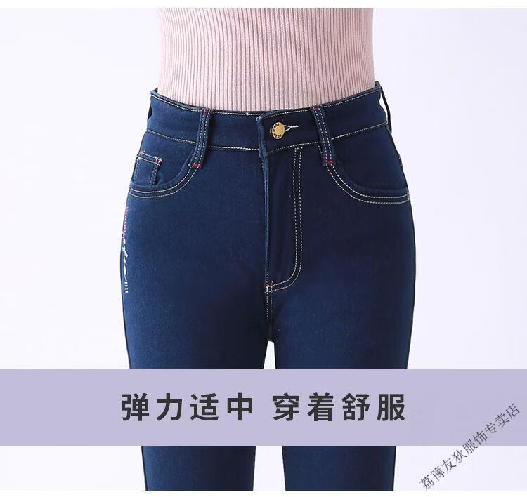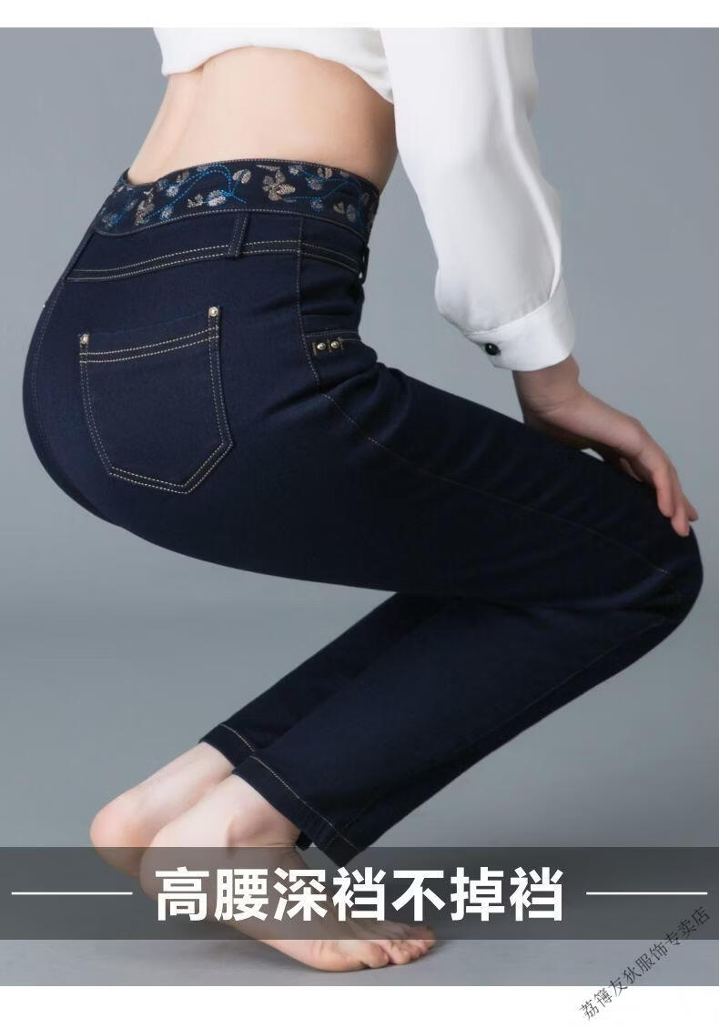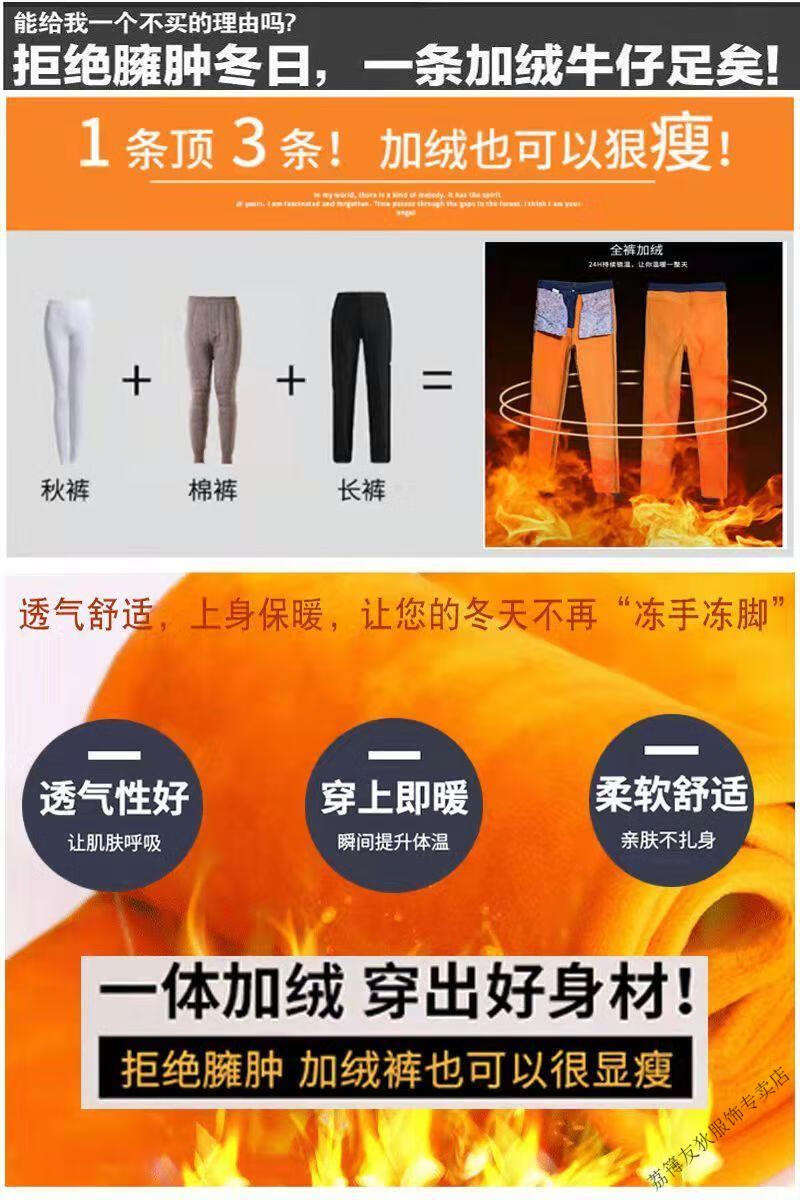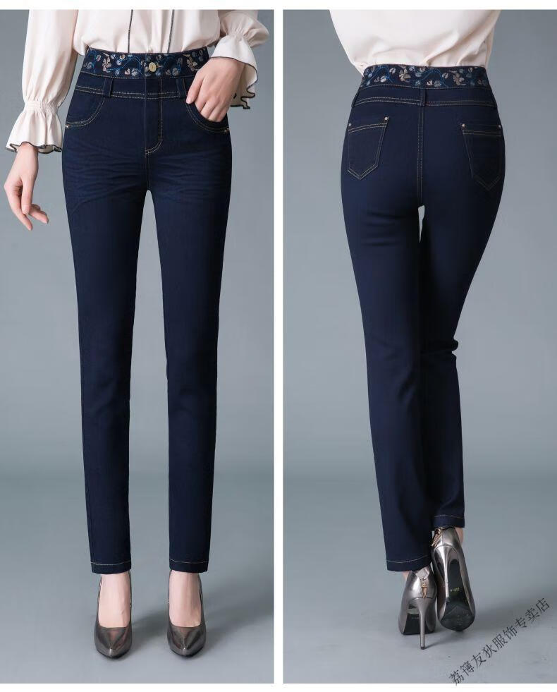 Luo Meng winter velvet jeans for women new high-waisted velvet trousers for middle-aged and elderly people straight leg warm women's trousers thickened velvet A201 style dark blue 27 pants waist 2 feet
