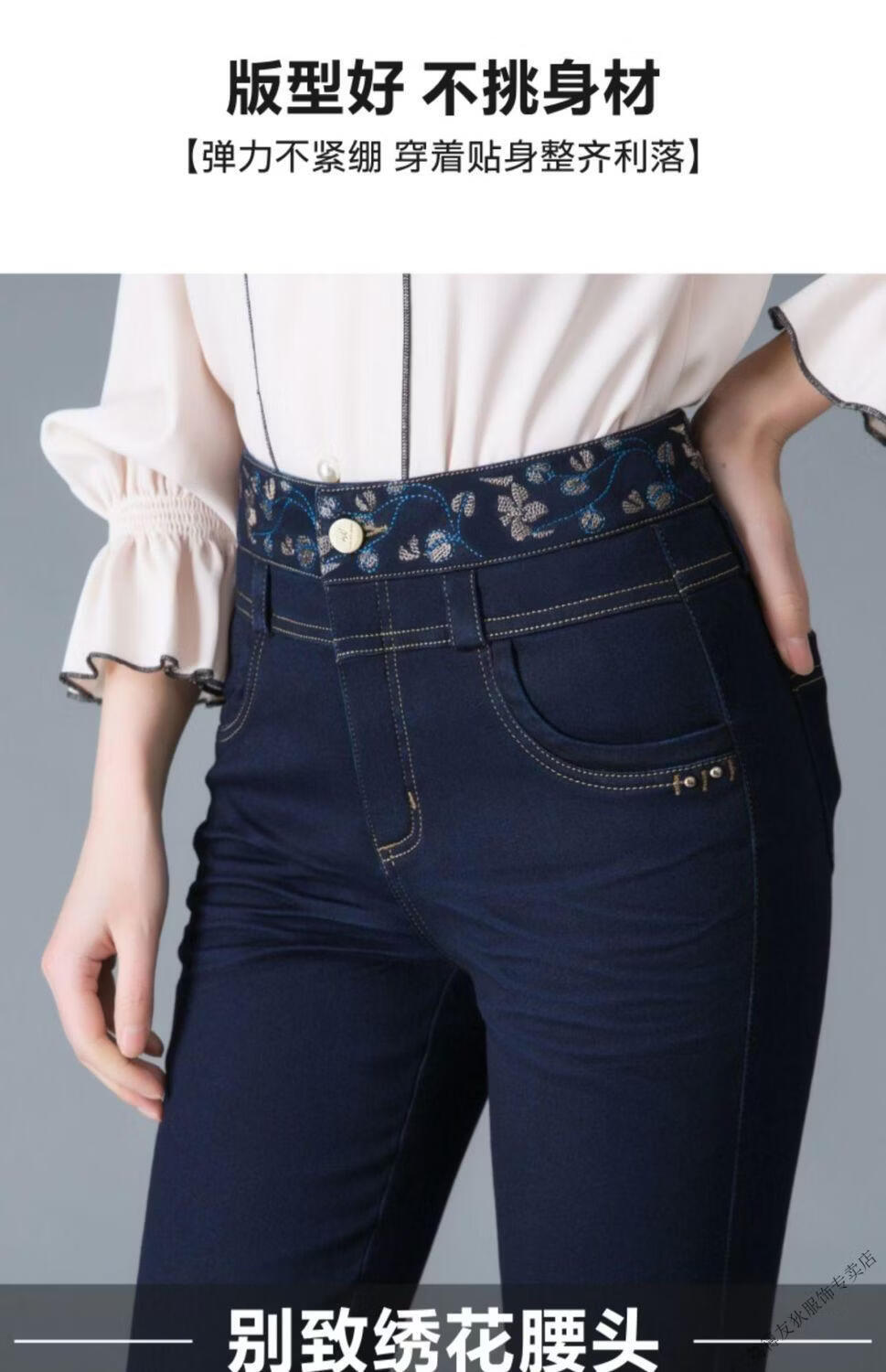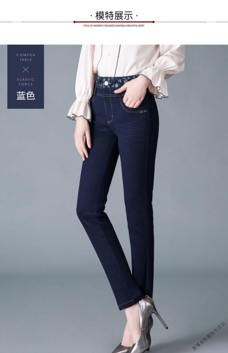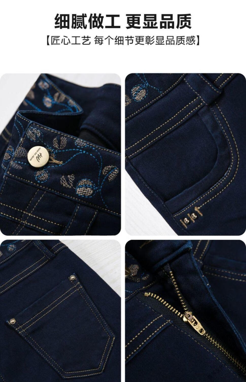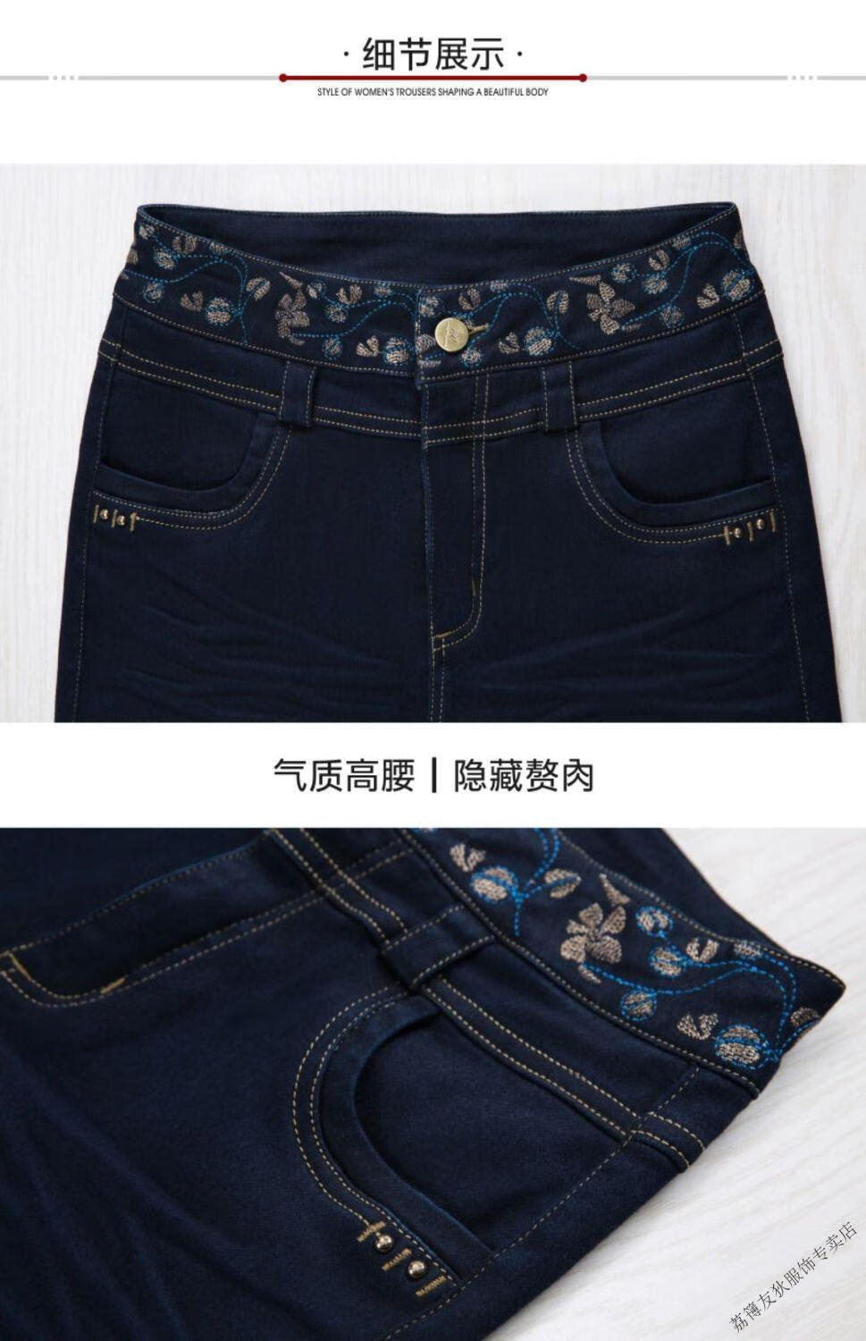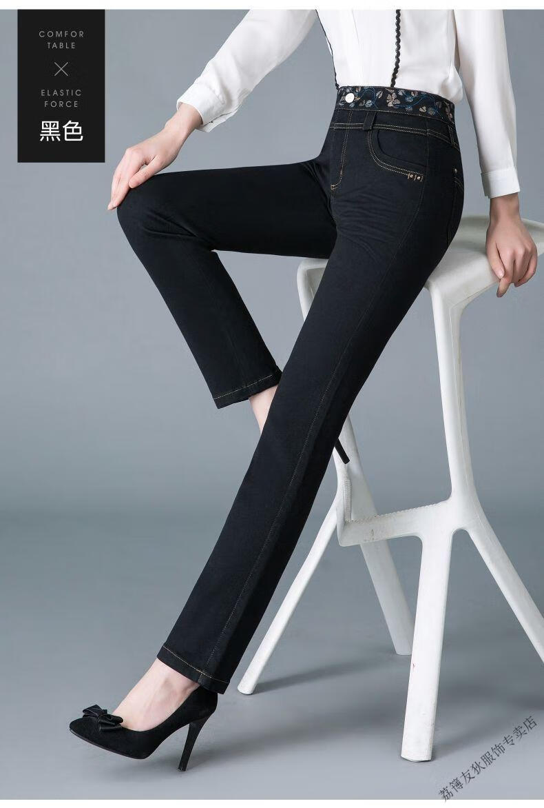 Luo Meng winter velvet jeans for women new high-waisted velvet trousers for middle-aged and elderly people straight leg warm women's trousers thickened velvet A201 style dark blue 27 pants waist 2 feet