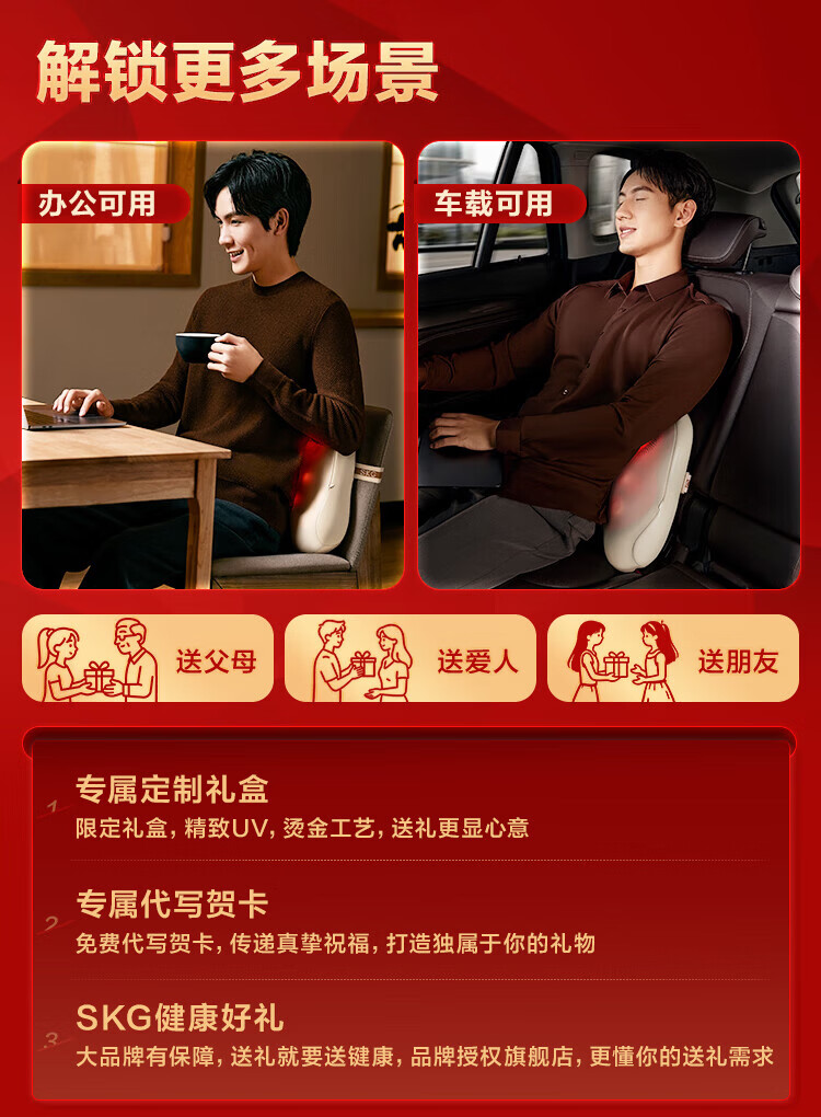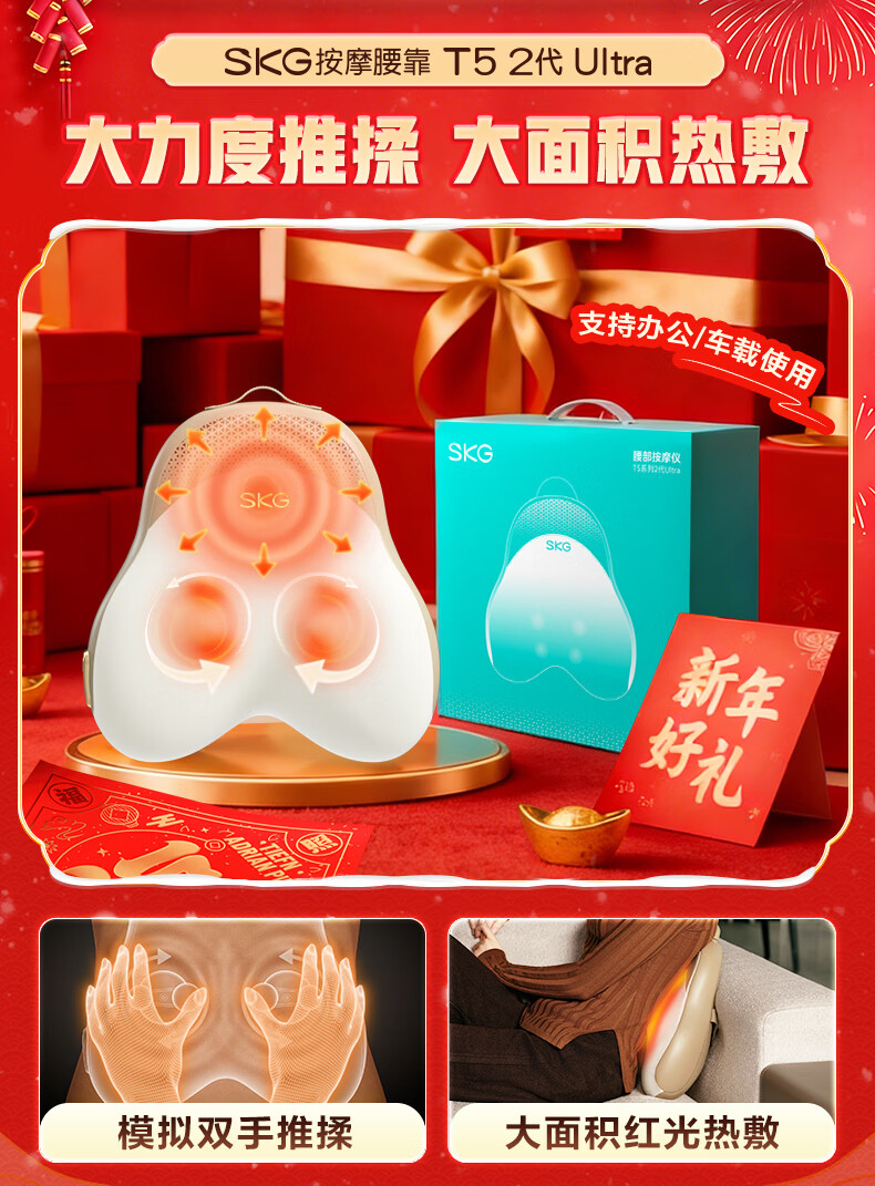 SKG Waist Massager Waist Back Neck Waist Shoulder Neck Neck Calf Back Whole Body Multifunctional Car Cushion Massager New Year's Day Gift for Men and Women Elderly 26 Years Upgraded Massage Waist Backrest T5 2nd Generation Ultra