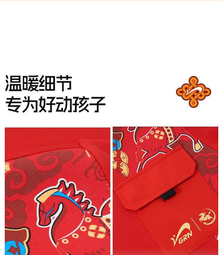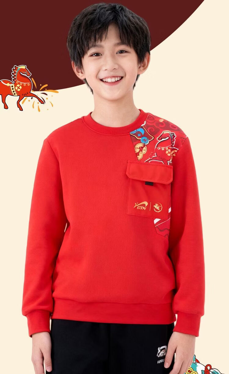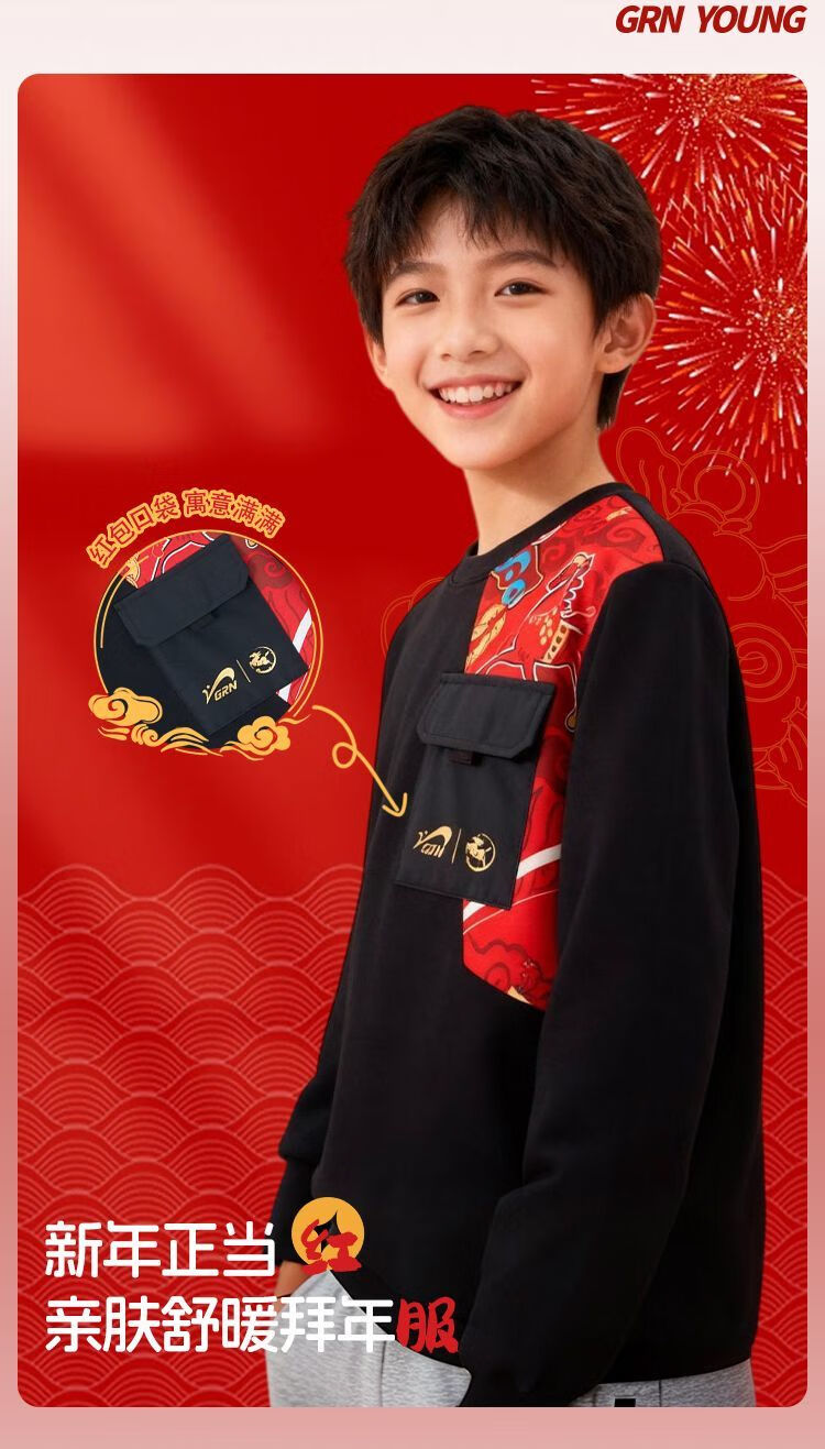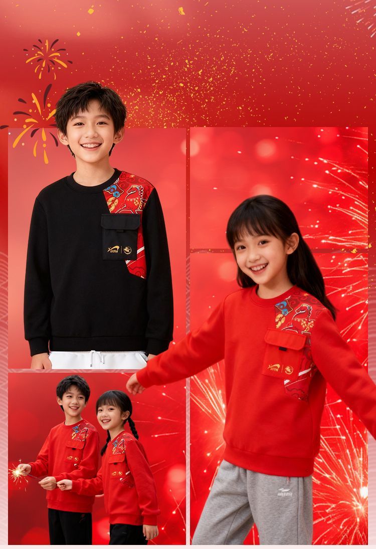 Guirenniao Children's Clothing 2026 New Year's Limited New Year's Clothes Children's Red Sweatshirts for Boys and Girls Year of the Horse New Year's Clothes Zodiac Year Clothes New Year's Limited Black 130