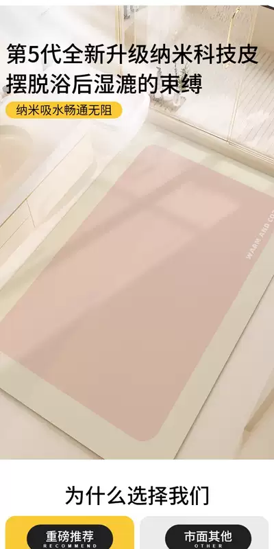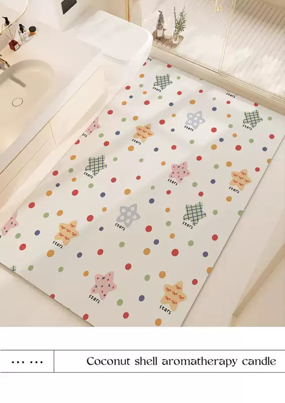 Yusenyi Bathroom Floor Mat Bathroom Toilet Large Size Carpet Cream Wind Diatom Mud Water Absorbent Anti-Slip Speed Weiwei Bright Star Vertical Version 100x120CM (Floor-Floor Non-curling Large-size Balcony Universal)