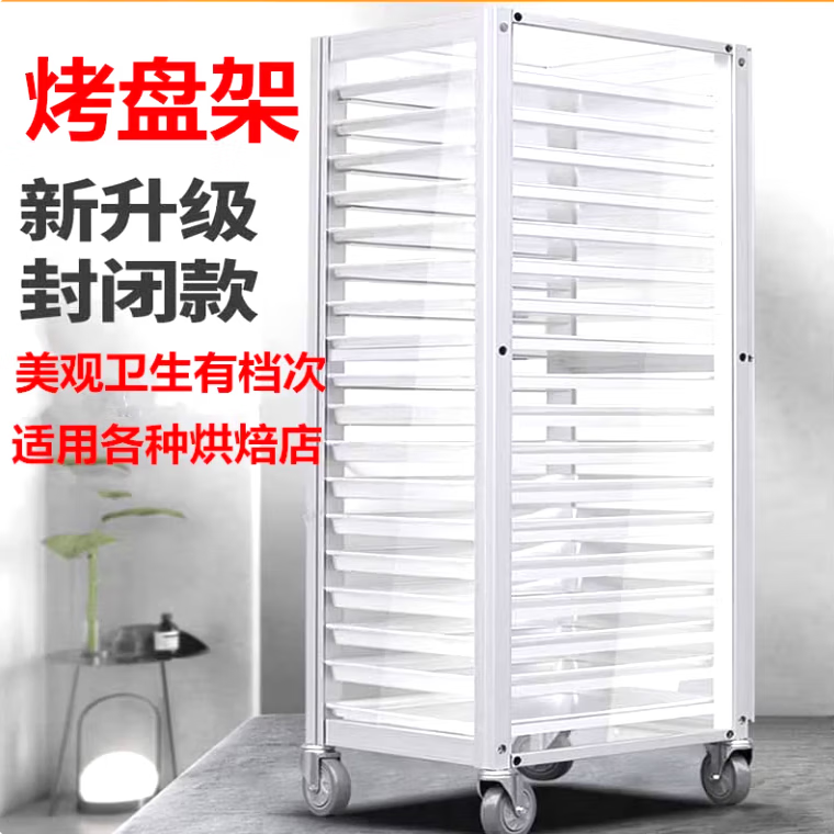 Aluminum alloy baking pan rack transparent closed multi-layer bread baking pan storage rack baking rack cart cake pan trolley 18-layer aluminum alloy sealed upgraded luxury model