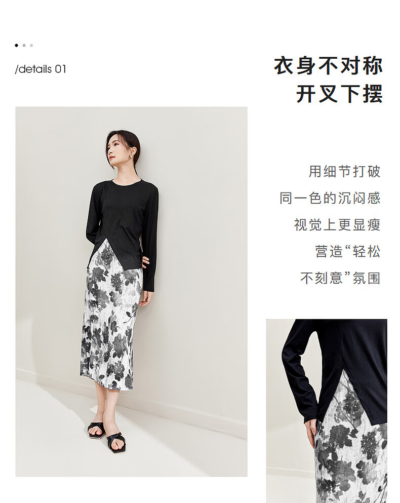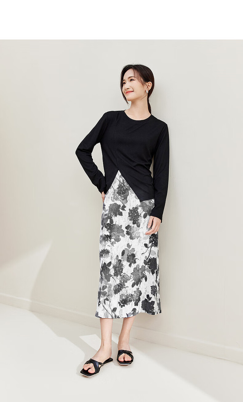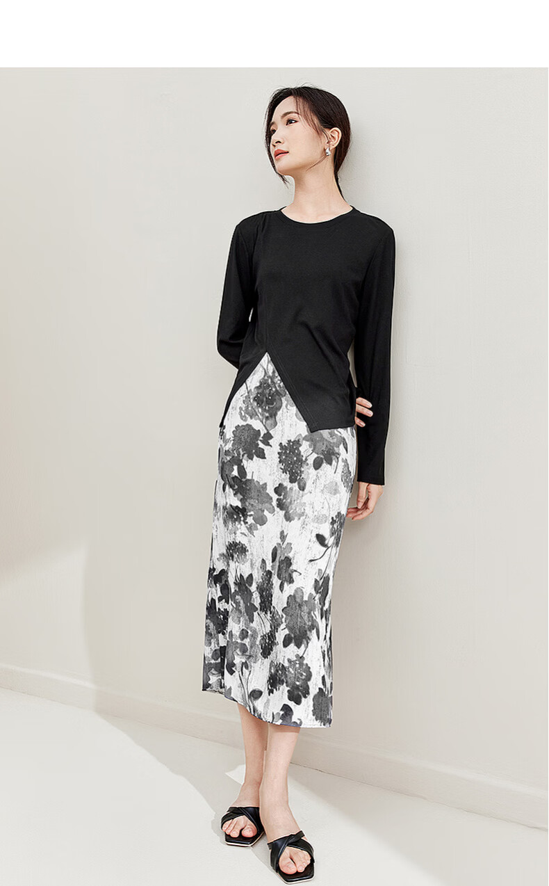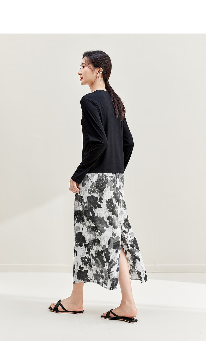 Shandubila Light Retro Design Suit Irregular Slit Top Printed A-Line Skirt Temperament Commuting Suit Black with Color S 90-100Jin Jin equals 0.5kg Recommended choice
