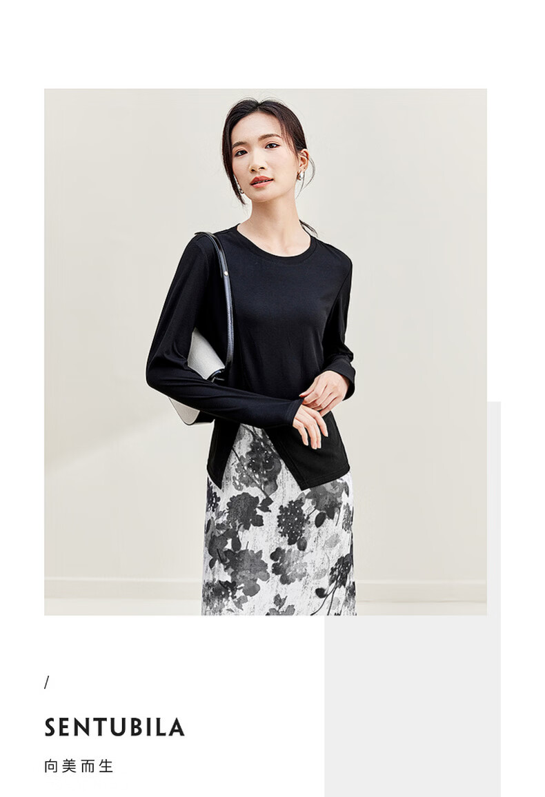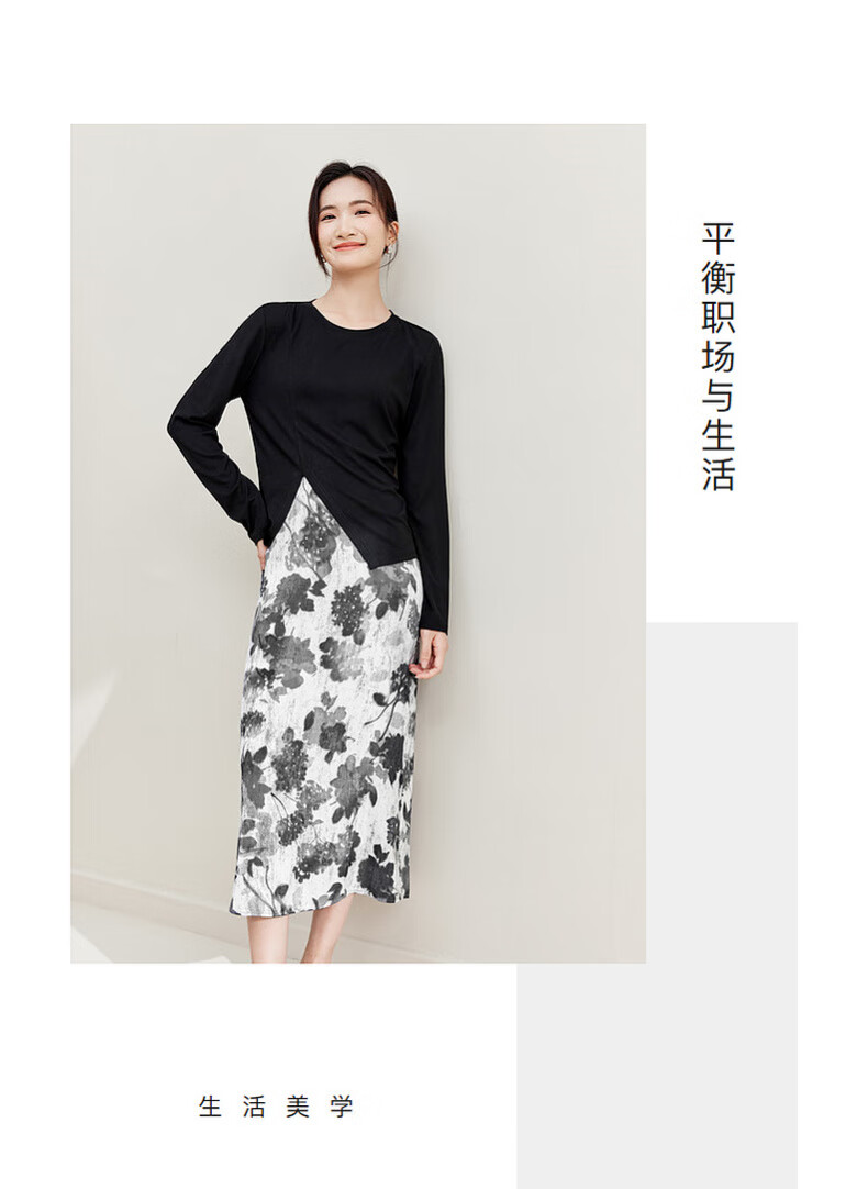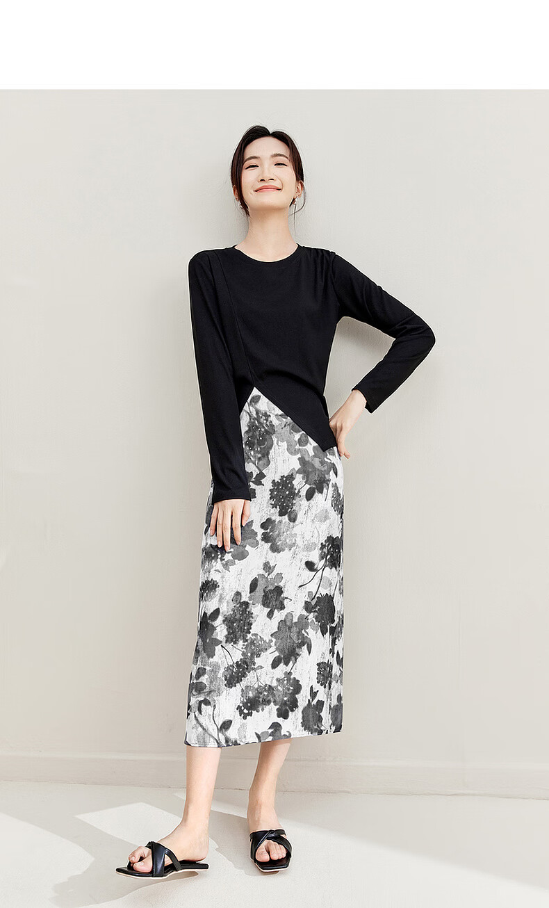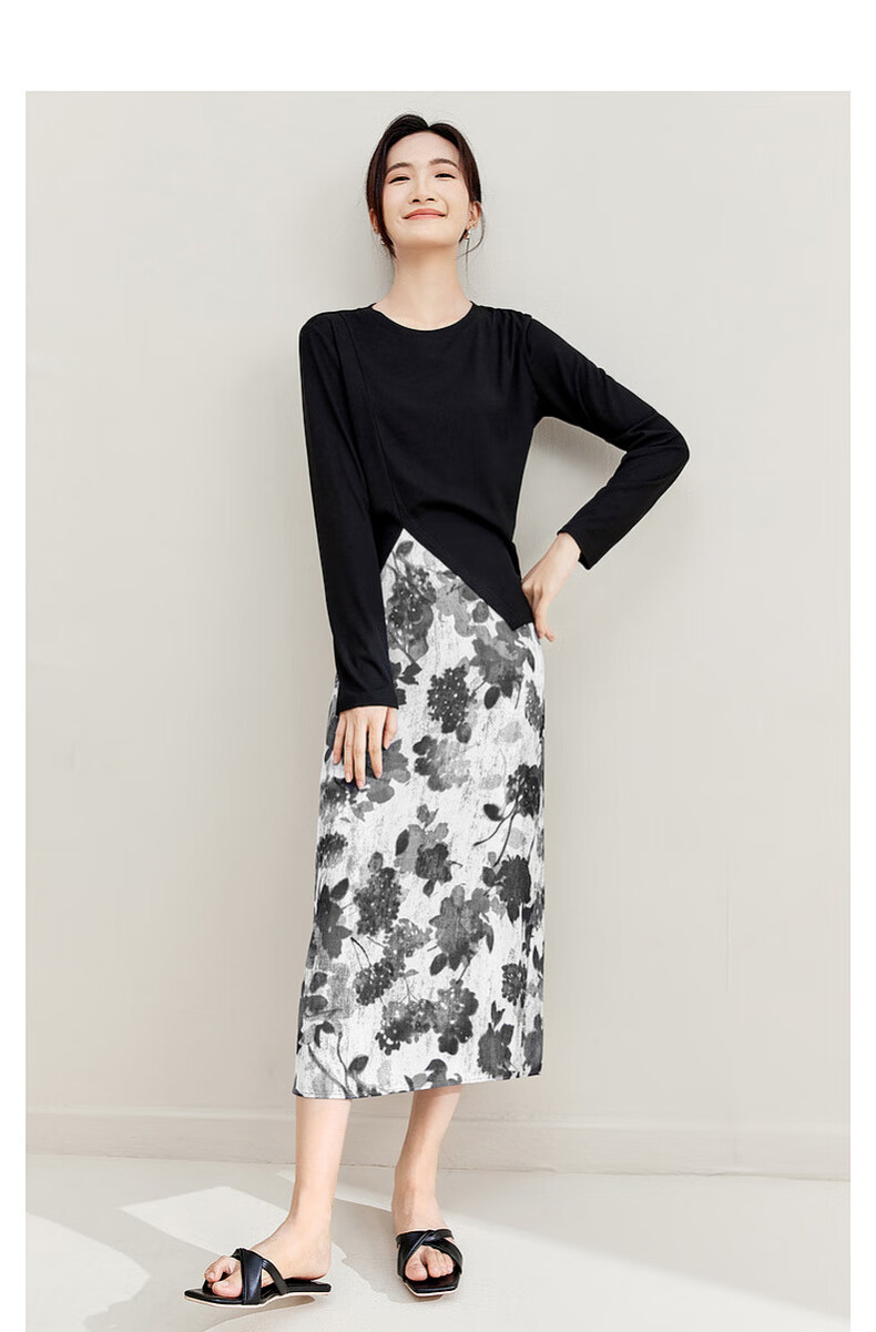 Shandubila Light Retro Design Suit Irregular Slit Top Printed A-Line Skirt Temperament Commuting Suit Black with Color S 90-100Jin Jin equals 0.5kg Recommended choice