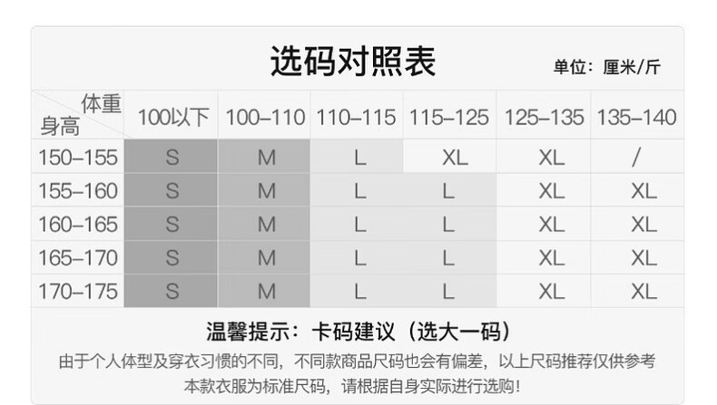 China (cm) 160-165/84-86 165-170 / 88-90 167-172 / 92-96 168-173 / 98-102 170-176 / 106-110