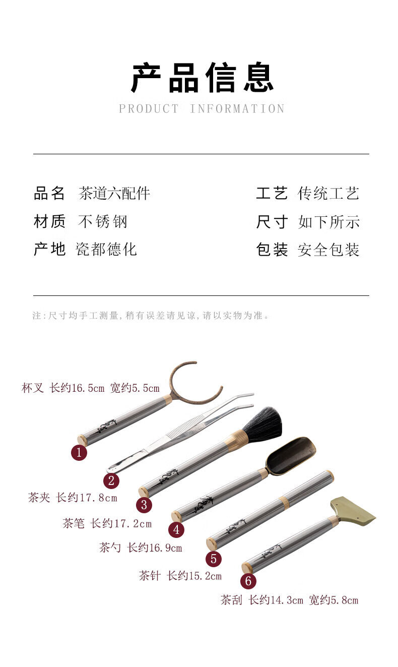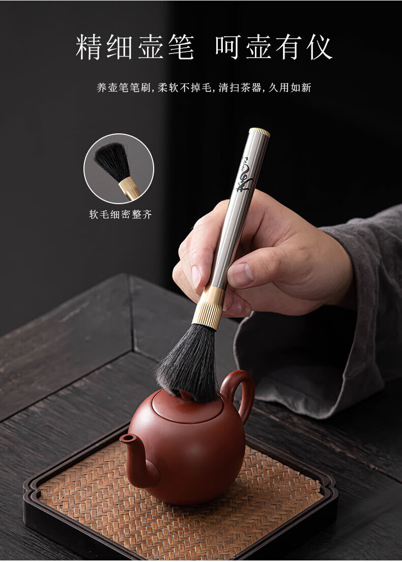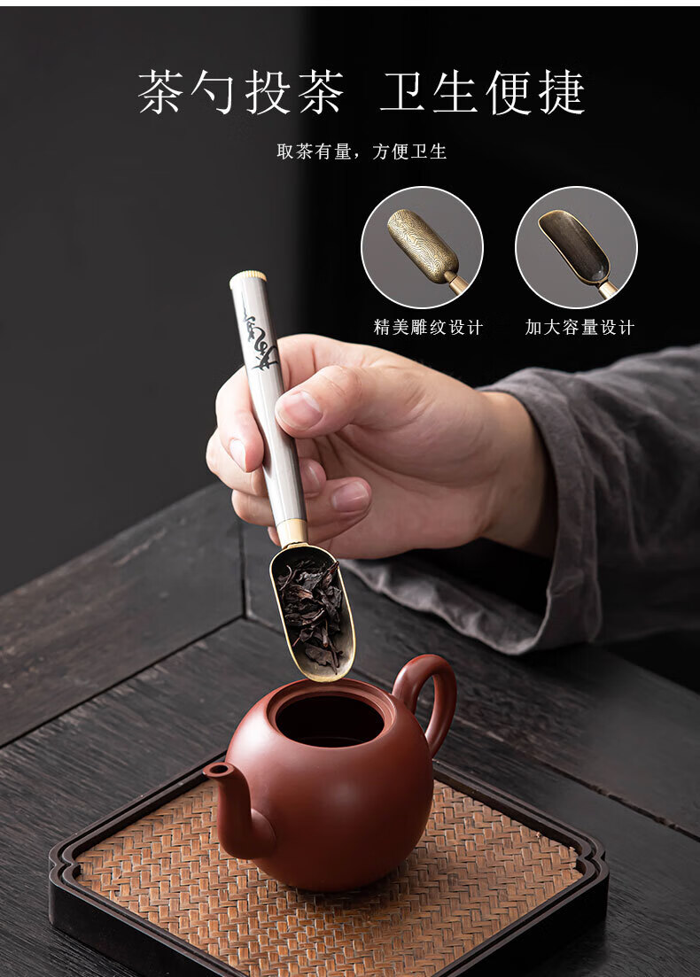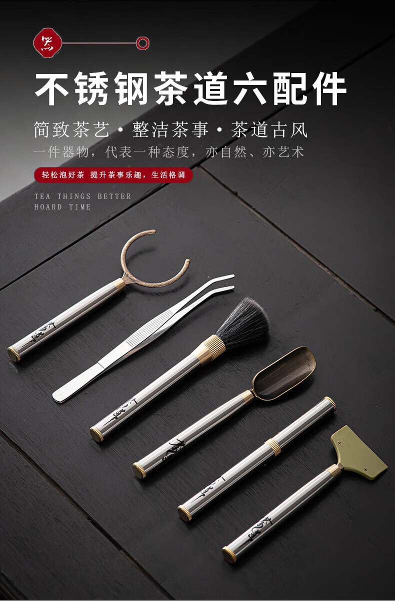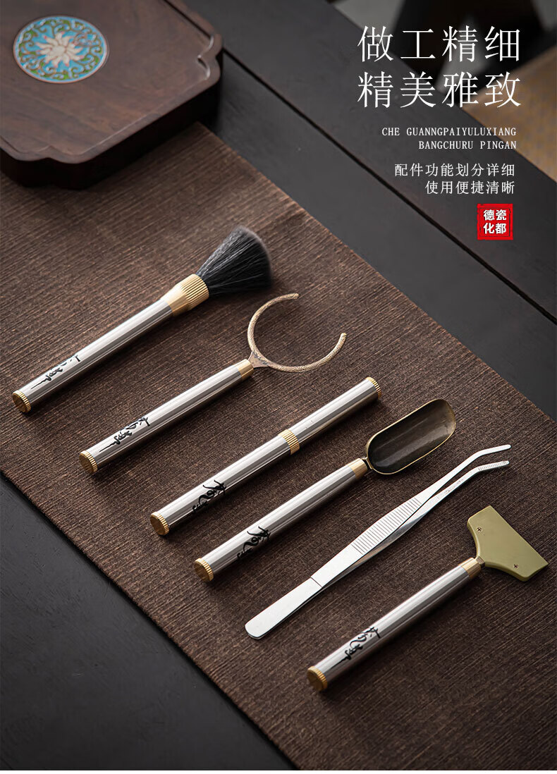 Tanbeiman Tea Ceremony Six Gentlemen Kung Fu Tea Tea Making Tools Collection Tea Set Accessories Tea Knife Tea Clamp Tea Brush Tea Needle Tea Spoon Set Exquisite Accessories Purple Clay Small Silent Container + Metal 5 Pieces