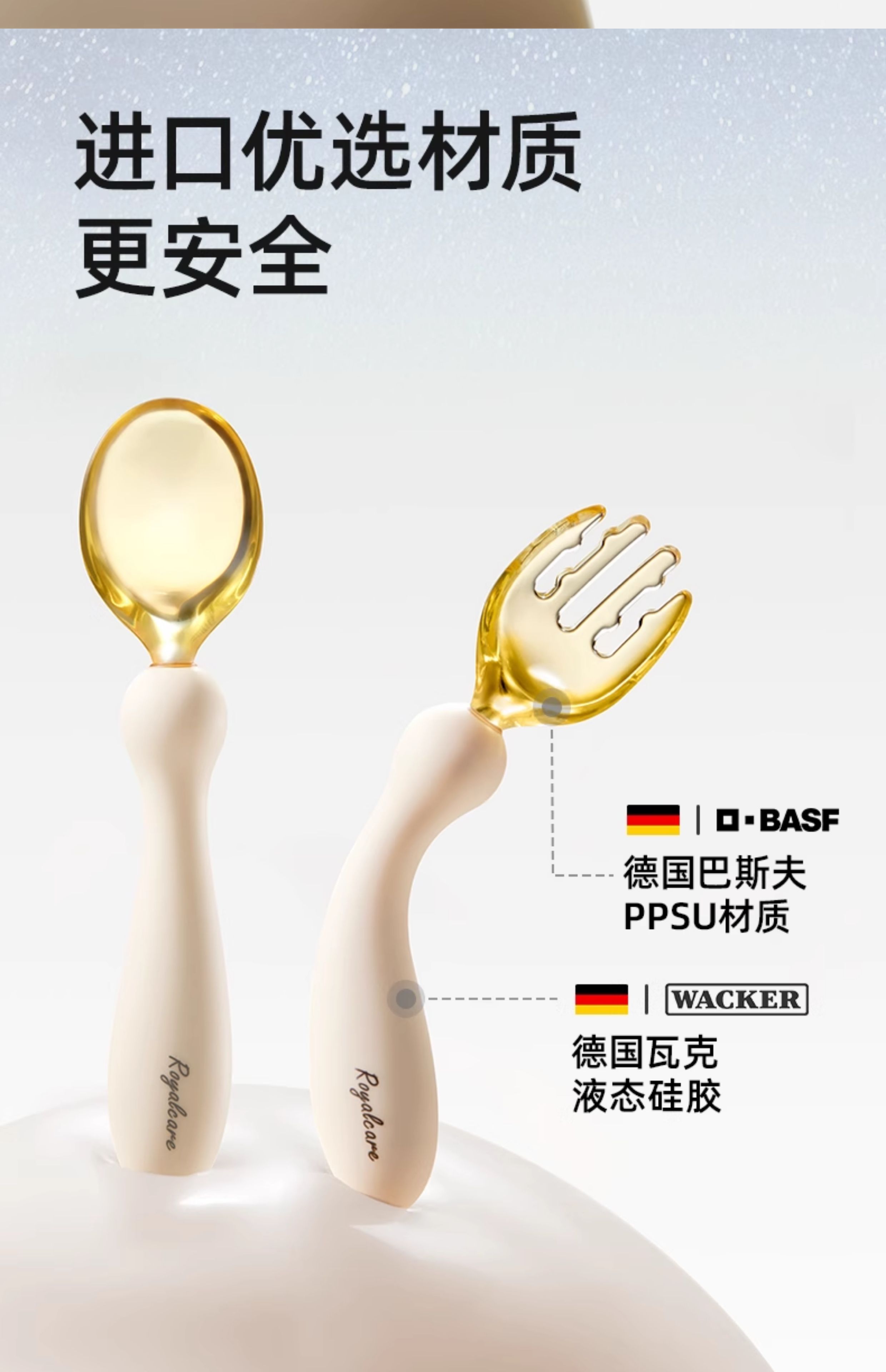 Dutuo Baby Learning to Eat Flexible Training Spoon for Baby to Eat Independently Children's Spoon Tableware and Sub-Food Fork and Spoon PPSU Twist Learning to Eat Fork and Spoon + Silicone Dinner Plate