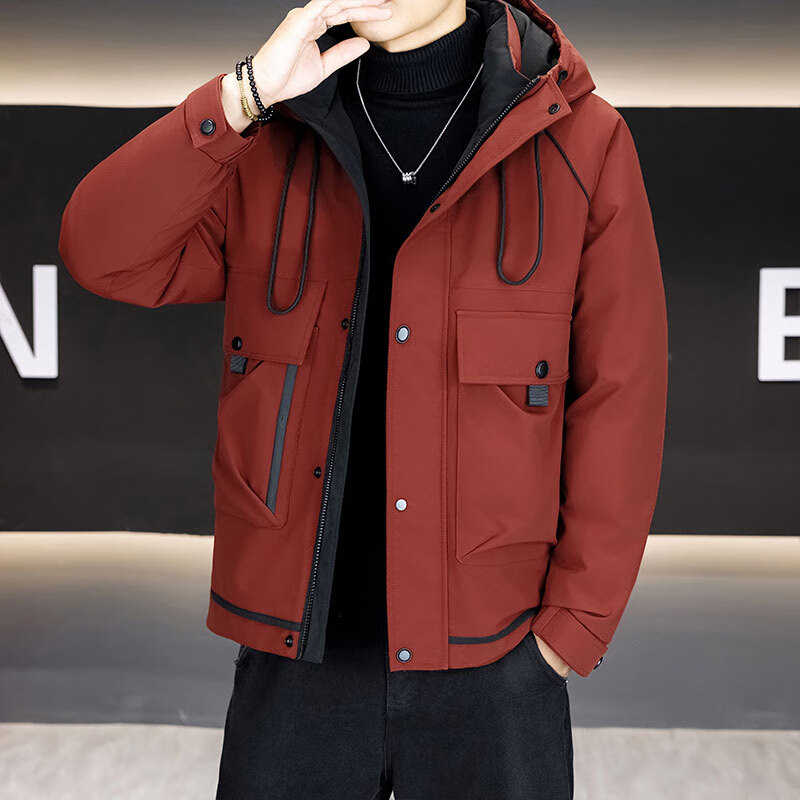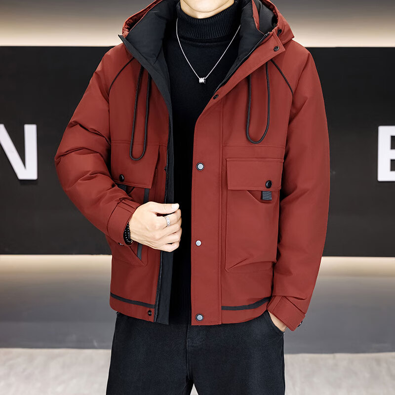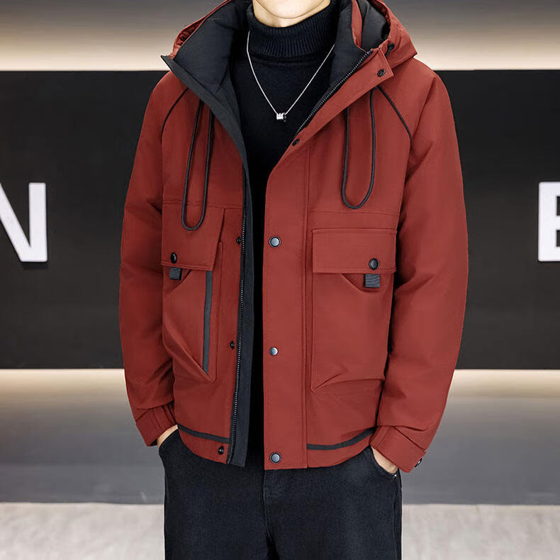 Hengyuanxiang морозостойкая одежда мужская утепленная зима 2024 новый модный бренд элитной американской спецодежды легкая куртка винный Qiji красного цвета M