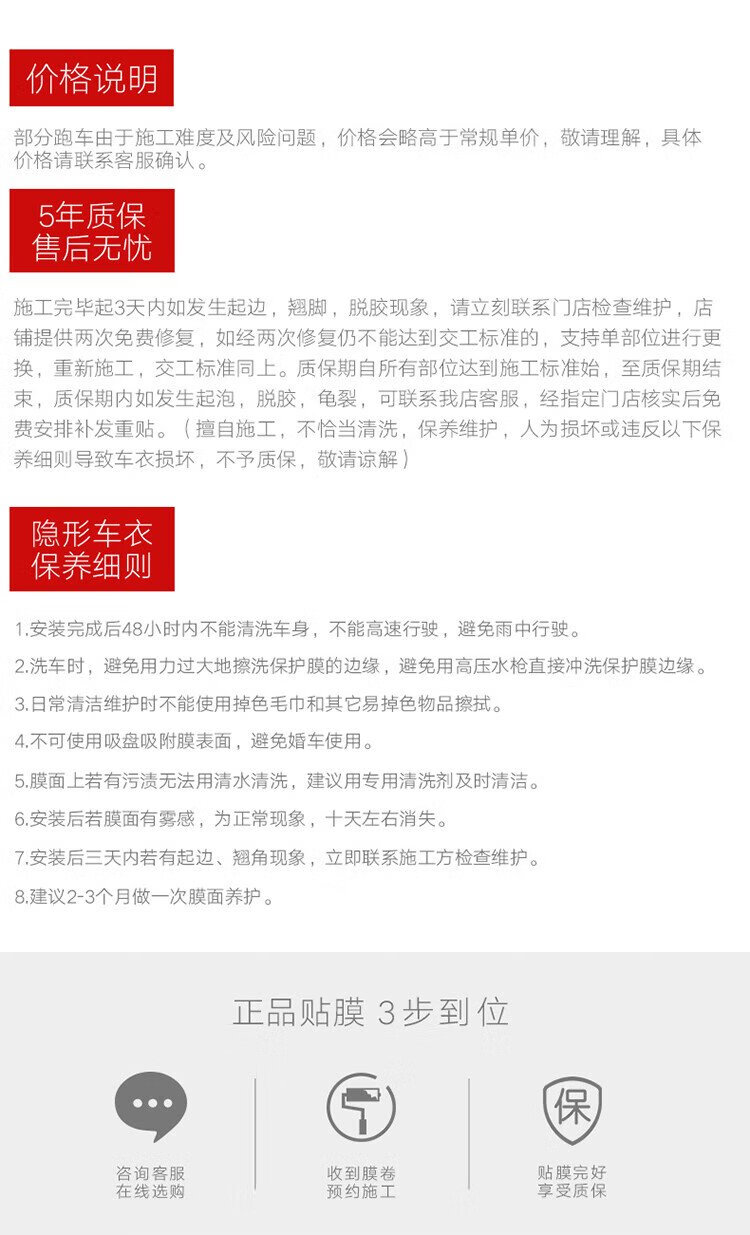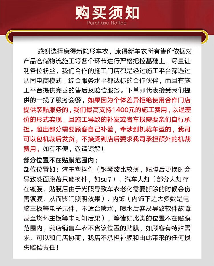 KDX WINDOW FILMKDX Kangdexin invisible car clothing film car film car film tpu paint protection film package construction Xuanwu Shield Xuanwu Shield Car length 4.8 meters high 1.6 meters within