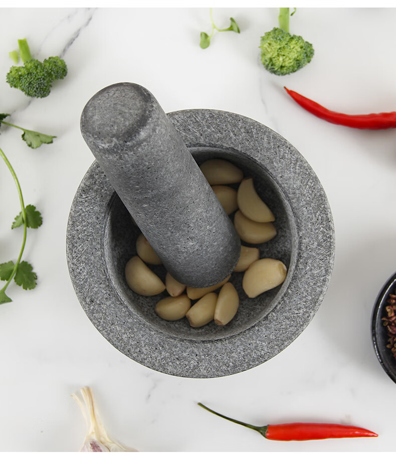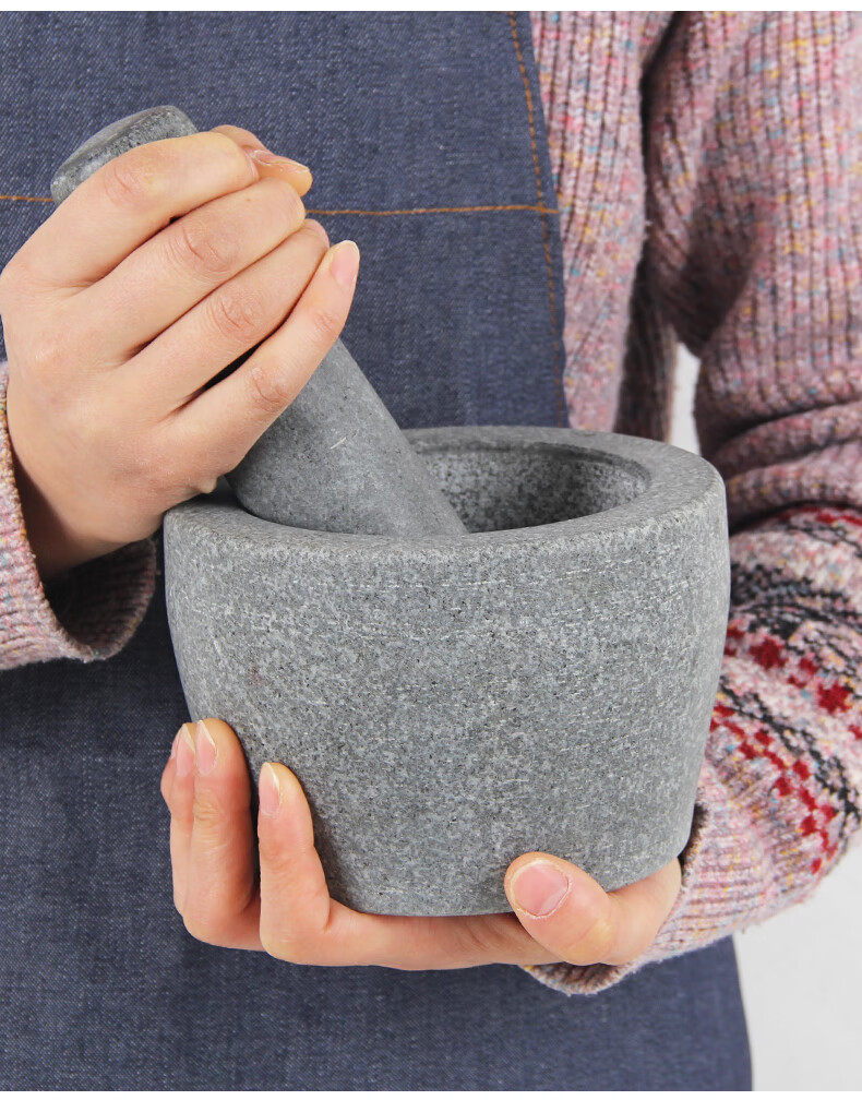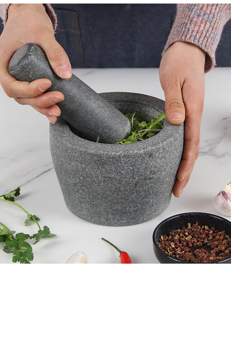 Shiganu black bluestone garlic mortar household garlic press garlic mortar large black bluestone matte comes with splash-proof cover