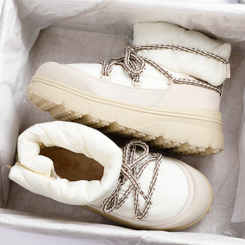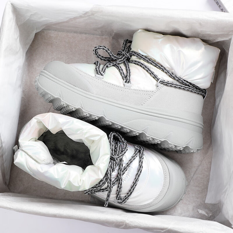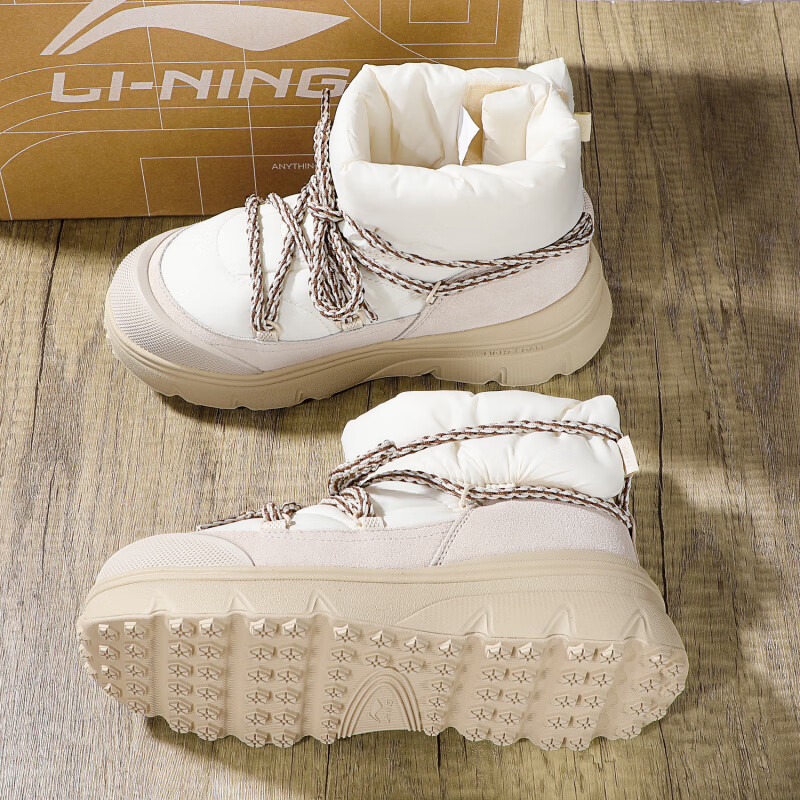 Li Ning honey boot high-top casual shoes for women 2025 winter new fashion snow boots soft sole warm women's shoes rock white gray/oyster gray AGCV388-2 35.5
