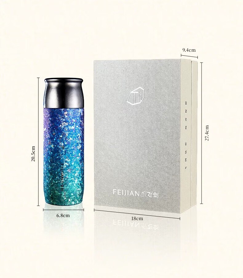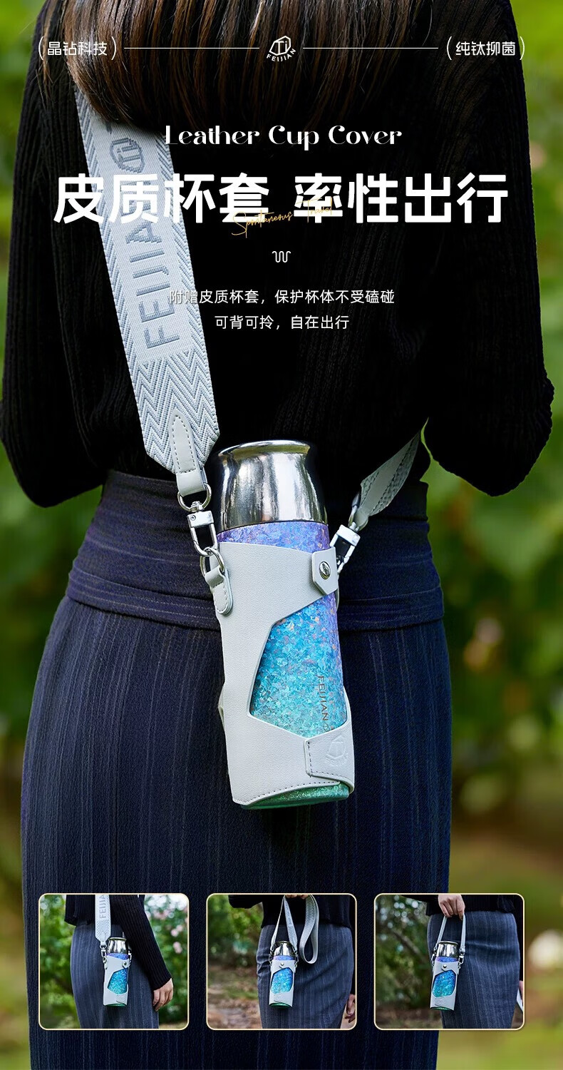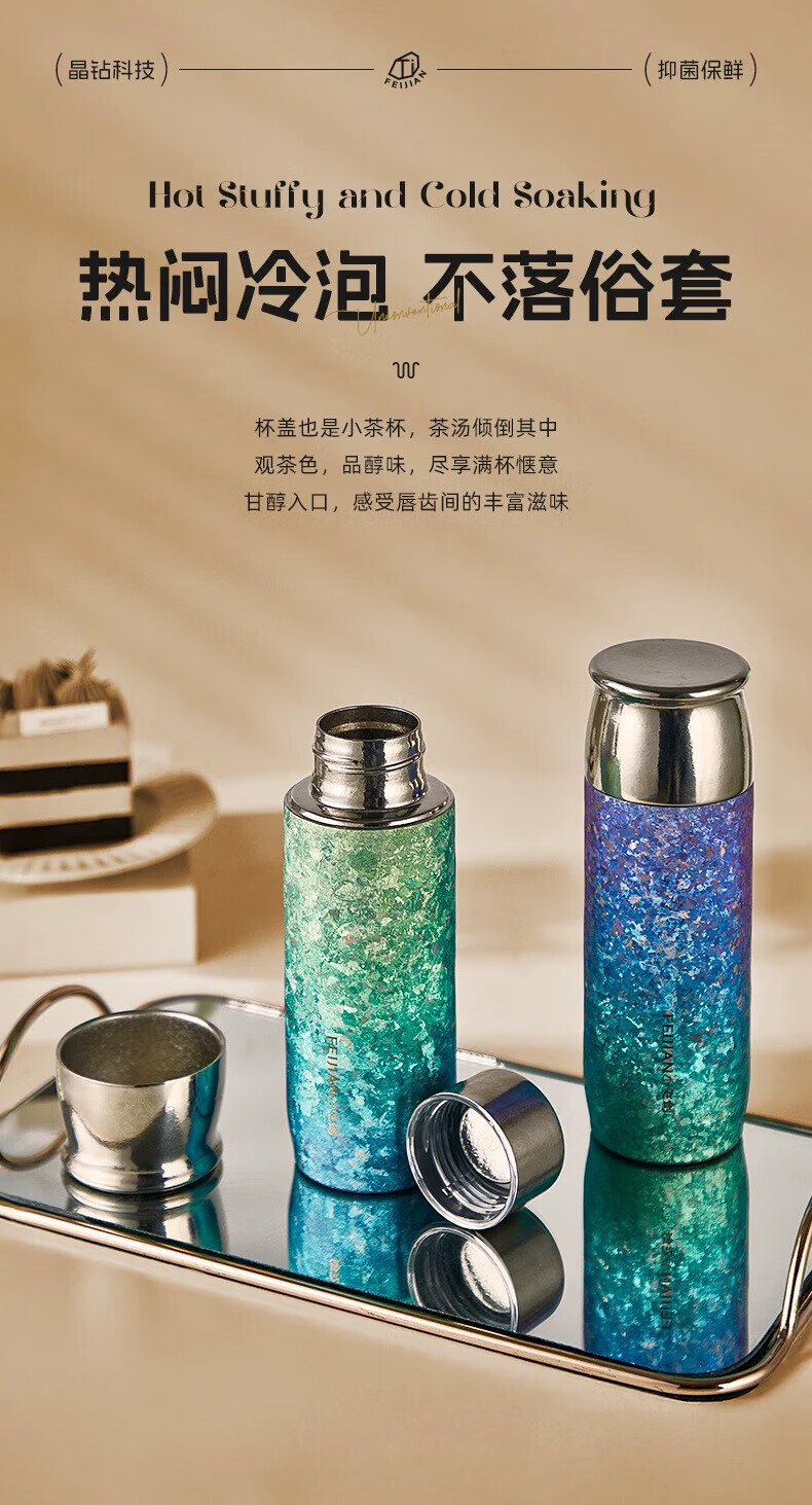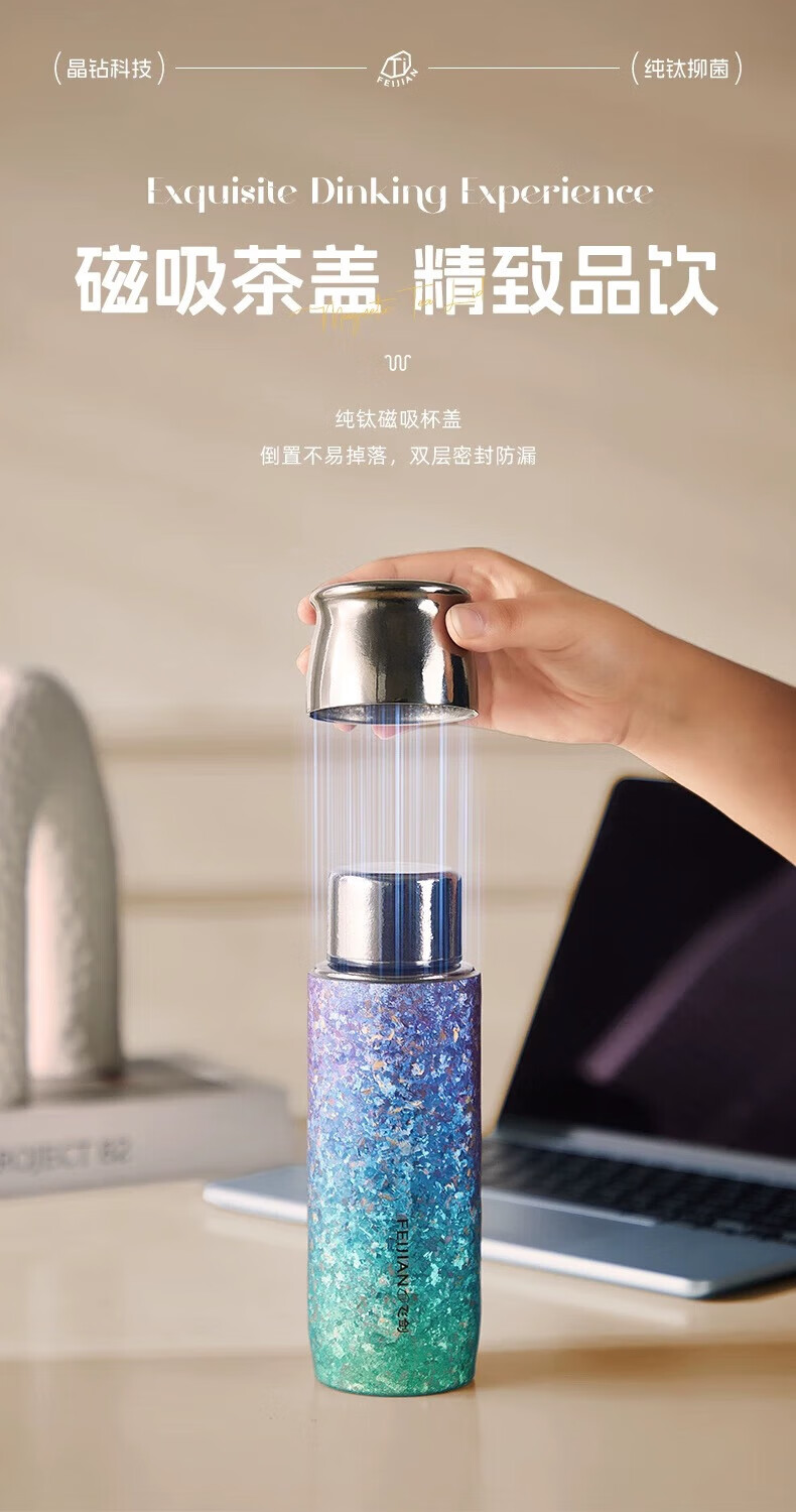 Feijian Pure Titanium Insulated Cup Gradient Series High-end Stewed Tea Cup Tea Water Separation Tea Cup Birthday Gift Gift Symphony Purple 390ml Free Leather Cup Cover
